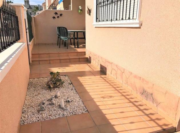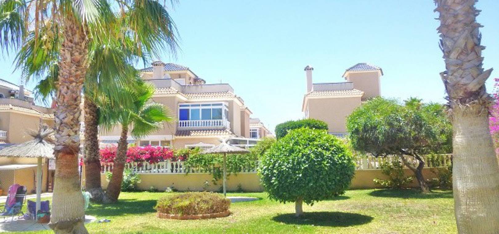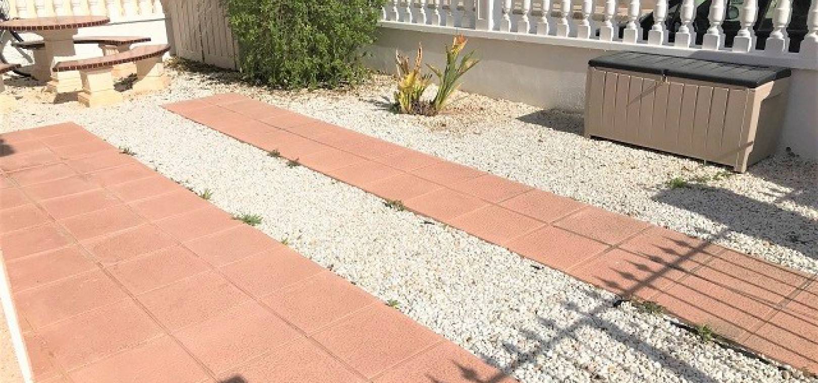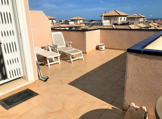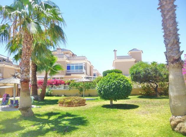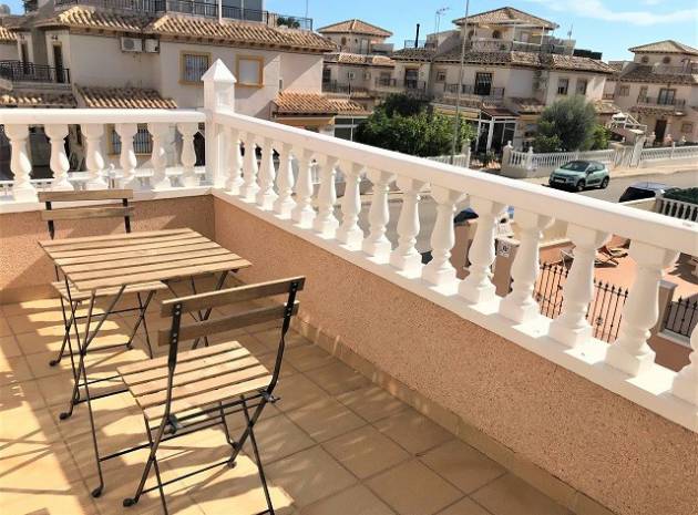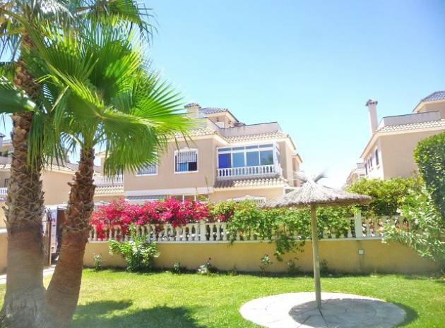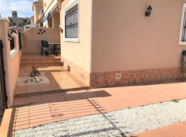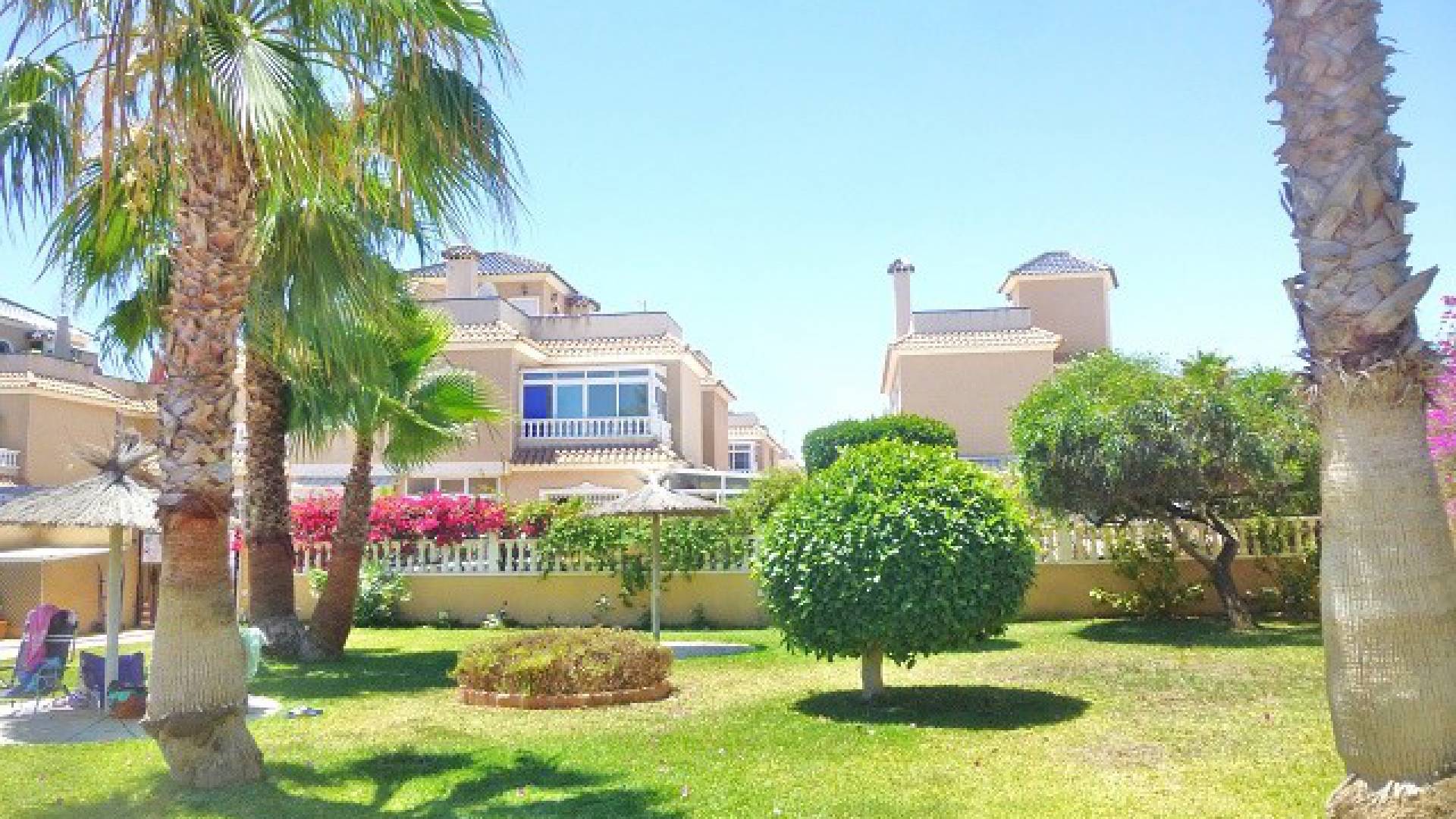 Il y a beaucoup de terrasse carrelée et d'espace extérieur, la maison est sur un terrain plus grand que la moyenne dans un coin très ensoleillé. Avec en prime un immense solarium privé sur le toit pour profiter du soleil toute la journée. Allée pour le stationnement hors route. Il y a un grand jardin commun et une piscine pour les résidents et les invités.
