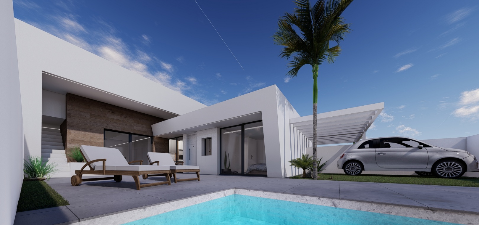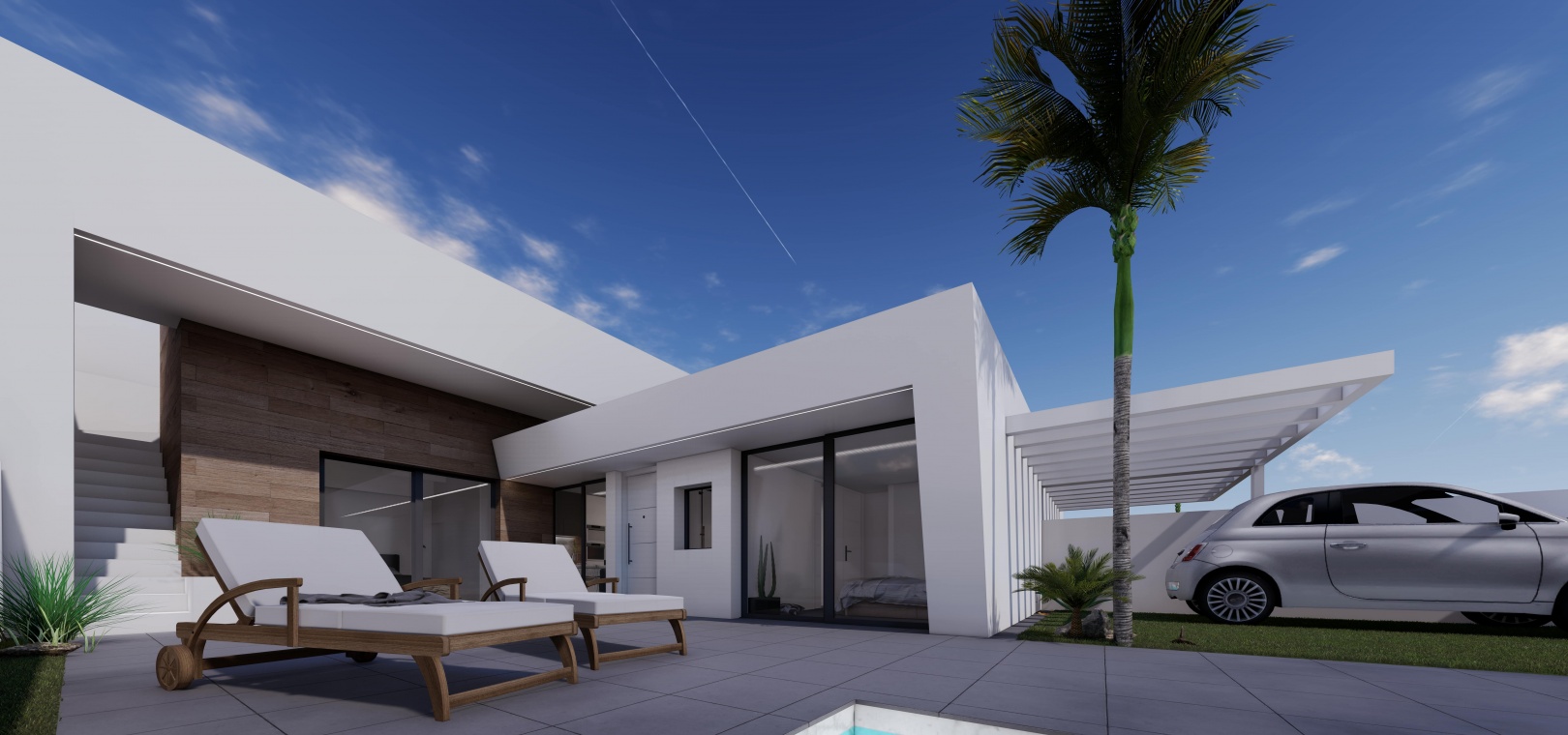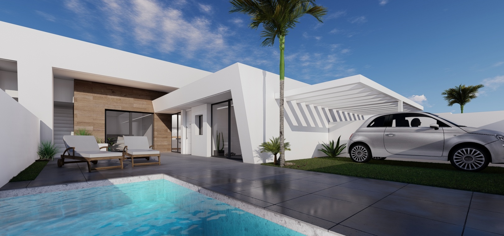 Nouvelle construction de style moderne 2 chambres 2 chambres Villas jumelées de style Serendipia avec piscines privées situées à Roldan, Torre Pacheco, Murcie.