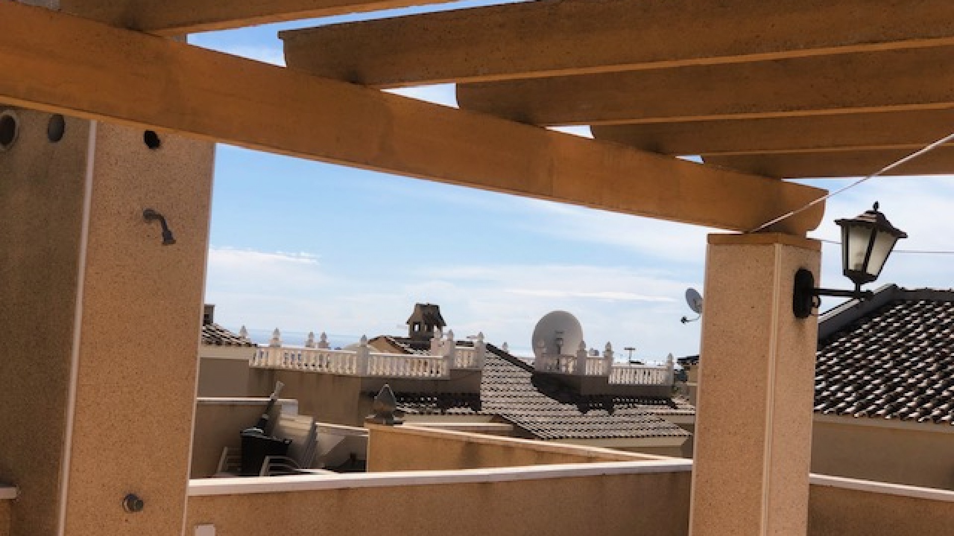 Un bungalow de 2 chambres et 1 salle de bain avec un solarium privé sur le toit situé à El Galan, Villamartin, Costa Blanca.