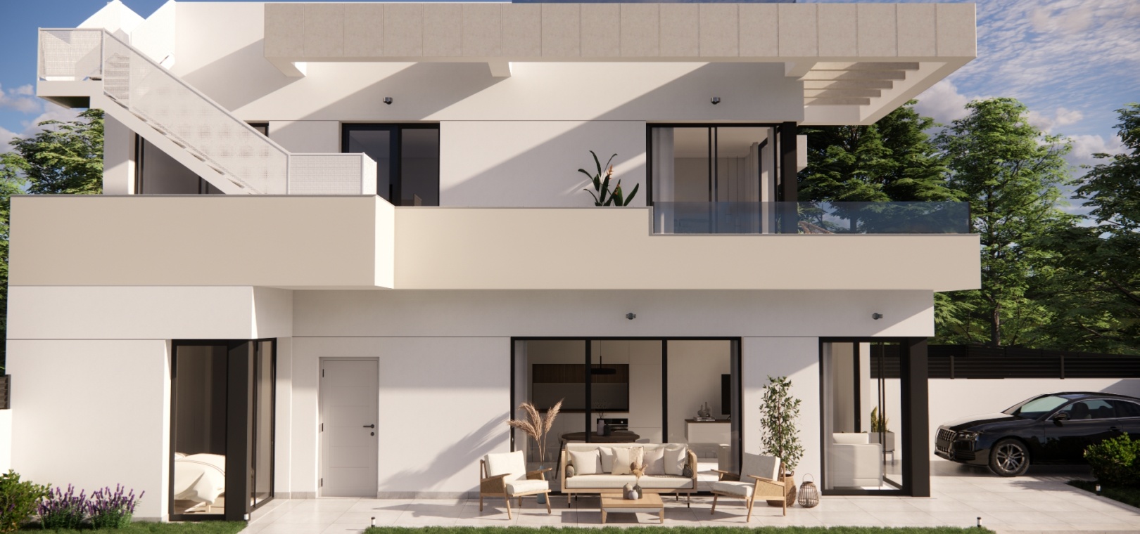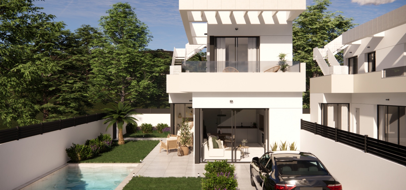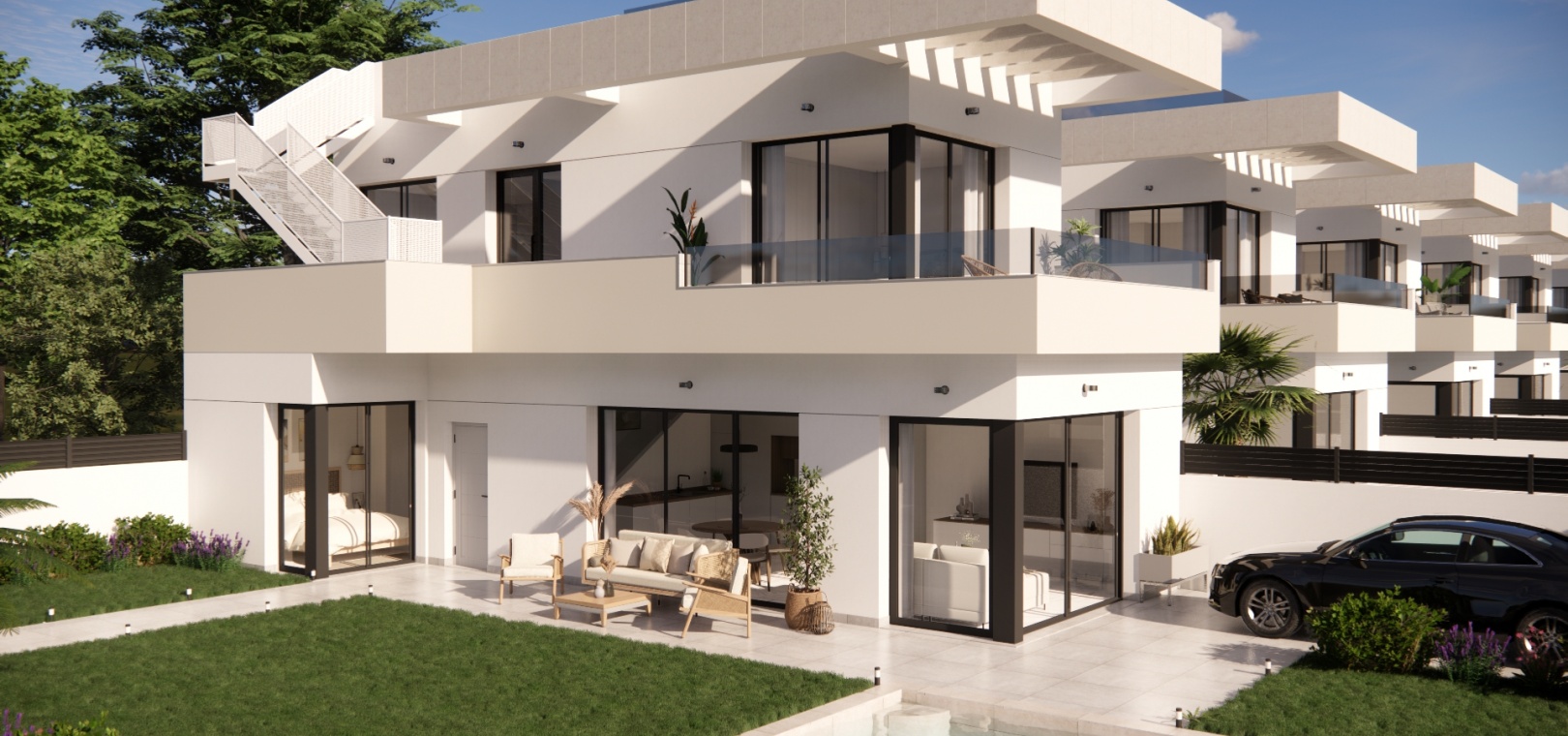 Villas de luxe neuves de 3 chambres et 2,5 salles de bain avec piscines privées situées dans Res. Alba Salina, La Herrada, Los Montesinos, Costa Blanca Sud.