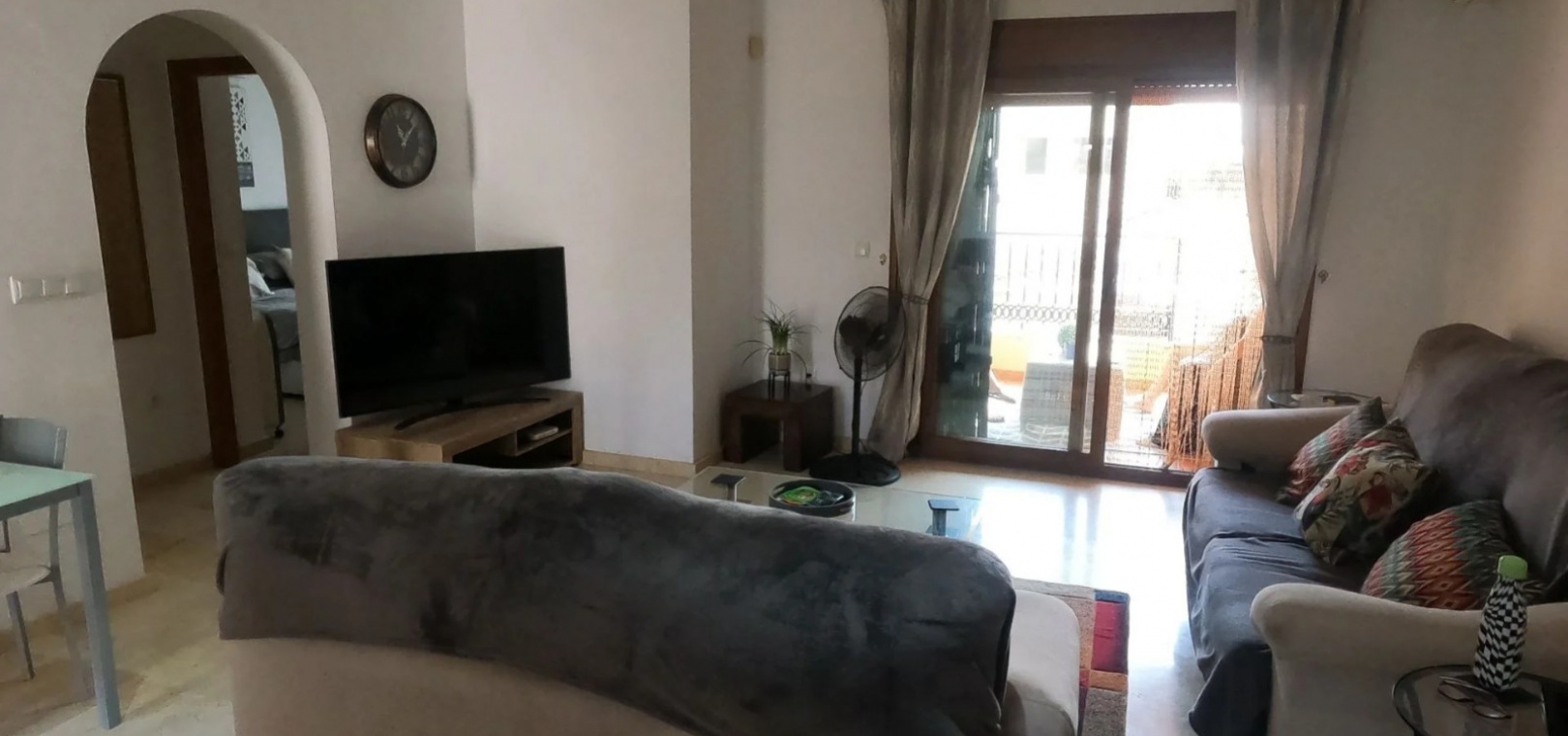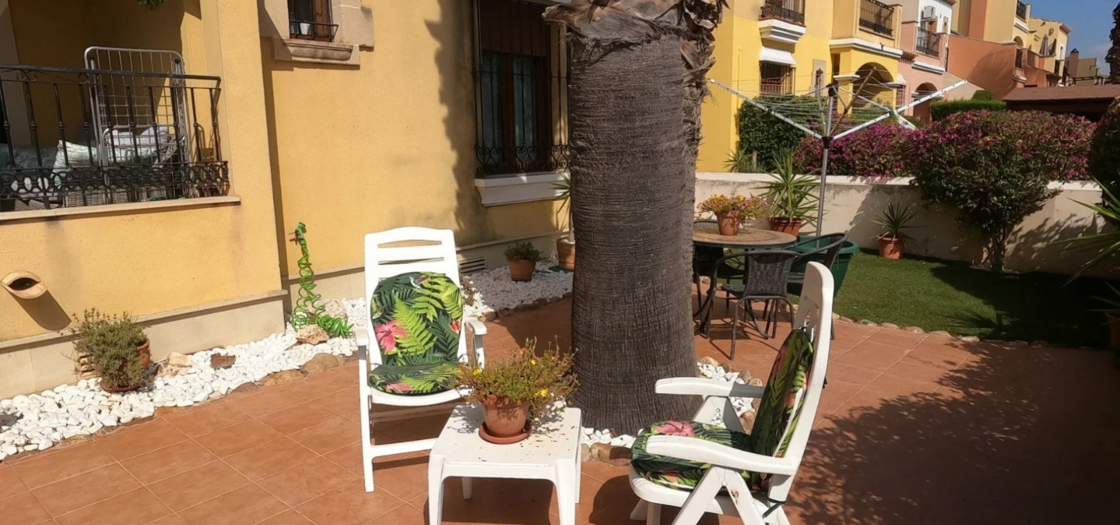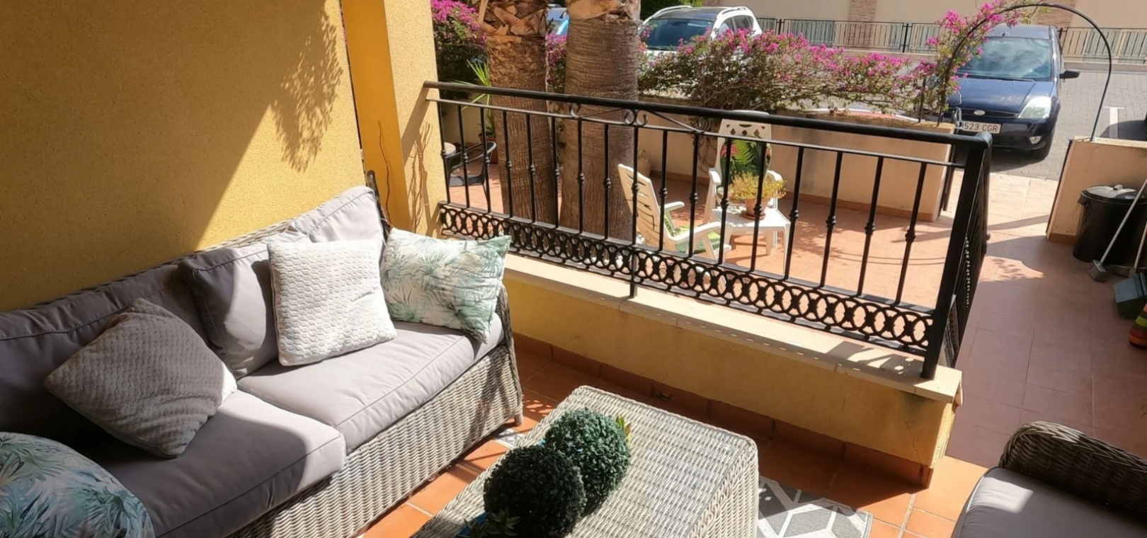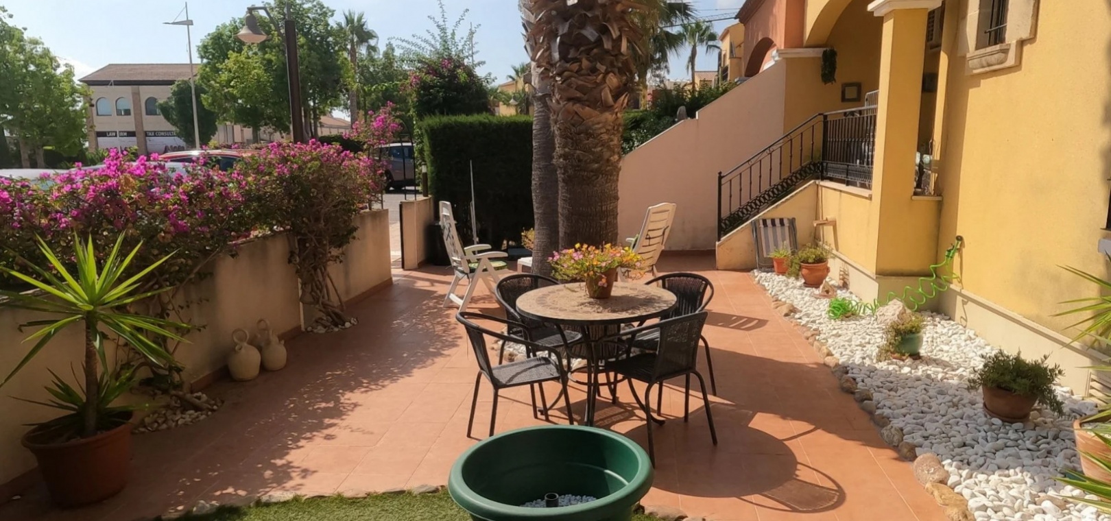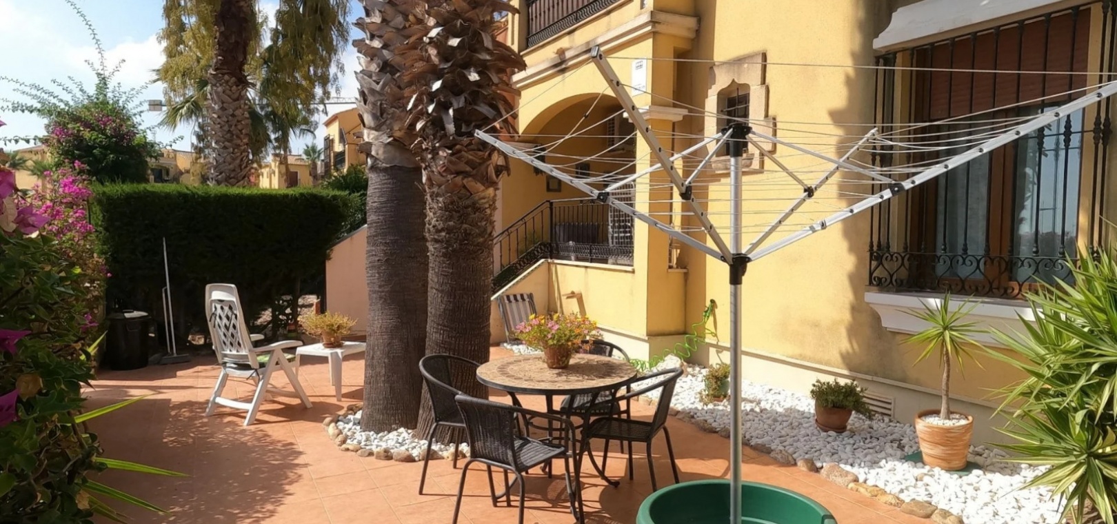 Un appartement d'angle au rez-de-chaussée avec 2 chambres et 2 salles de bain orienté à l'est situé sur le golf de La Finca, Algorfa, Costa Blanca.