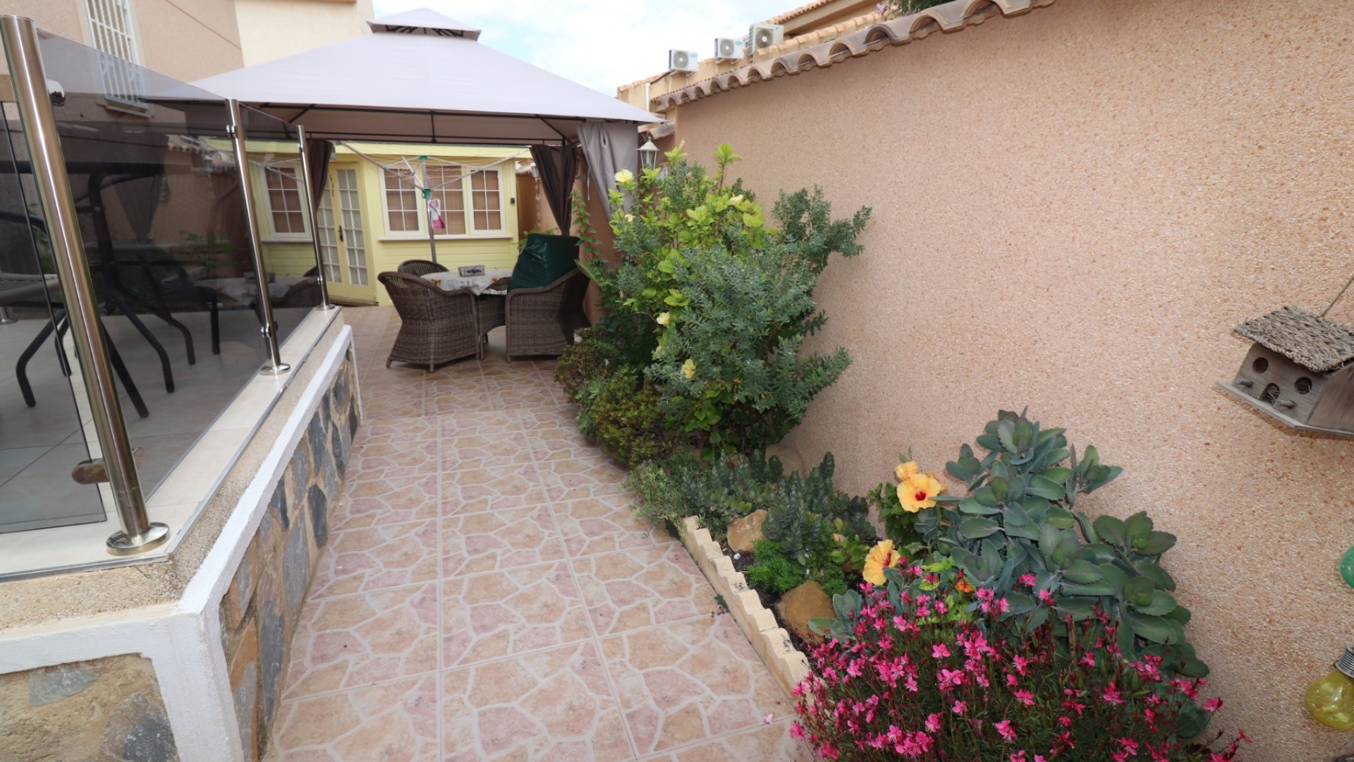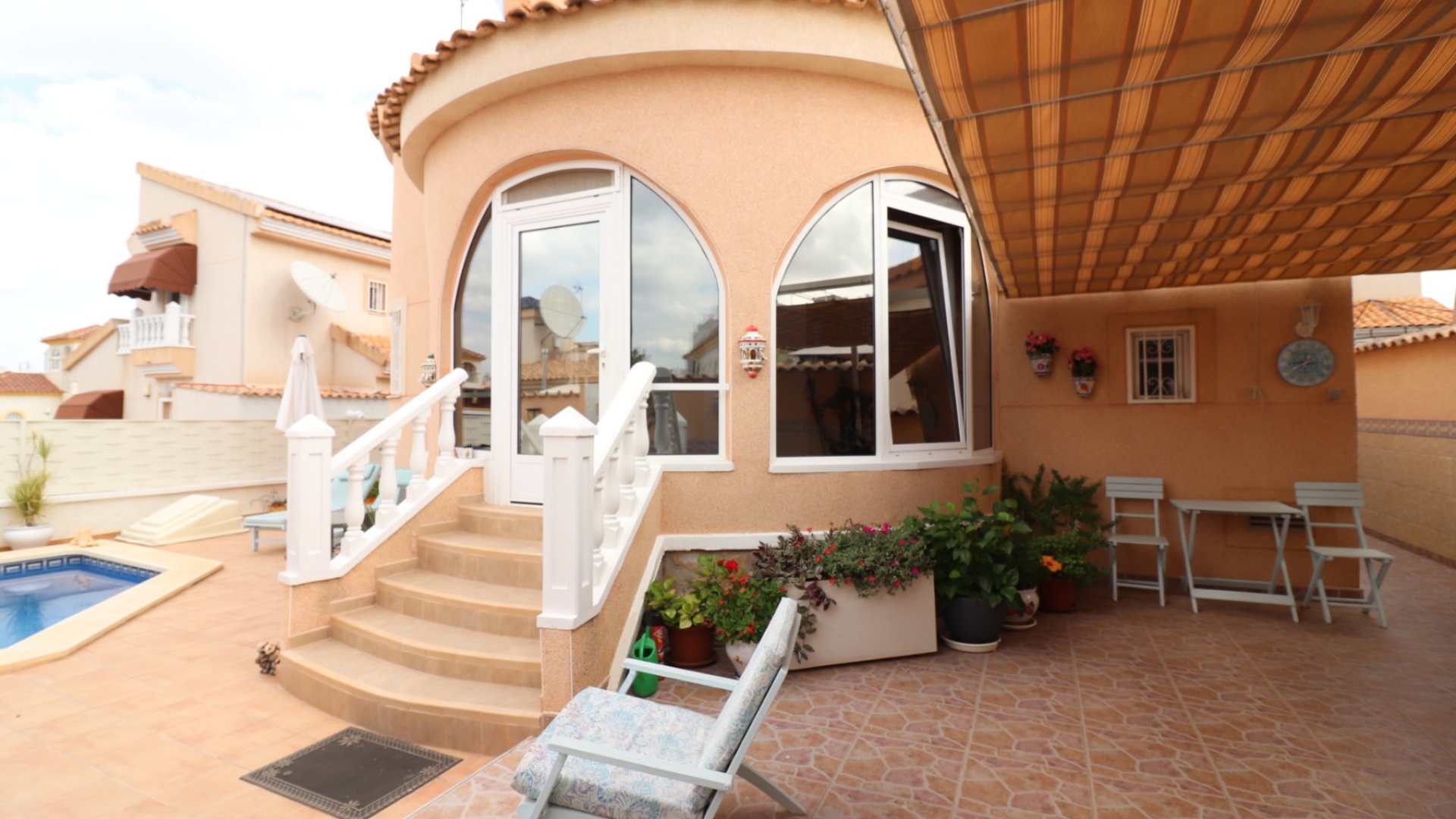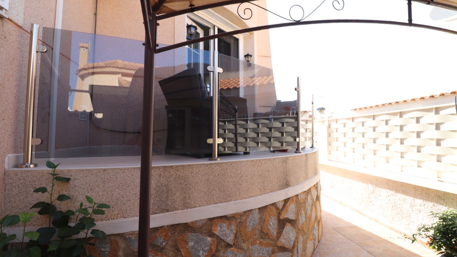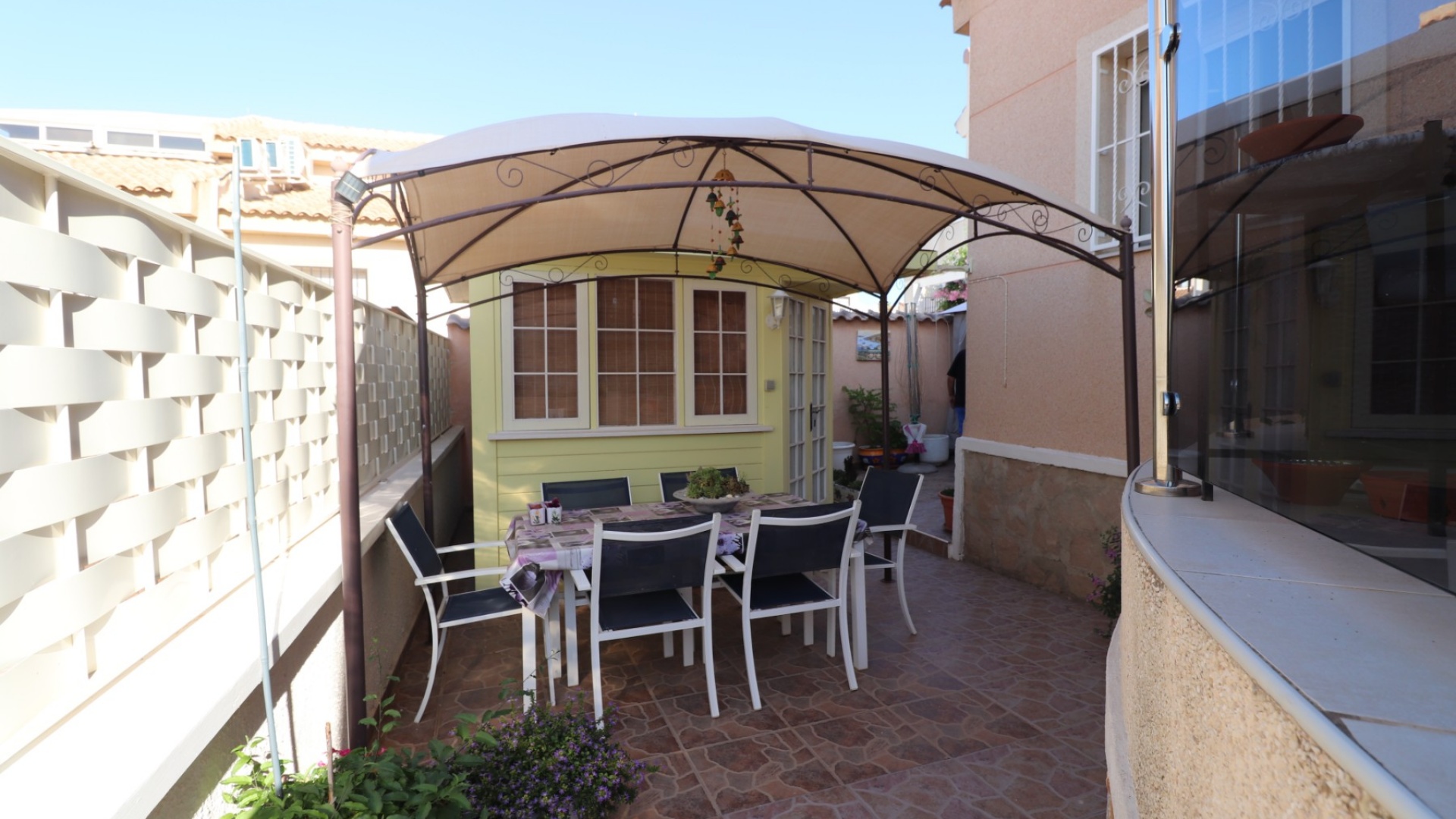 Cette villa individuelle de deux chambres orientée ouest à Benimar II est située à seulement 5 minutes à pied du centre commercial de Benimar, qui comprend Mcdonalds, une grande variété de lieux de restauration, des magasins, un centre vétérinaire et un supermarché. Le centre-ville principal se trouve à seulement 5 minutes supplémentaires. Le parcours de golf La Marquesa à Rojales est à seulement 5 minutes en voiture et la plage de Guardamar est à environ 10 minutes. Cette propriété d'un étage a été bien entretenue par les propriétaires actuels et est accessible via une terrasse circulaire vitrée, parfaite comme espace de détente « d'hiver » donnant sur la piscine privée. Le salon d'une taille très confortable bénéficiant de beaucoup de lumière dispose d'une cheminée à bois, d'une unité de climatisation et de portes à double ouverture donnant sur une terrasse ; Cuisine équipée de style américain ; buanderie séparée; deux chambres doubles avec placards intégrés, la principale avec unité de climatisation, accès à une terrasse et une salle de douche privative ; autre salle de douche familiale. Le jardin est carrelé pour un entretien facile avec quelques bordures plantées, piscine privée, parking hors route avec abri de voiture. Les extras comprennent un système d’irrigation et un hangar en bois de style « maison d’été ».