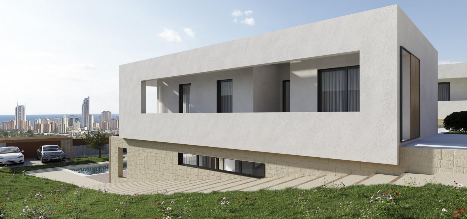 Benidorm se trouve à cinq minutes en voiture des propriétés et offre tous les services dont vous avez besoin, notamment des magasins, des bars, des restaurants, des supermarchés, des banques, des pharmacies et plusieurs écoles privées internationales.