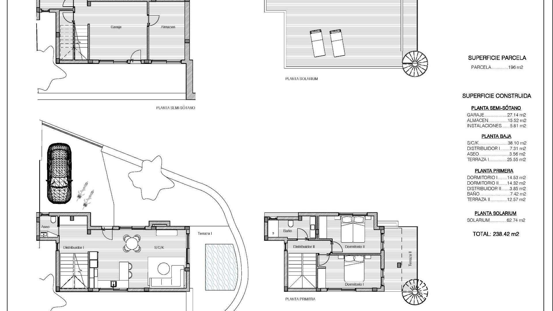 Ces propriétés disposent d'un étage jour, d'un étage nuit et d'un étage semi-sous-sol, très polyvalent qui s'adaptera complètement à vos besoins, ainsi que d'un solarium et de terrasses couvertes et non couvertes, avec des vues sur toute la région de la Vega Baja del Río Segura.