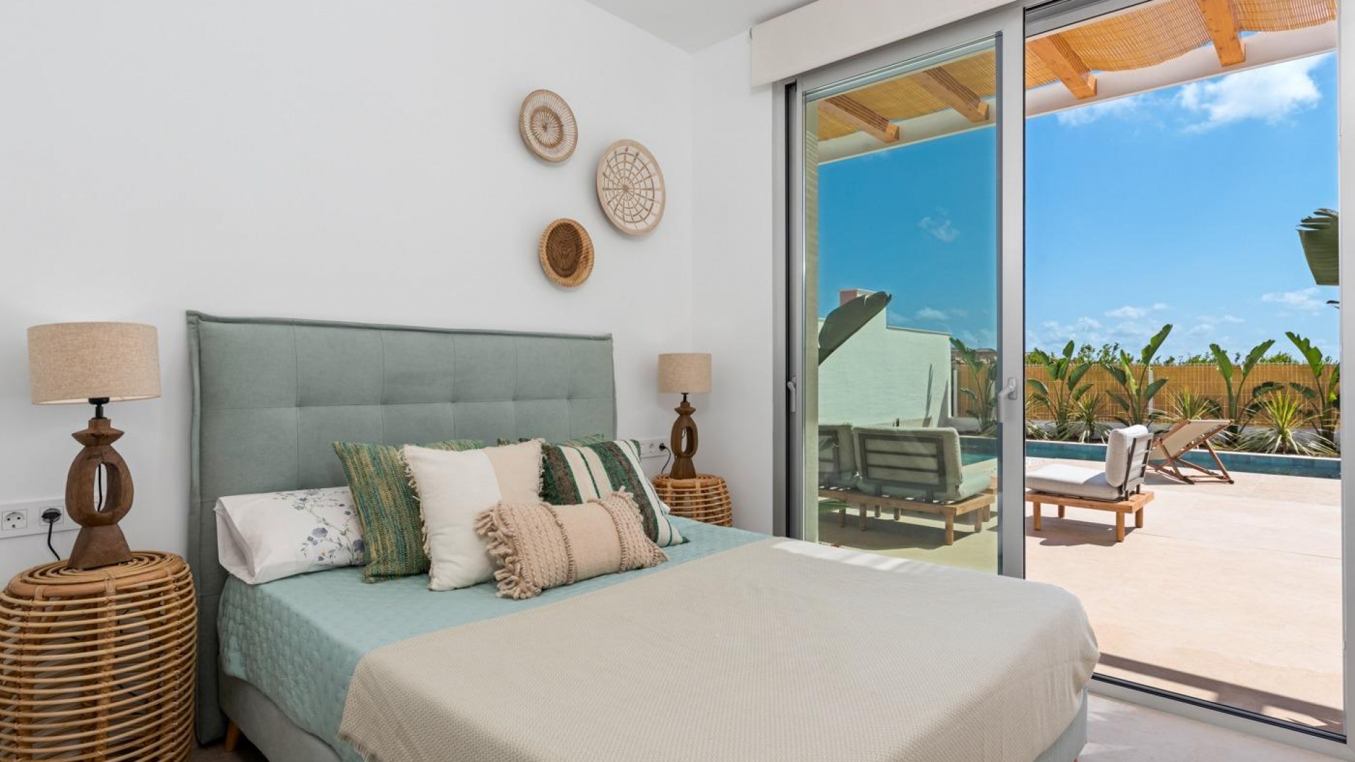 Les villas neuves de style moderne avec cuisine ouverte et espace de vie, 3 chambres, 2 salles de bains, terrain privé avec terrasse, place de parking et piscine privée, jardin et un merveilleux solarium avec des vues incroyables.