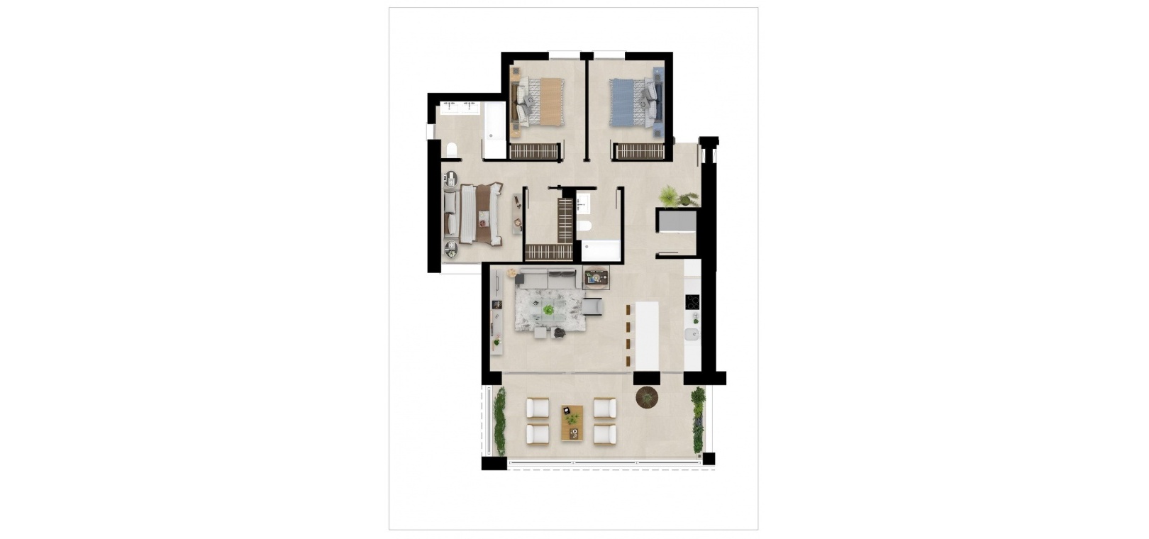 Les maisons seront prêtes à emménager, avec des finitions de haute qualité, des sols carrelés de grand format, de grandes fenêtres, une cuisine équipée avec des appareils électroménagers, des ensembles d'éclairage dans chaque pièce et l'air conditionné, entre autres avantages. Les logements sont dotés de l'isolation thermique et acoustique la plus efficace du marché (certificat énergétique : B).