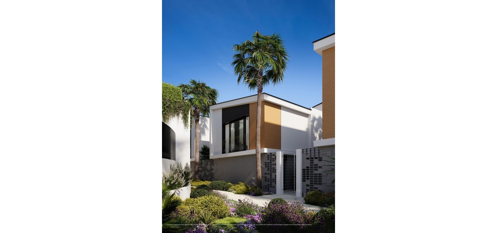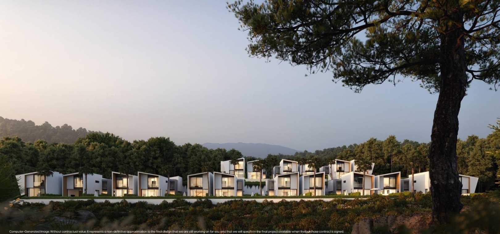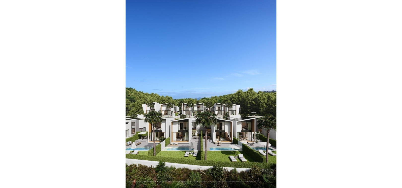 Des matériaux tels que le bois naturel ont été utilisés dans certaines zones du revêtement de la villa, permettant un dialogue constant avec le paysage naturel qui l'entoure et conférant incontestablement au projet le caractère unique, l'élégance et la pureté qui définissent les villas nouvellement construites.