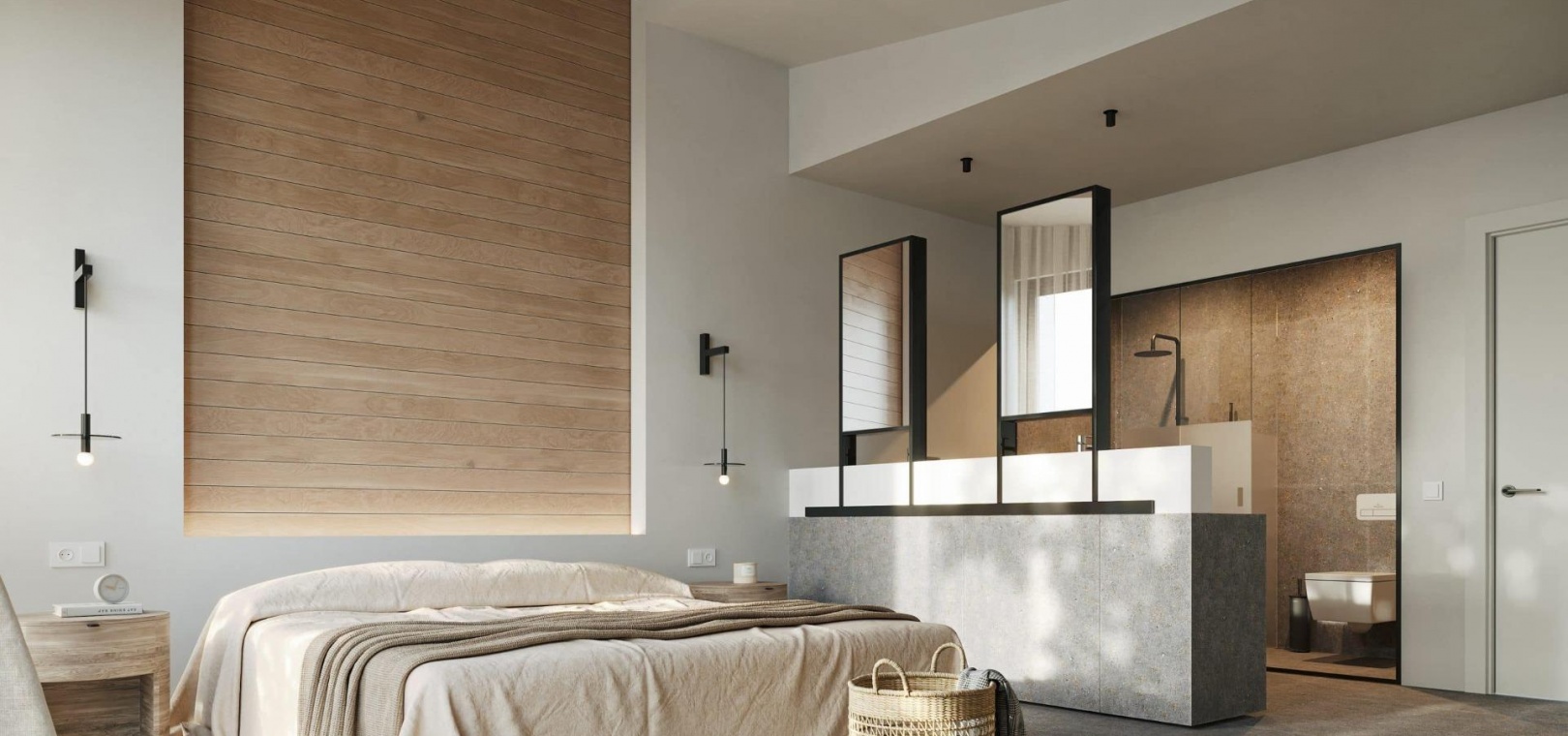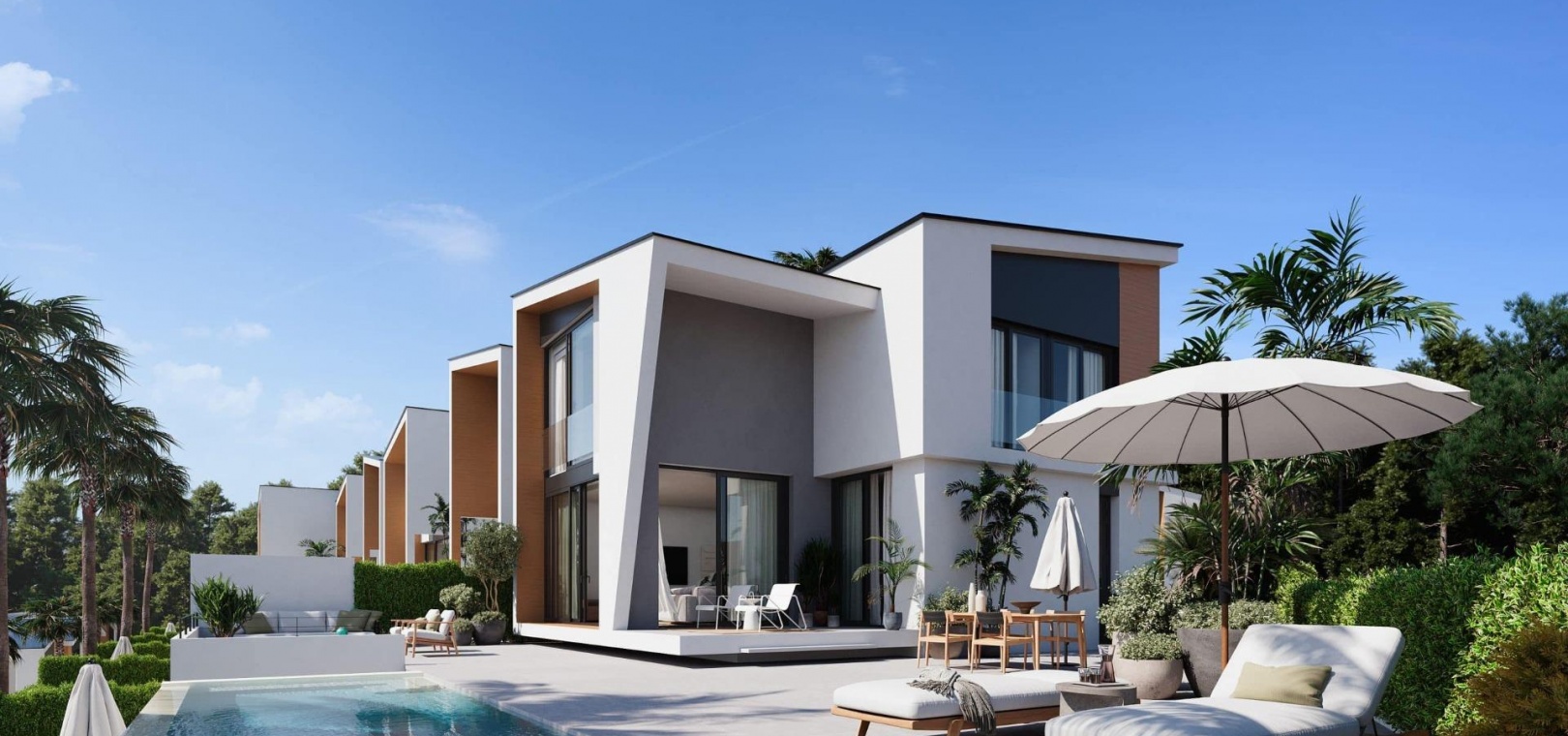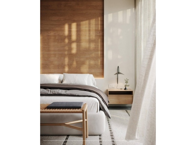 Des matériaux tels que le bois naturel ont été utilisés dans certaines zones du revêtement de la villa, permettant un dialogue constant avec le paysage naturel qui l'entoure et conférant incontestablement au projet le caractère unique, l'élégance et la pureté qui définissent les villas nouvellement construites.