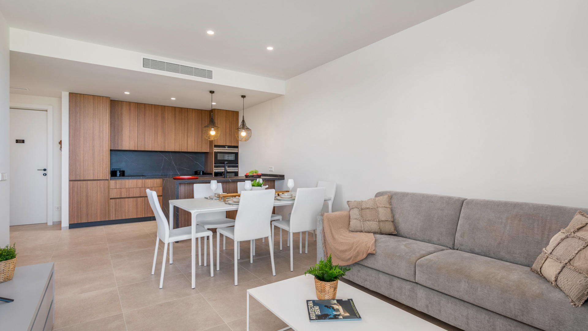 La Communauté Limonero, située au Las Colinas Golf & Country Club, est composée d'appartements qui donnent sur la mer et regardent le lever du soleil. La propriété reçoit beaucoup de lumière naturelle tout au long de la journée grâce à son orientation sud-est. L'appartement, déjà meublé, a une superficie de 85 m2. Il intègre un grand salon-salle à manger-cuisine offrant un espace pour vivre à côté des magnifiques vues sur l'horizon avec une terrasse de 36 m2. Il dispose de deux chambres et de deux salles de bains, dont une dans la chambre principale. Qualité, design et élégance définissent ce concept de logement. Les espaces communs dont dispose Limonero sont la piscine à débordement et le parking avec place de parking privée et débarras.