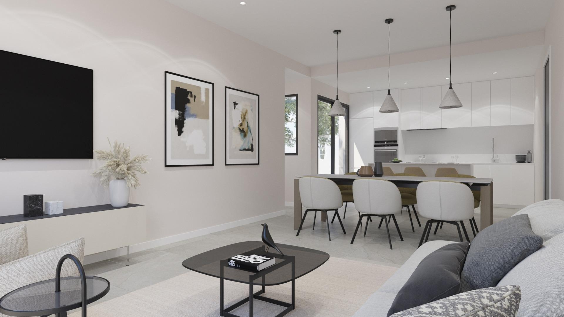 Les villas sont distribuées sur un étage, avec 3 chambres à coucher, 2 salles de bains, cuisine ouverte, salon, grand solarium, jardin privé avec la piscine, barbecue et place de parking.