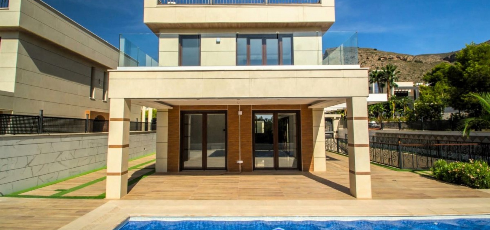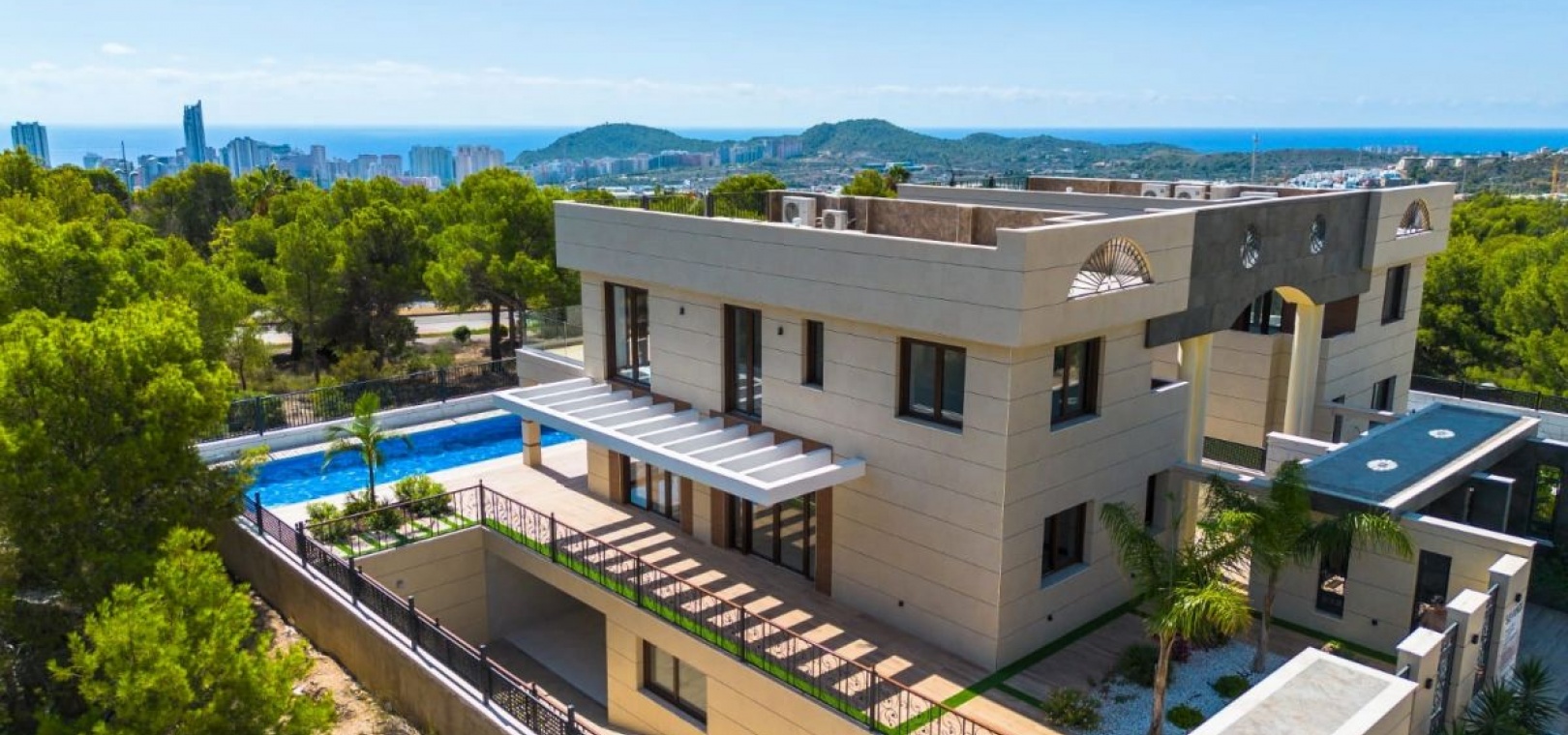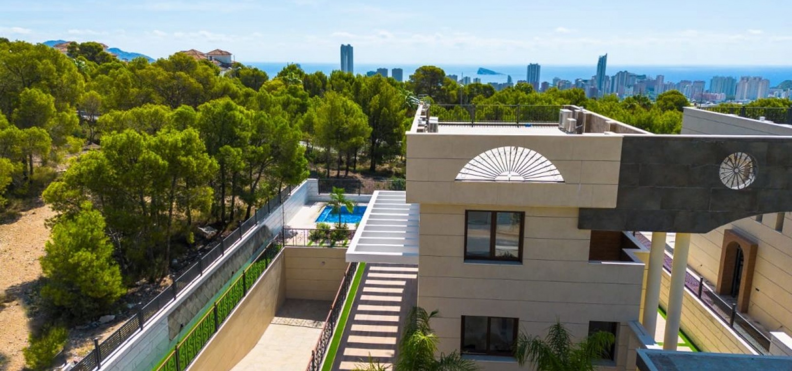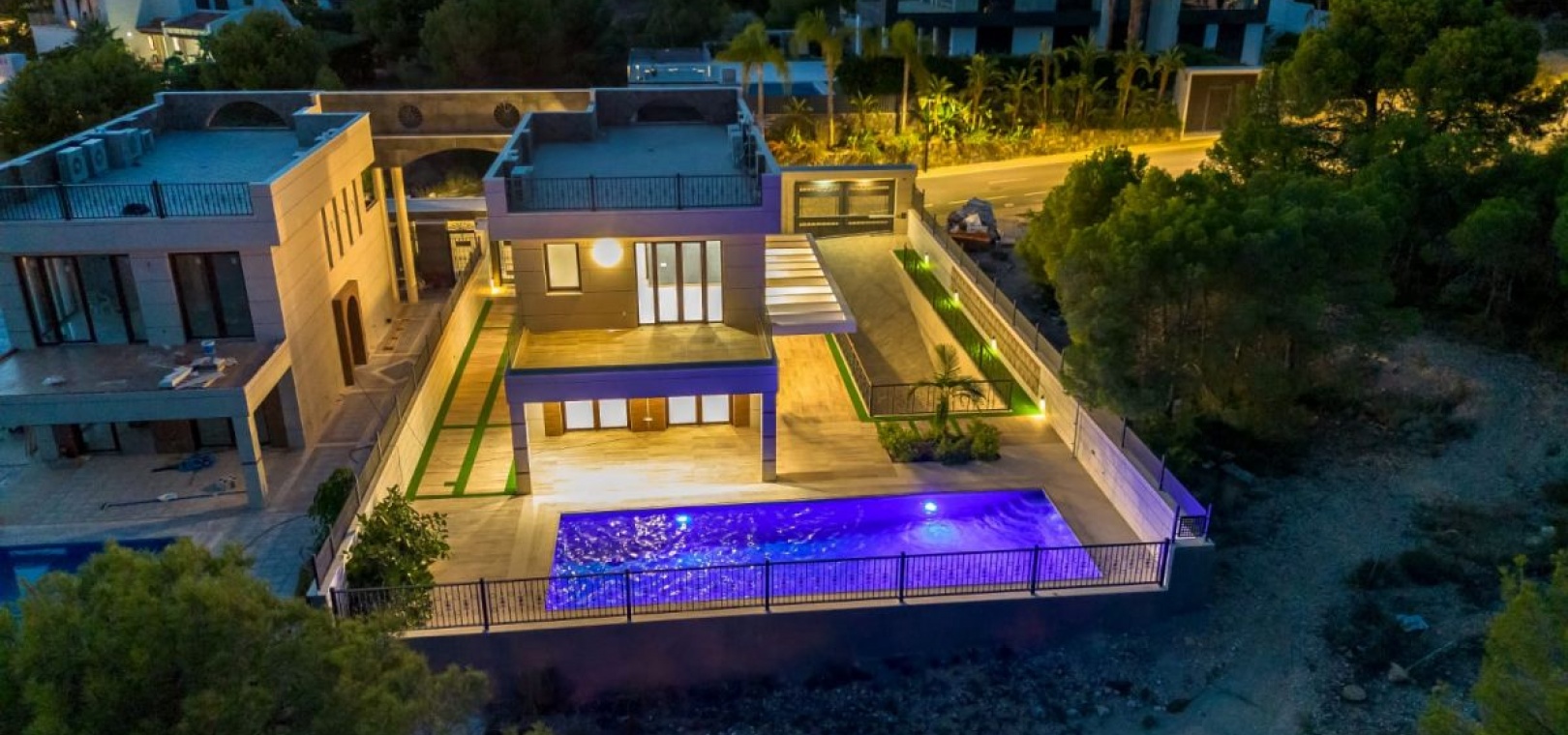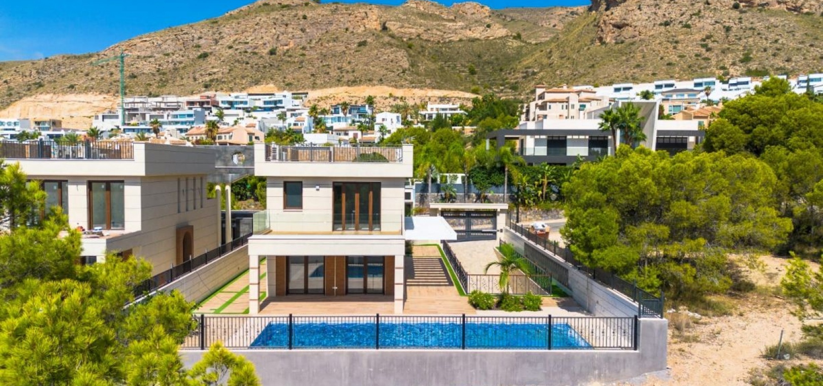 Luxueuse Villa à Sierra Cortina, FinestratDécouvrez une élégance inégalée et une sophistication moderne dans cette villa exquise située dans le prestigieux quartier de Sierra Cortina à Finestrat, à seulement 3 km en voiture des rives ensoleillées de la plage de Poniente à Benidorm. Conçue et construite par un constructeur privé, cette maison se distingue par sa qualité supérieure et son style architectural distinctif, offrant une expérience de vie unique rarement trouvée dans la région. Caractéristiques principales : Cadre exclusif : Située sur un généreux terrain de 528 m², cette propriété fait partie d'une enclave exclusive comprenant seulement deux villas, garantissant l'intimité et une qualité de construction sur mesure qui dépasse les offres locales standard. Vie spacieuse : La villa comprend 380 m² d'espace de vie méticuleusement conçu, offrant suffisamment d'espace pour le confort et le luxe. Efficacité énergétique : notée au niveau le plus élevé avec une certification d'efficacité énergétique Groupe A, la maison intègre des technologies avancées d'économie d'énergie, garantissant la durabilité et un impact environnemental réduit. Chambres et salles de bains luxueuses : Bénéficiant de 4 chambres spacieuses et de 4 salles de bains élégantes, la villa offre un hébergement spacieux pour la famille et les invités, avec chaque espace conçu pour offrir confort et style.Garage couvert : un garage spacieux peut accueillir jusqu'à 3 véhicules, offrant un parking sécurisé et pratique.Piscine à débordement : la pièce maîtresse de la villa est une superbe piscine à débordement de 12 × 4 mètres, parfaite pour se détendre et se divertir tout en profitant de la vue imprenable sur le paysage environnant.Technologie Smart Home : Entièrement équipée de 100 % de domotique, la villa offre une technologie de pointe qui vous permet de contrôler l'éclairage, la climatisation et les systèmes de sécurité d'une simple pression sur un bouton.Matériaux haut de gamme : Chaque aspect de la construction de la villa reflète une qualité supérieure : Intérieur : Tous les murs intérieurs sont construits en brique et finis avec du plâtre projeté de haute qualité, offrant durabilité et une esthétique raffinée. Extérieur : Les façades sont revêtues de porcelaine luxueuse, alliant beauté et résilience conditions météorologiques. Chauffage et climatisation : un système aérothermique avancé assure un contrôle climatique efficace et efficient, améliorant le confort tout au long de l'année. Emplacement : Nichée dans la paisible et pittoresque Sierra Cortina, la villa offre un mélange parfait de sérénité et de commodité. Profitez de la tranquillité de votre oasis privée tout en étant à proximité du style de vie animé de Benidorm et des eaux cristallines de la plage de Poniente. Une opportunité pour la famille et les amis : Adjacente à cette magnifique villa, la deuxième propriété sur le terrain sera bientôt achevée. Il s'agit d'une opportunité rare d'acheter la villa voisine, idéale pour les familles ou amis souhaitant vivre à proximité tout en profitant de l'indépendance de leur propre maison. Réservez-le maintenant pour bénéficier de cet arrangement exclusif.