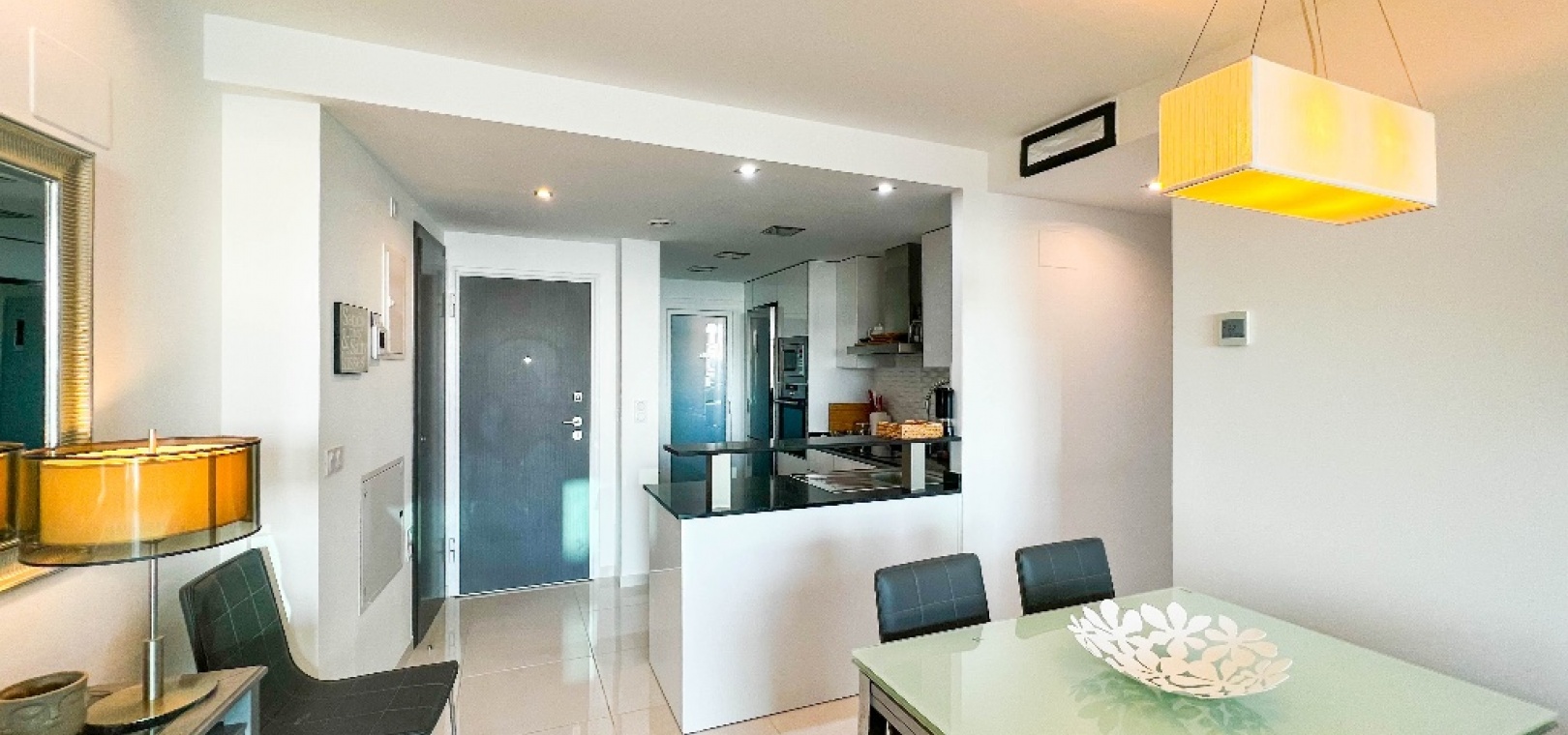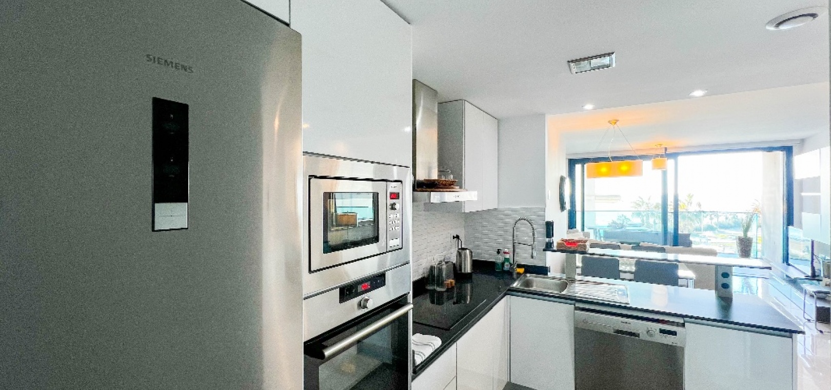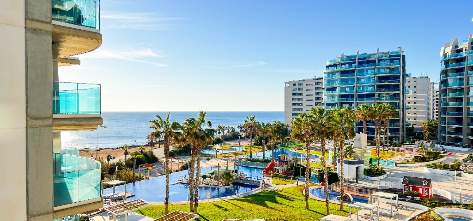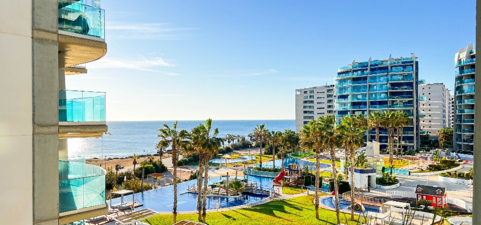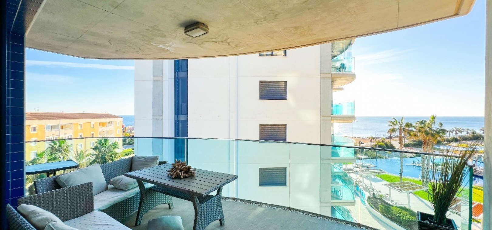 Appartement à vendre en bord de mer dans un complexe résidentiel de luxe fermé avec piscines dont une chauffée, salle de sport, sauna, aire de jeux pour enfants et espace détente. Ce bel appartement est entièrement meublé et équipé de tout le nécessaire pour un séjour confortable. Sur la terrasse spacieuse, vous pourrez profiter de superbes vues panoramiques sur la mer et les piscines. L'appartement dispose de 2 chambres, 2 salles de bains, un salon avec canapé, une cuisine et une grande terrasse avec table et chaises. L'appartement a également une place dans le garage souterrain. Le complexe résidentiel « Sea Senses » dispose d'un espace paysager avec piscine à débordement. L'une des piscines est chauffée, l'autre est dotée d'un jacuzzi, de toboggans aquatiques et d'un lit hydromassant. Il y a un café et deux bars. Le complexe est équipé d'installations sportives : terrain de paddle et terrain de basket, salle de sport avec vue sur la mer, spa avec saunas turcs et finlandais, aire de jeux pour enfants avec maison de jouets, ping-pong, zone avec wifi gratuit, ainsi qu'un parking souterrain. à distance il y a des restaurants, des centres commerciaux, un arrêt de bus, un supermarché, des bureaux bancaires de Punta Prima. À moins de 10 minutes en voiture, vous trouverez également plusieurs terrains de golf, un parc aquatique, des clubs et discothèques, du karting, des centres sportifs, un port de plaisance et une variété de superbes plages de sable de la Costa Blanca.