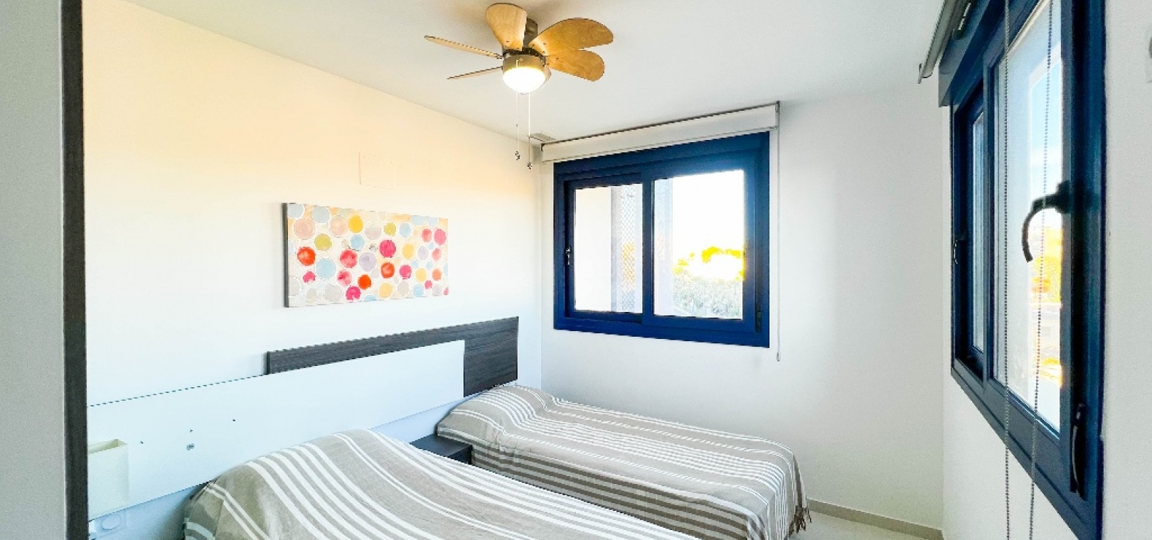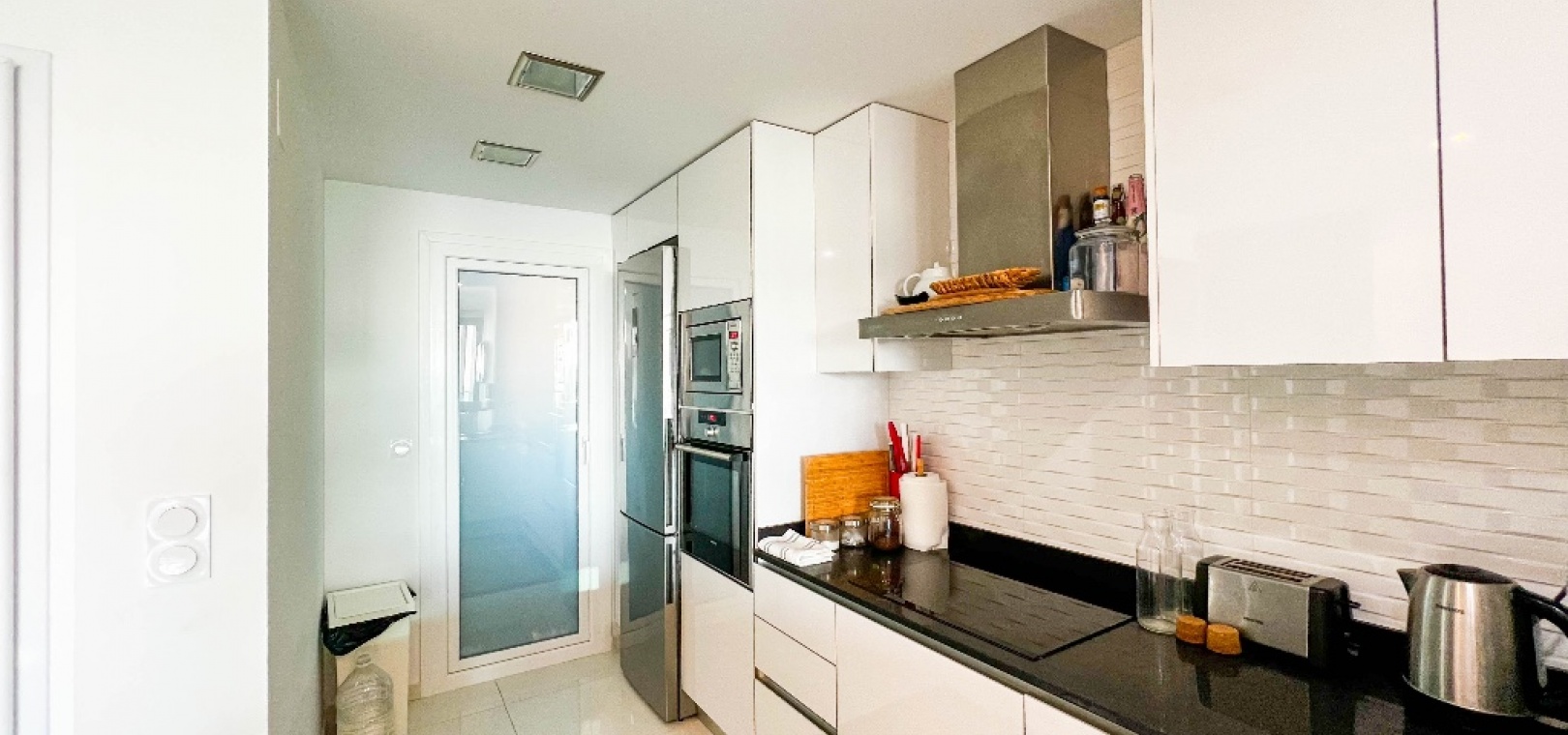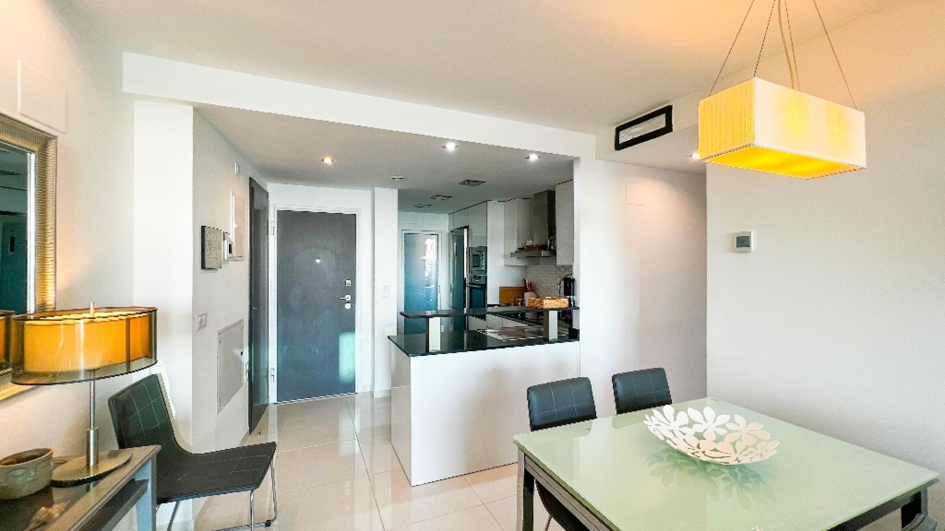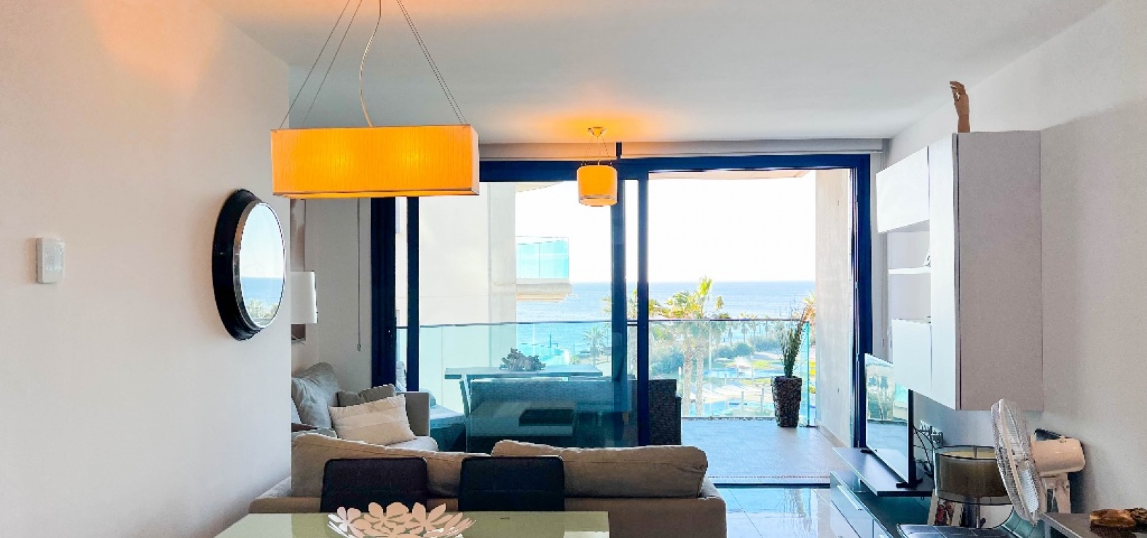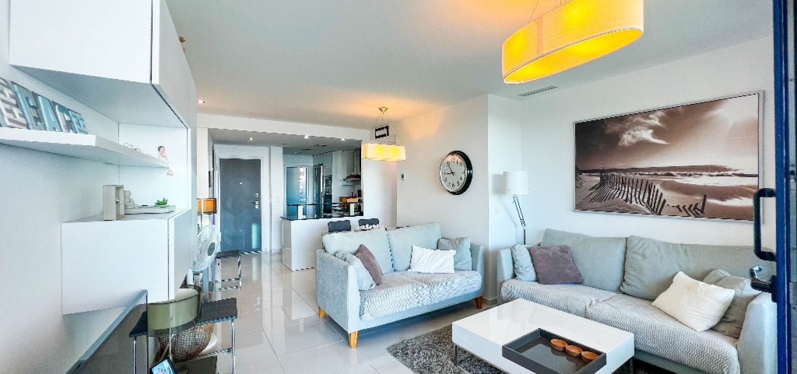 Appartement à vendre en bord de mer dans un complexe résidentiel de luxe fermé avec piscines dont une chauffée, salle de sport, sauna, aire de jeux pour enfants et espace détente. Ce bel appartement est entièrement meublé et équipé de tout le nécessaire pour un séjour confortable. Sur la terrasse spacieuse, vous pourrez profiter de superbes vues panoramiques sur la mer et les piscines. L'appartement dispose de 2 chambres, 2 salles de bains, un salon avec canapé, une cuisine et une grande terrasse avec table et chaises. L'appartement a également une place dans le garage souterrain. Le complexe résidentiel « Sea Senses » dispose d'un espace paysager avec piscine à débordement. L'une des piscines est chauffée, l'autre est dotée d'un jacuzzi, de toboggans aquatiques et d'un lit hydromassant. Il y a un café et deux bars. Le complexe est équipé d'installations sportives : terrain de paddle et terrain de basket, salle de sport avec vue sur la mer, spa avec saunas turcs et finlandais, aire de jeux pour enfants avec maison de jouets, ping-pong, zone avec wifi gratuit, ainsi qu'un parking souterrain. à distance il y a des restaurants, des centres commerciaux, un arrêt de bus, un supermarché, des bureaux bancaires de Punta Prima. À moins de 10 minutes en voiture, vous trouverez également plusieurs terrains de golf, un parc aquatique, des clubs et discothèques, du karting, des centres sportifs, un port de plaisance et une variété de superbes plages de sable de la Costa Blanca.