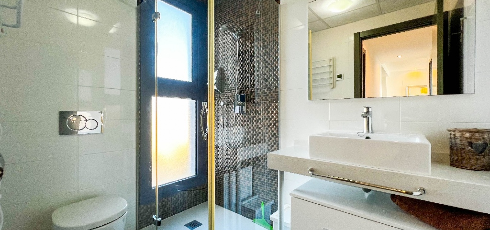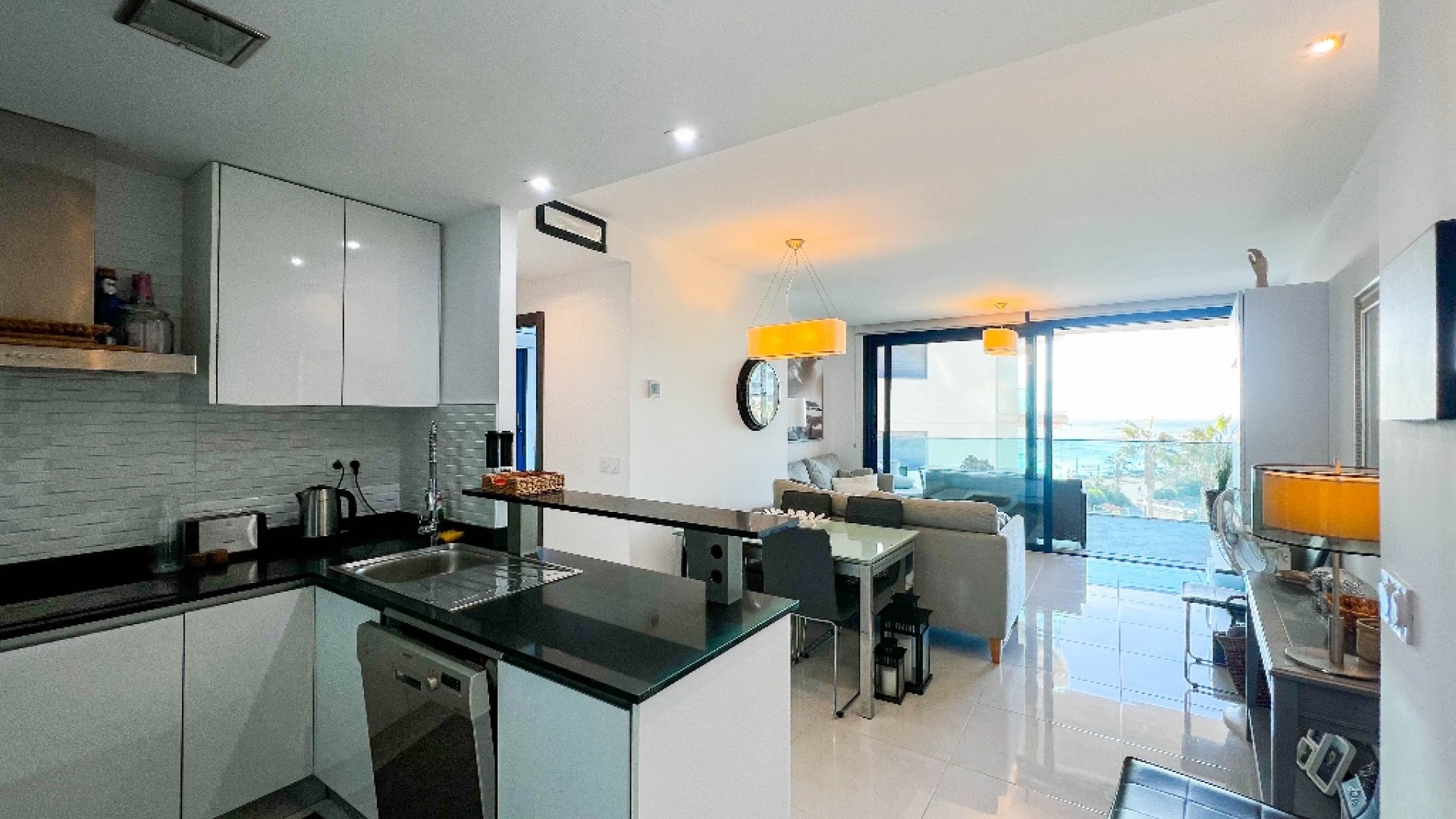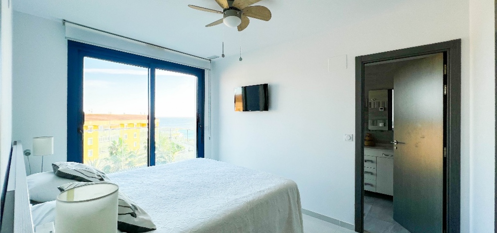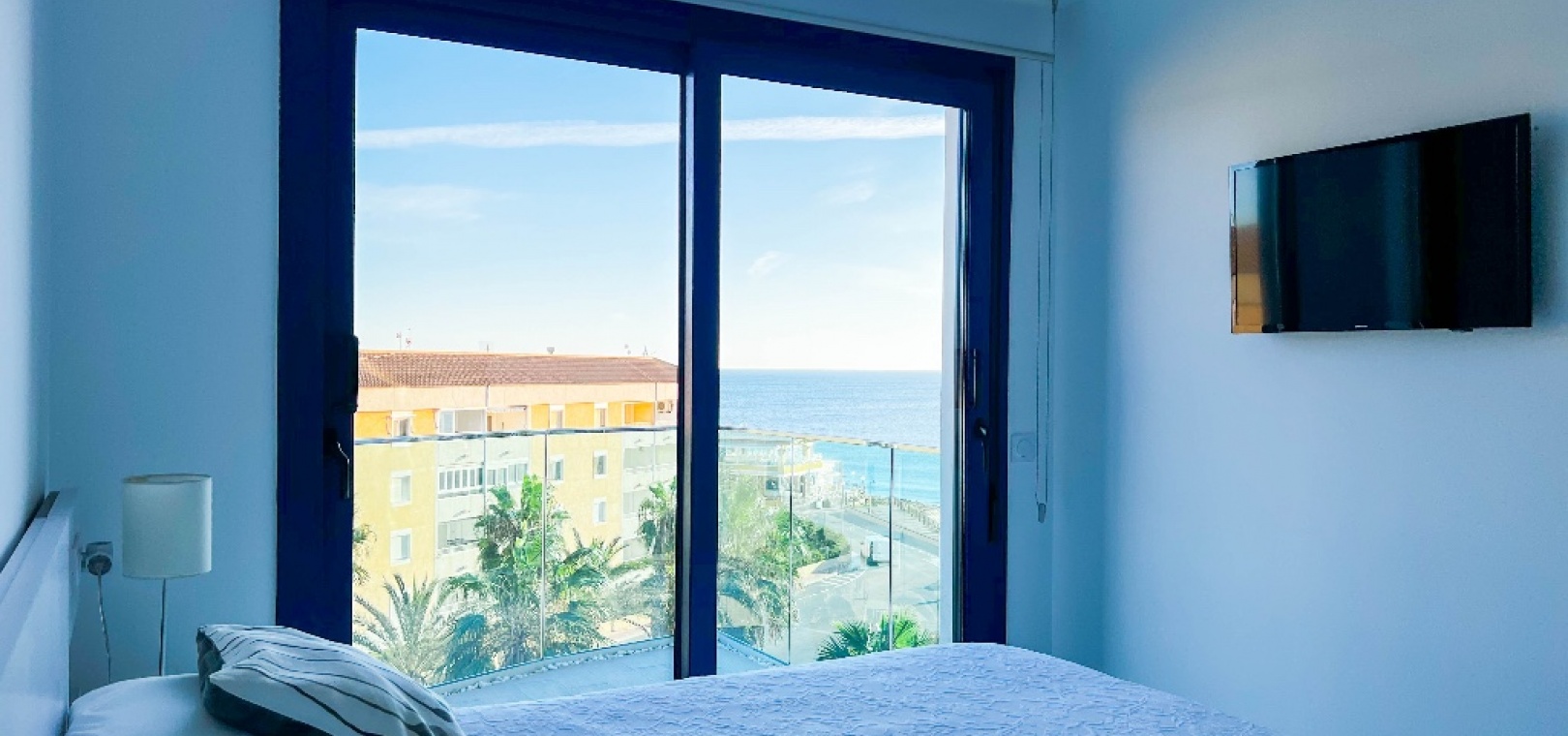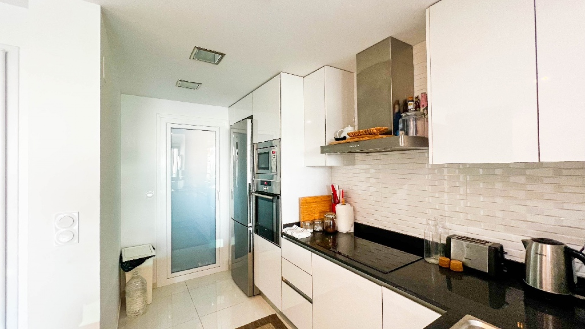 Appartement à vendre en bord de mer dans un complexe résidentiel de luxe fermé avec piscines dont une chauffée, salle de sport, sauna, aire de jeux pour enfants et espace détente. Ce bel appartement est entièrement meublé et équipé de tout le nécessaire pour un séjour confortable. Sur la terrasse spacieuse, vous pourrez profiter de superbes vues panoramiques sur la mer et les piscines. L'appartement dispose de 2 chambres, 2 salles de bains, un salon avec canapé, une cuisine et une grande terrasse avec table et chaises. L'appartement a également une place dans le garage souterrain. Le complexe résidentiel « Sea Senses » dispose d'un espace paysager avec piscine à débordement. L'une des piscines est chauffée, l'autre est dotée d'un jacuzzi, de toboggans aquatiques et d'un lit hydromassant. Il y a un café et deux bars. Le complexe est équipé d'installations sportives : terrain de paddle et terrain de basket, salle de sport avec vue sur la mer, spa avec saunas turcs et finlandais, aire de jeux pour enfants avec maison de jouets, ping-pong, zone avec wifi gratuit, ainsi qu'un parking souterrain. à distance il y a des restaurants, des centres commerciaux, un arrêt de bus, un supermarché, des bureaux bancaires de Punta Prima. À moins de 10 minutes en voiture, vous trouverez également plusieurs terrains de golf, un parc aquatique, des clubs et discothèques, du karting, des centres sportifs, un port de plaisance et une variété de superbes plages de sable de la Costa Blanca.