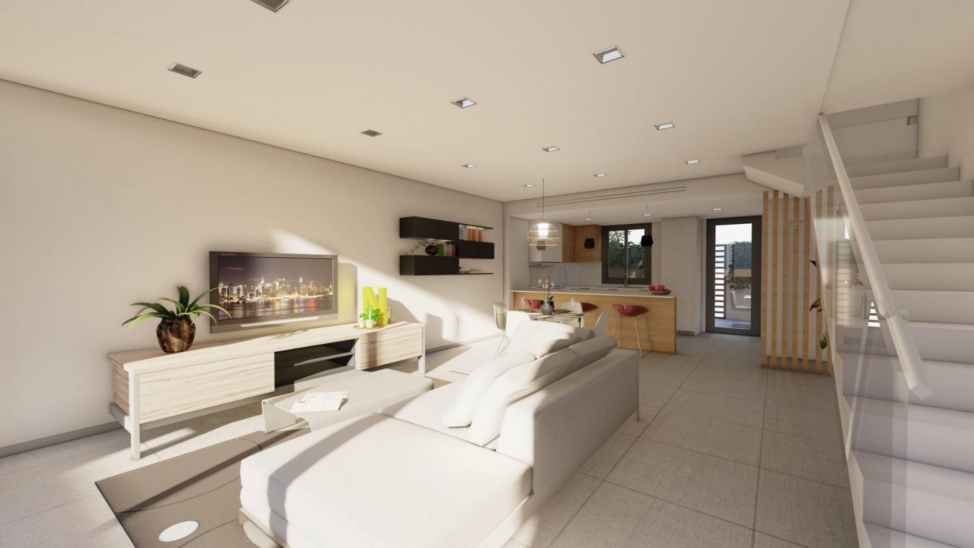 Chaque maison est équipée d'un jardin paysager, d'un éclairage LED, de volets électriques, d'une pré-installation de panneaux solaires, d'armoires encastrées, d'une porte de sécurité, d'une cuisine entièrement équipée avec des comptoirs Silestone, et bien d'autres choses encore.