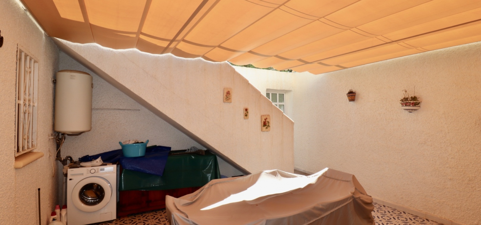 Résidence principale : - 2 chambres spacieuses - salle de bain avec douche à l'italienne - Séjour avec cuisine ouverte - Patio et jardin avec accès direct à une spacieuse terrasse sur le toit - Terrasse sur le toit avec rangement/chambre d'amis - Espace extérieur privé avec accès à une piscine commune, parfait pour se détendre et se rafraîchir.