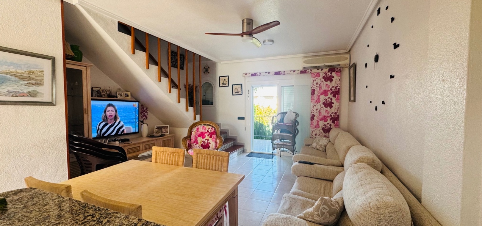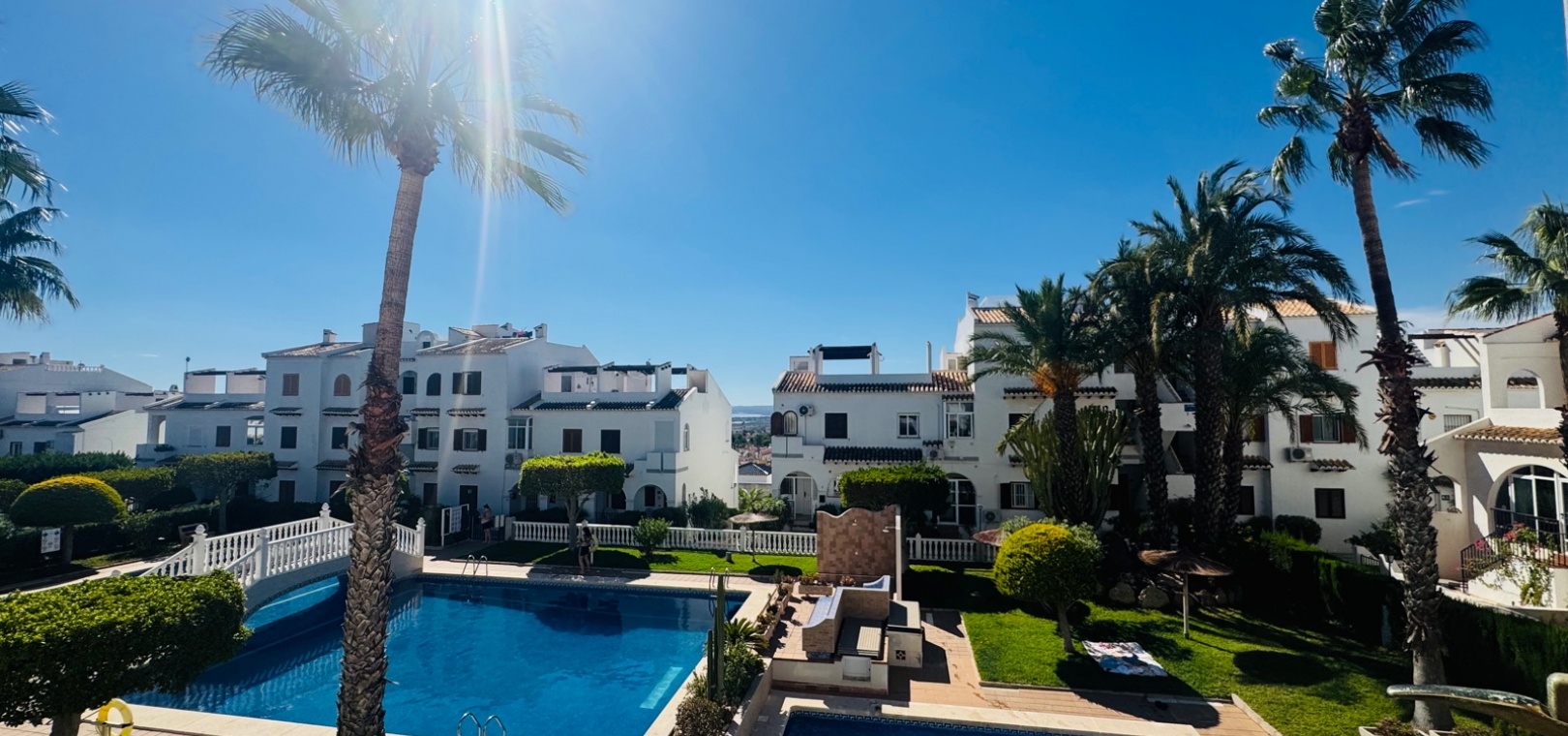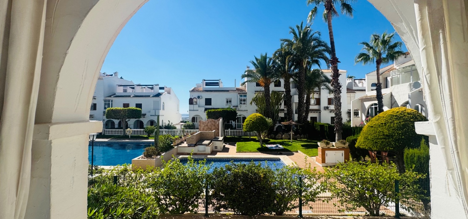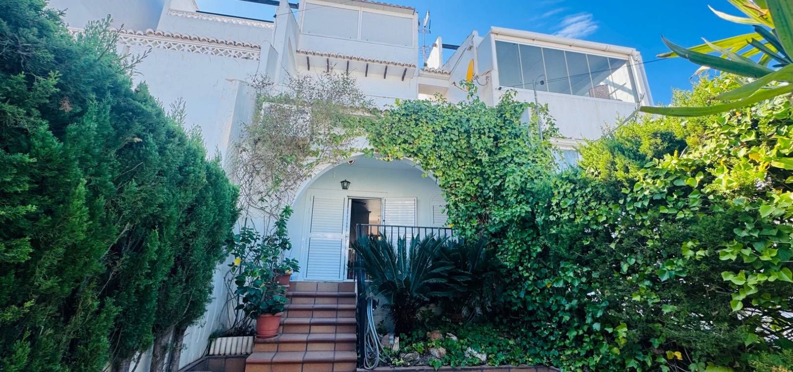 Nous sommes ravis de vous présenter cette charmante maison de ville, comprenant 2 chambres et 1,5 salles de bain, ainsi qu'un séjour spacieux et lumineux qui allie confort et style. Une chambre supplémentaire pour les invités a été ajoutée dans le solarium, construite avec une structure en aluminium durable, offrant une flexibilité supplémentaire pour accueillir des visiteurs ou pour le rangement. Le design ouvert maximise l'espace et la lumière naturelle, créant une ambiance sereine et accueillante dans toute la maison.Cette propriété est située dans le très prisé complexe Bravo Hills Club, idéalement positionnée avec la façade donnant sur la route principale et l'arrière sur les magnifiques jardins communs et la piscine. Les résidents bénéficient de places de stationnement dans la rue ainsi que de places sécurisées à l'intérieur du complexe fermé. Chaque niveau de la maison offre une perspective différente sur les environs, avec la plus belle vue depuis la terrasse sur le toit, l'endroit parfait pour se détendre et profiter du paysage méditerranéen.