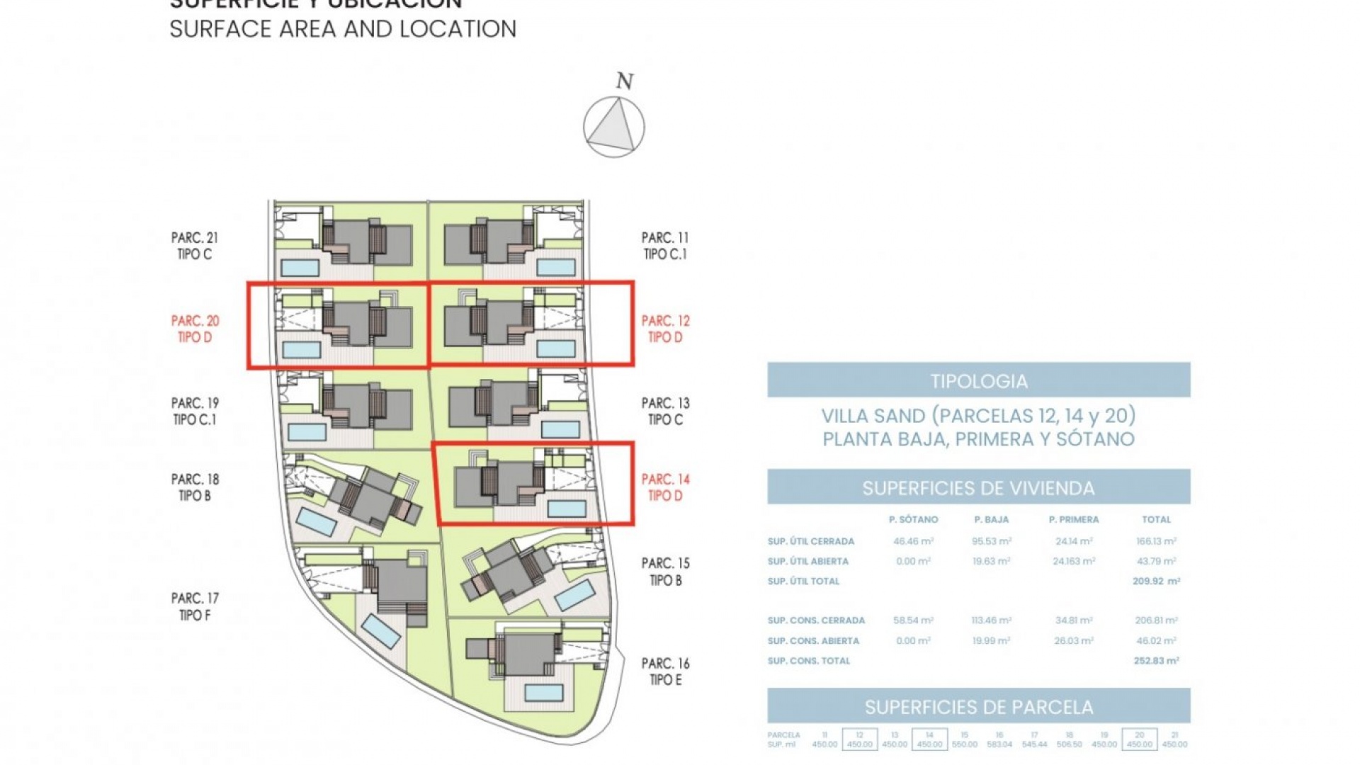 Les villas sont construites sur 2 étages, avec 3 chambres à coucher, 3 salles de bains, des toilettes pour invités, une cuisine ouverte sur le salon, des armoires encastrées, des terrasses, un jardin privé avec une piscine et un sous-sol avec un garage.