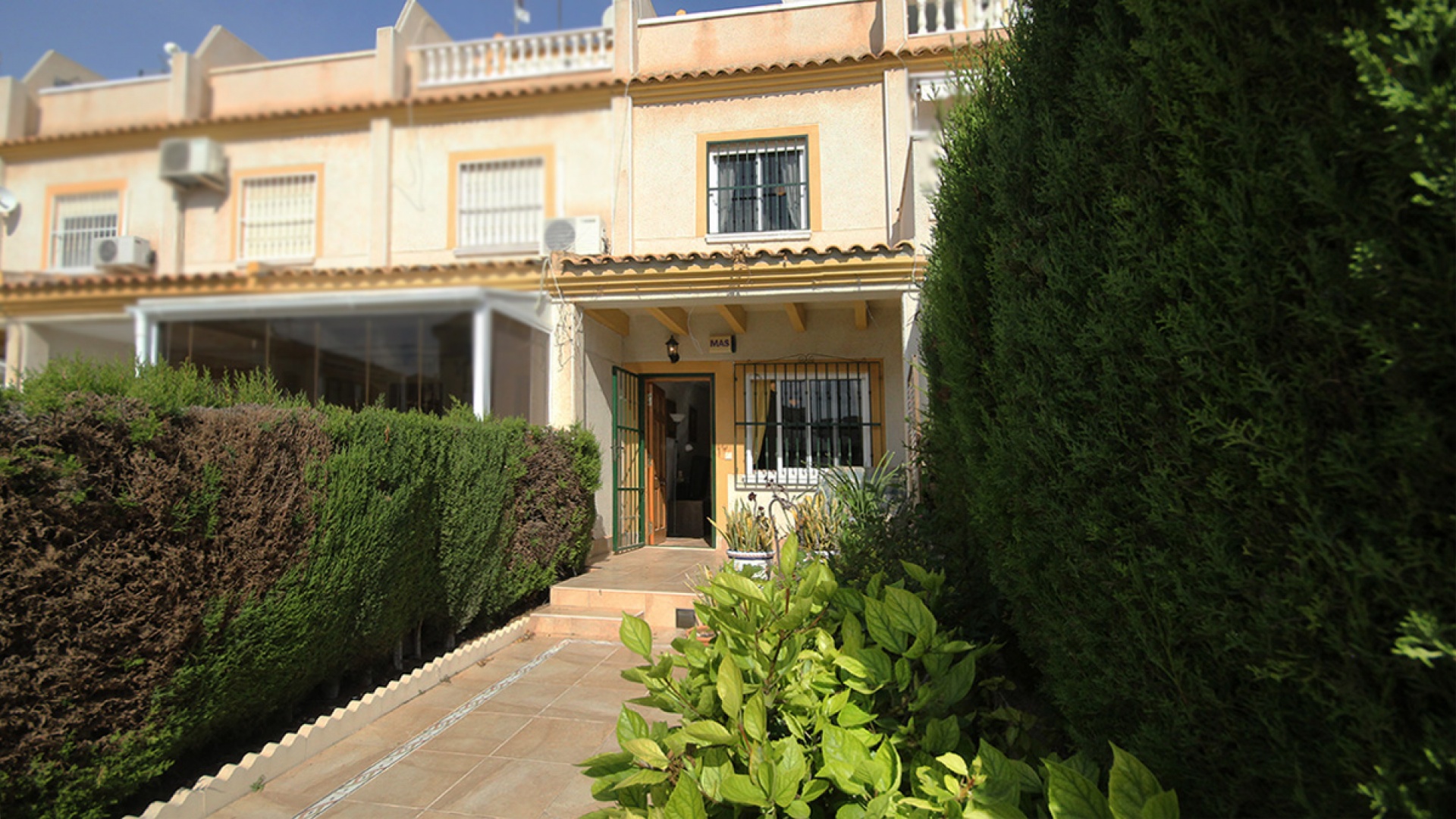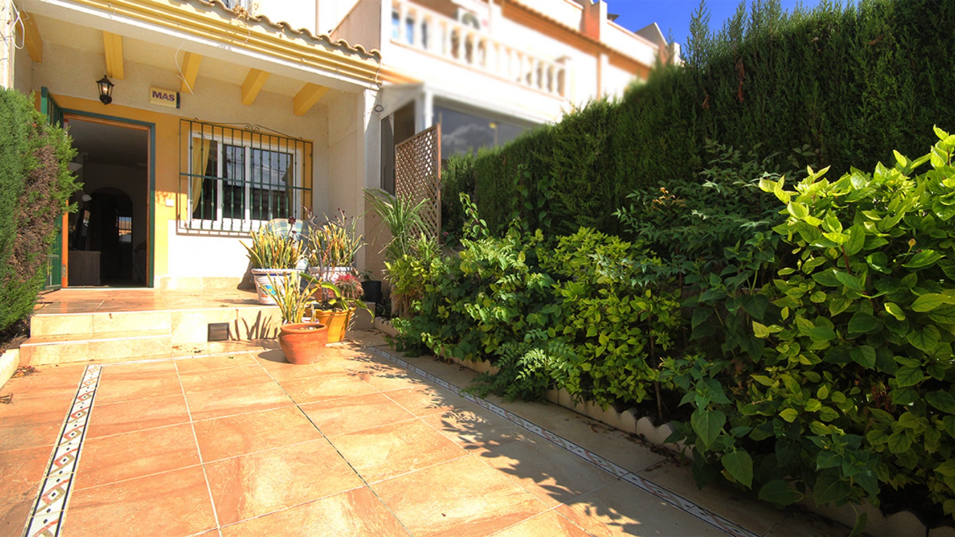 Une maison de ville de 3 chambres et 1,5 salle de bain orientée plein sud avec un solarium privé sur le toit située à St. James Hill, Villamartin, Costa Blanca.
