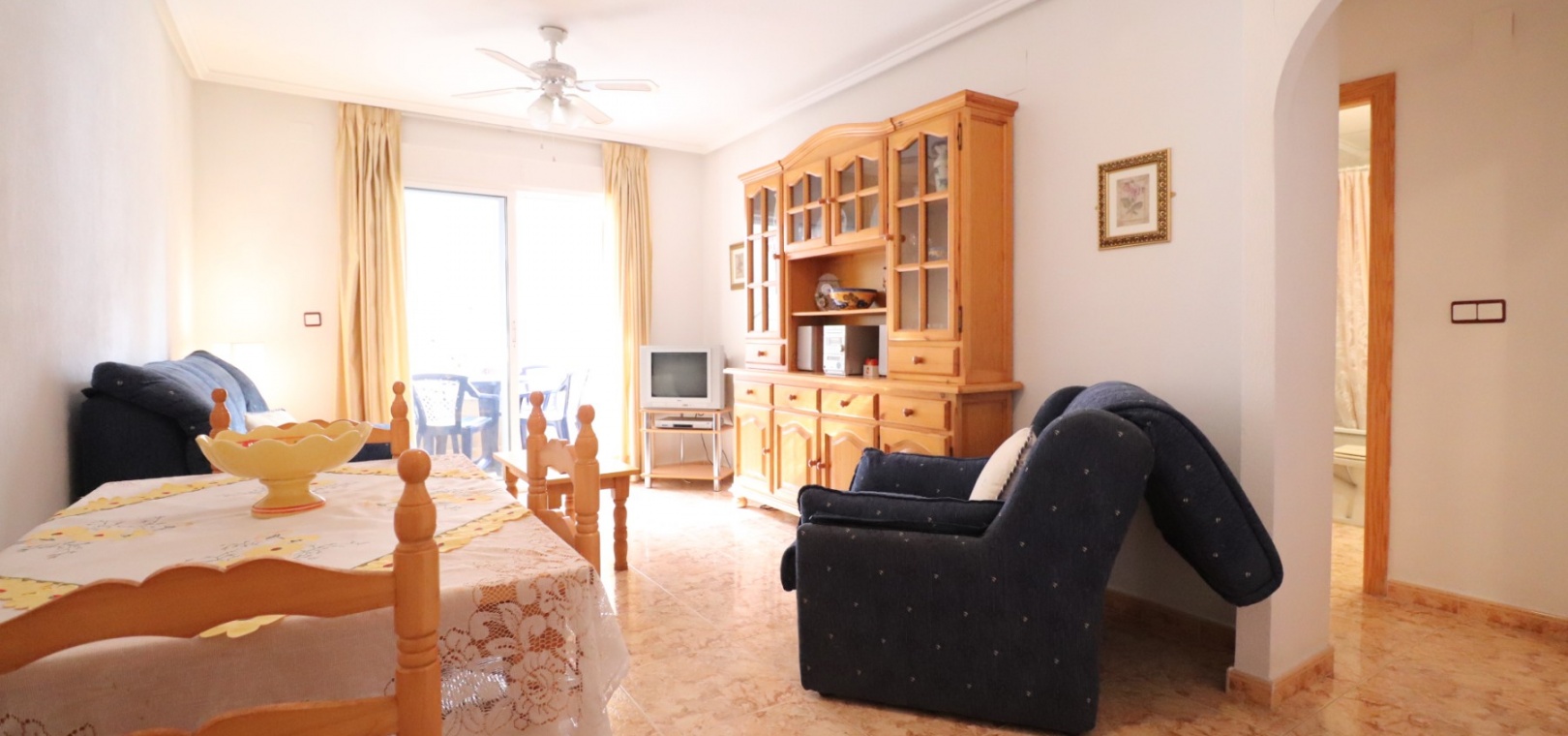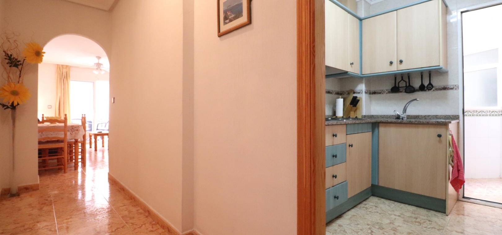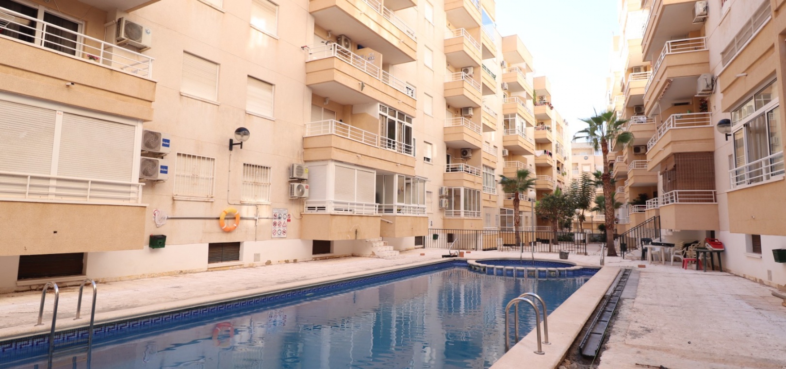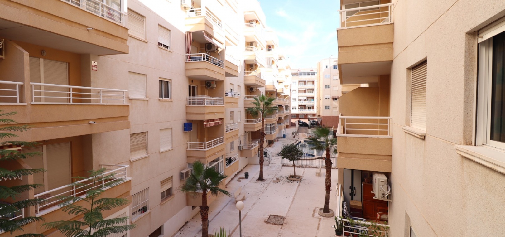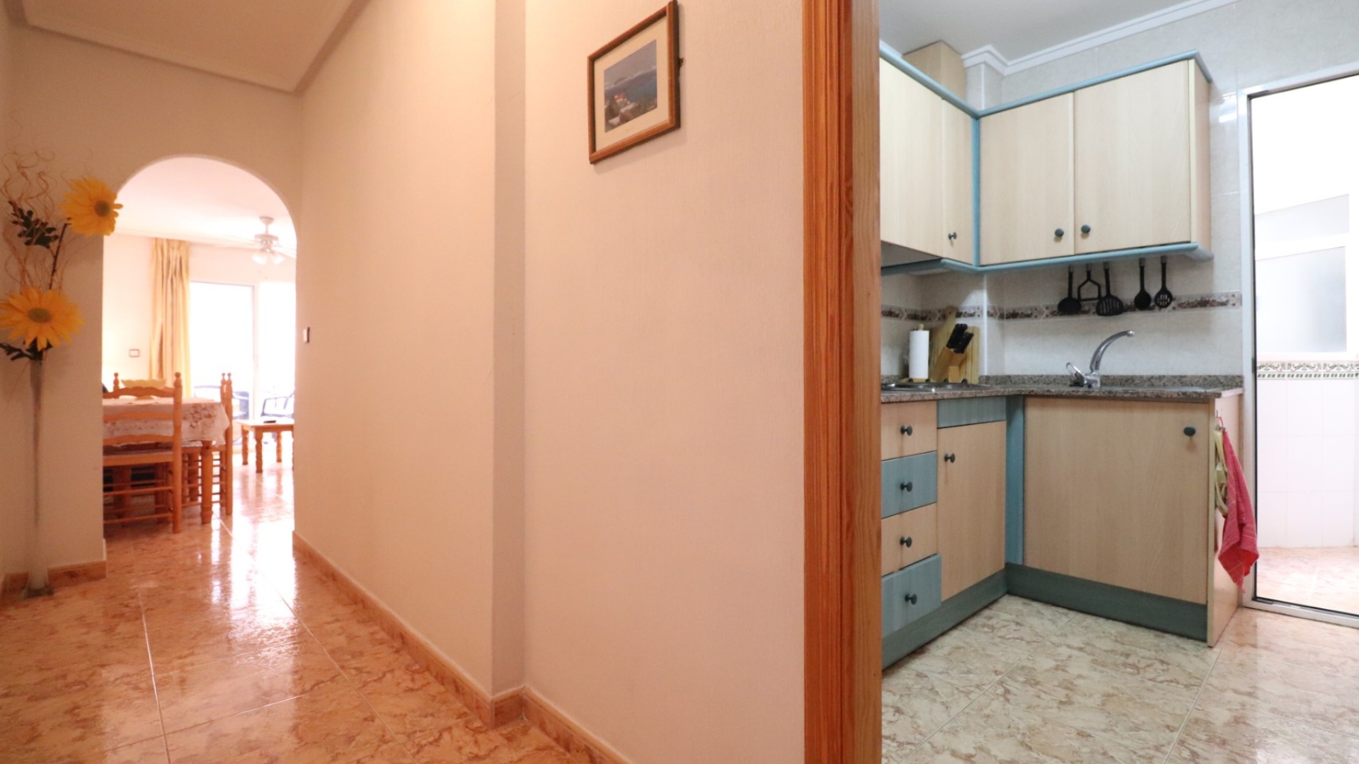 Ce superbe appartement spacieux de deux chambres au deuxième étage à Torrevieja est situé au centre, à distance de marche d'un large éventail de commodités et d'installations. Une promenade de seulement 10 à 15 minutes vous mènera à l'une des nombreuses plages proposées, à la promenade animée ; la ville offrant une marina internationale, une gare routière, des magasins et bien plus encore, ce qui en fait un endroit idéal pour profiter de tout ce que cette région animée a à offrir. À l'intérieur, l'appartement dispose d'une cuisine séparée équipée avec une porte menant à une buanderie, un salon/salle à manger spacieux avec accès à une terrasse couverte, deux chambres doubles, la principale avec placards intégrés. Une salle de bain familiale spacieuse complète l'intérieur. Située dans un immeuble avec ascenseur, la propriété bénéficie également d'un accès à une piscine commune et à un solarium commun, parfait pour se détendre et profiter du soleil de la Costa Blanca Sud. Bien entretenu et en bon état, cet appartement est une excellente maison de vacances à louer, offrant confort et commodité dans un endroit fantastique.