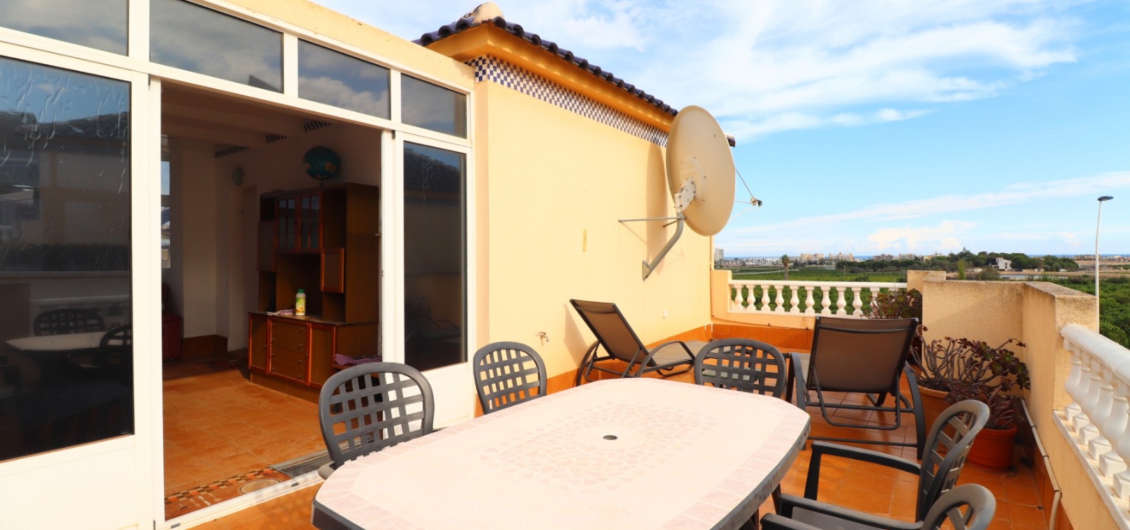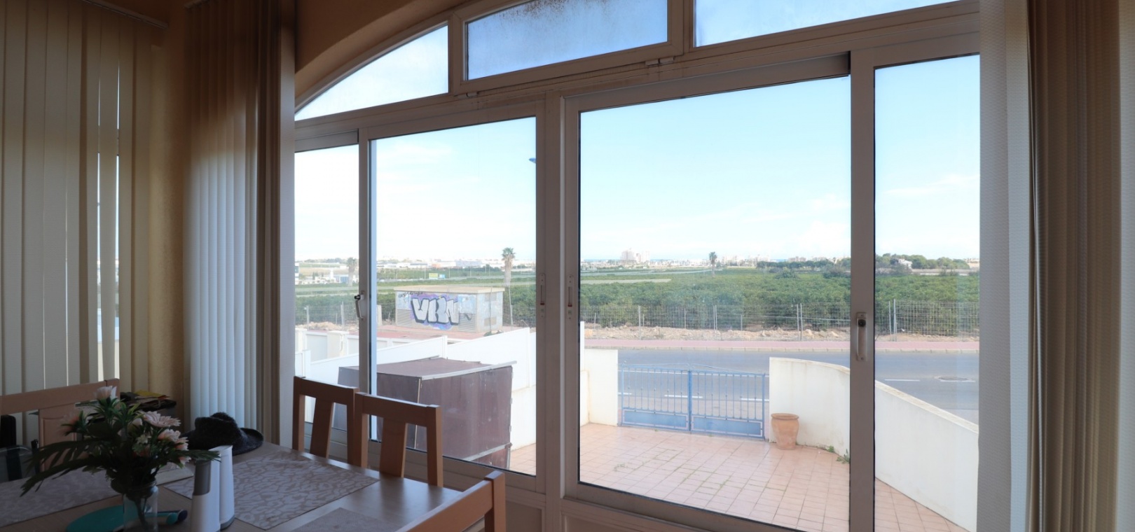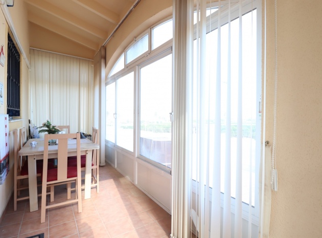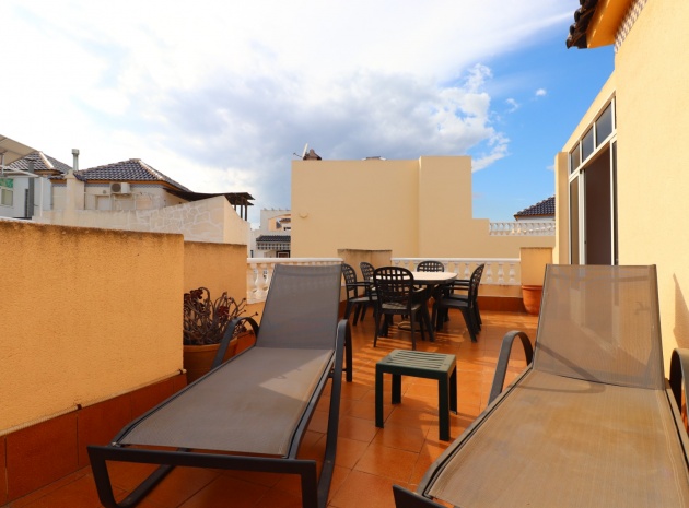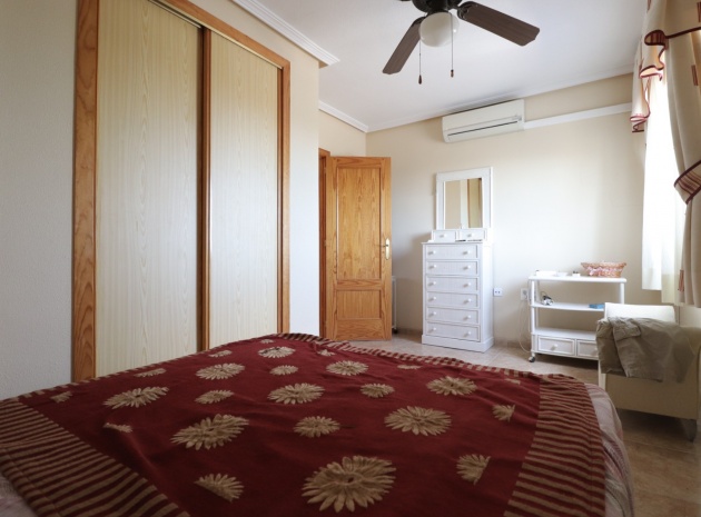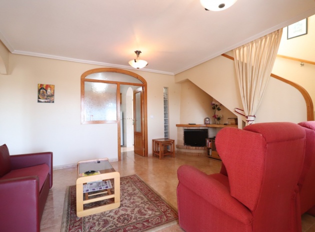 Cette villa individuelle de trois chambres, orientée à l'est, située dans un emplacement privilégié à Los Balcones, avec vue sur les bosquets, est située dans un quartier très recherché de la Costa Blanca Sud. Située à seulement quelques minutes en voiture de l'hôpital de Torrevieja et d'une sélection de bars et de restaurants, cette propriété est à moins de 10 minutes de Torrevieja et d'Orihuela Costa, avec leurs plages, leurs terrains de golf et leurs équipements dynamiques. La villa comprend trois chambres, dont deux sont idéalement situées au rez-de-chaussée, ainsi qu'une salle de bains familiale. La terrasse vitrée vous accueille dans le coin salon, qui comprend une charmante cheminée d'angle ouverte et des escaliers menant au premier étage. La cuisine équipée séparée se connecte à une buanderie pour plus de praticité. Le premier étage comprend une troisième chambre, une salle de douche et un accès à un solarium privé, dont la moitié est vitrée, offrant une utilisation polyvalente toute l'année. L'extérieur comprend un jardin carrelé et gravillonné nécessitant peu d'entretien, un parking hors route et suffisamment d'espace pour ajouter une piscine privée si vous le souhaitez. La climatisation est installée partout pour plus de confort, et les résidents bénéficient également d'un accès à une piscine commune. Ne manquez pas cette opportunité de réserver une villa dans un emplacement aussi privilégié - faites vite !