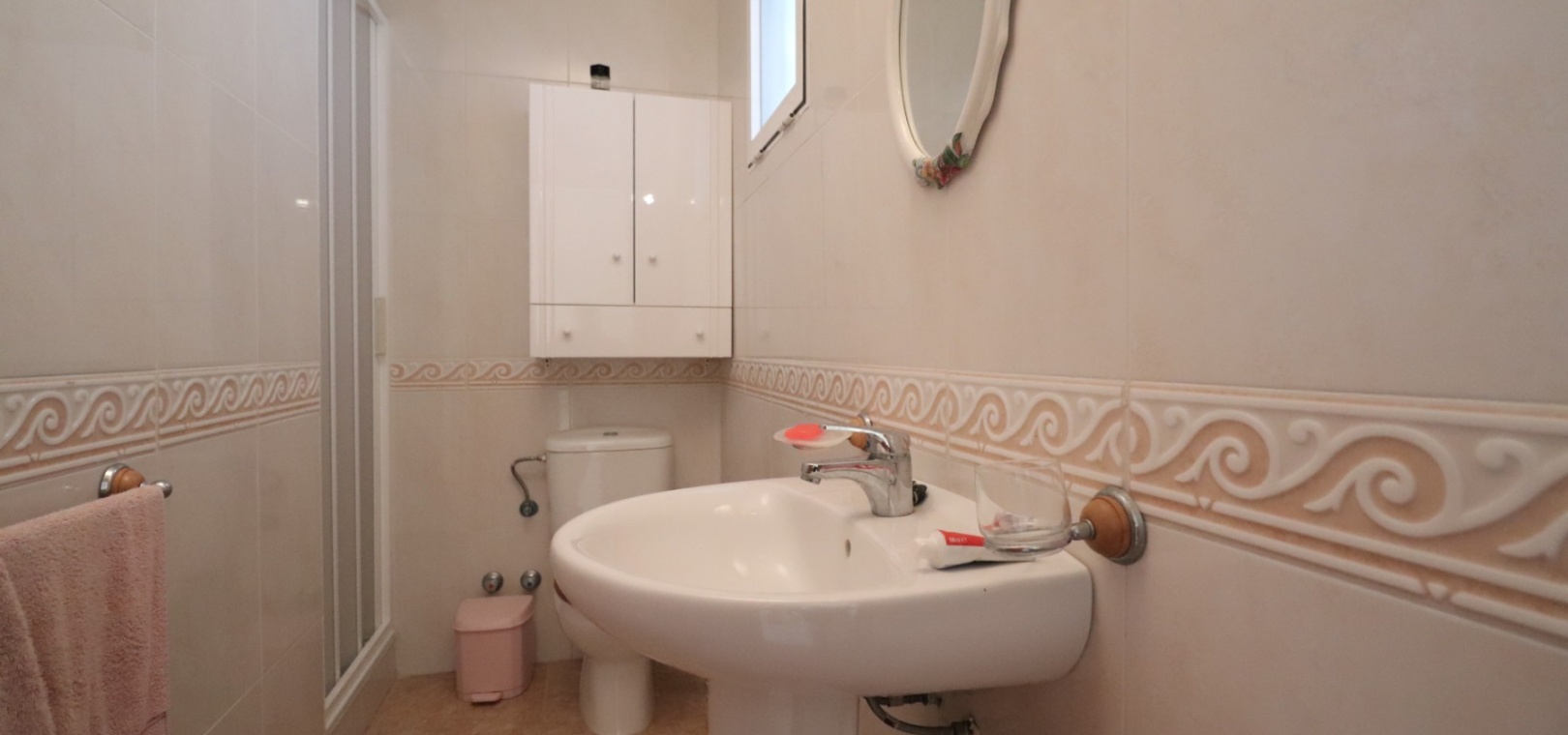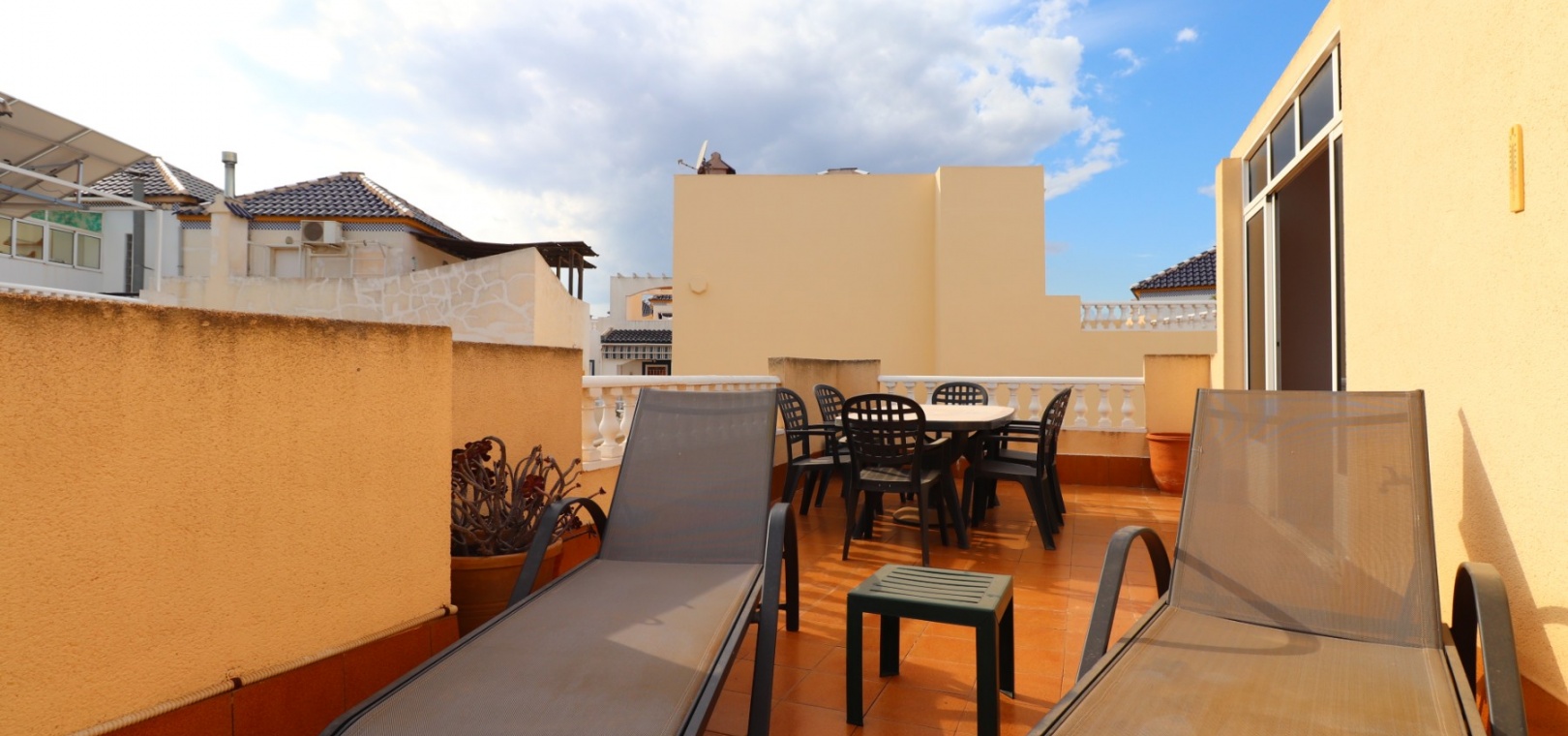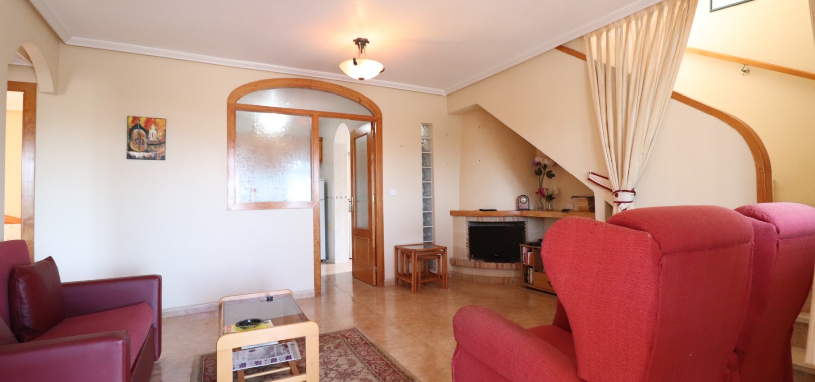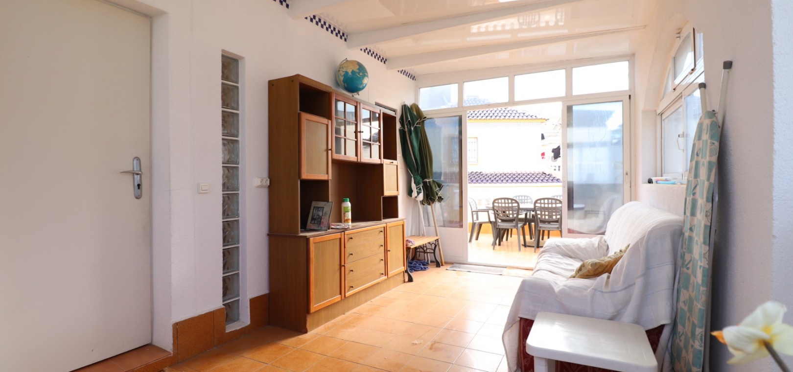 Cette villa individuelle de trois chambres, orientée à l'est, située dans un emplacement privilégié à Los Balcones, avec vue sur les bosquets, est située dans un quartier très recherché de la Costa Blanca Sud. Située à seulement quelques minutes en voiture de l'hôpital de Torrevieja et d'une sélection de bars et de restaurants, cette propriété est à moins de 10 minutes de Torrevieja et d'Orihuela Costa, avec leurs plages, leurs terrains de golf et leurs équipements dynamiques. La villa comprend trois chambres, dont deux sont idéalement situées au rez-de-chaussée, ainsi qu'une salle de bains familiale. La terrasse vitrée vous accueille dans le coin salon, qui comprend une charmante cheminée d'angle ouverte et des escaliers menant au premier étage. La cuisine équipée séparée se connecte à une buanderie pour plus de praticité. Le premier étage comprend une troisième chambre, une salle de douche et un accès à un solarium privé, dont la moitié est vitrée, offrant une utilisation polyvalente toute l'année. L'extérieur comprend un jardin carrelé et gravillonné nécessitant peu d'entretien, un parking hors route et suffisamment d'espace pour ajouter une piscine privée si vous le souhaitez. La climatisation est installée partout pour plus de confort, et les résidents bénéficient également d'un accès à une piscine commune. Ne manquez pas cette opportunité de réserver une villa dans un emplacement aussi privilégié - faites vite !