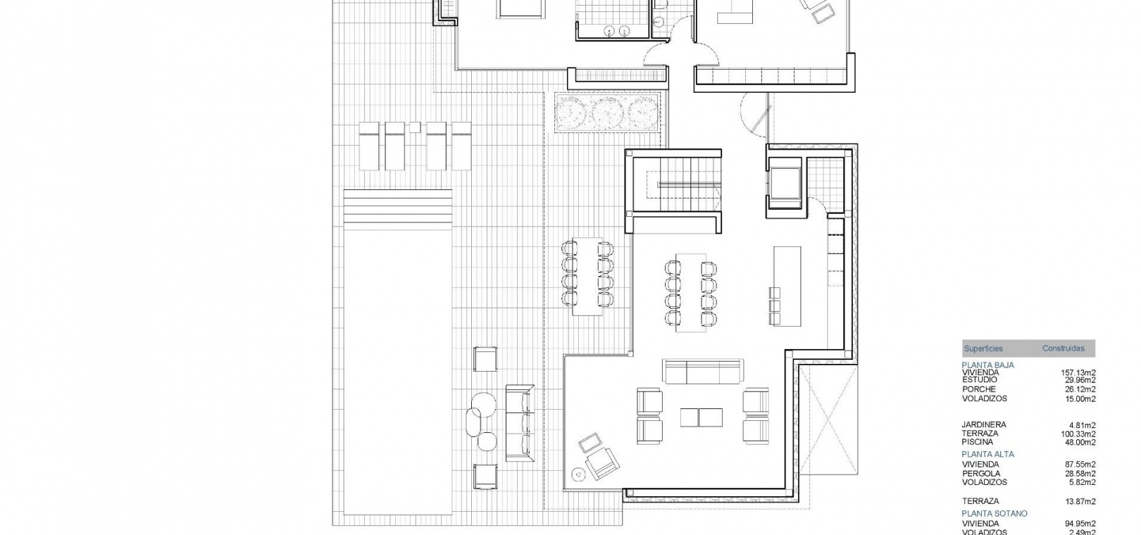Située dans la pittoresque ville côtière de Moraira, cette superbe villa neuve se trouve à seulement 3 km de l'étincelante mer Méditerranée. Dotée d'un design contemporain et fonctionnel, cette maison de deux étages plus un niveau souterrain offre un généreux espace de vie de 395 m². Conçue pour maximiser le confort et la lumière naturelle, la villa allie luxe et praticité dans les moindres détails.