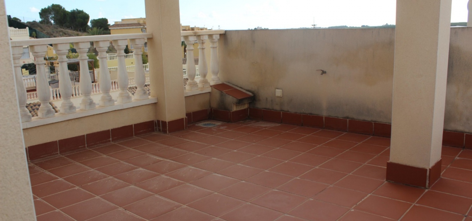 Au premier étage se trouvent 2 chambres doubles, 1 salle familiale, un balcon et des escaliers menant à un grand solarium privé sur le toit avec de belles vues sur la campagne environnante.