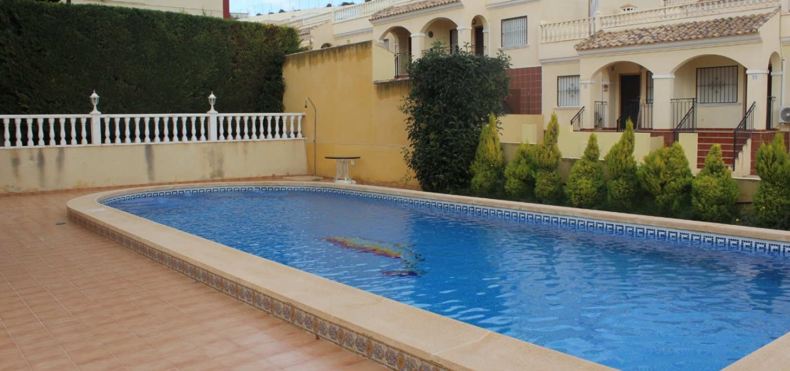 Une maison jumelée de 3 chambres et 2 salles de bains orientée plein sud avec un solarium privé sur le toit et une piscine privée située à Montemar, Algorfa, Costa Blanca.