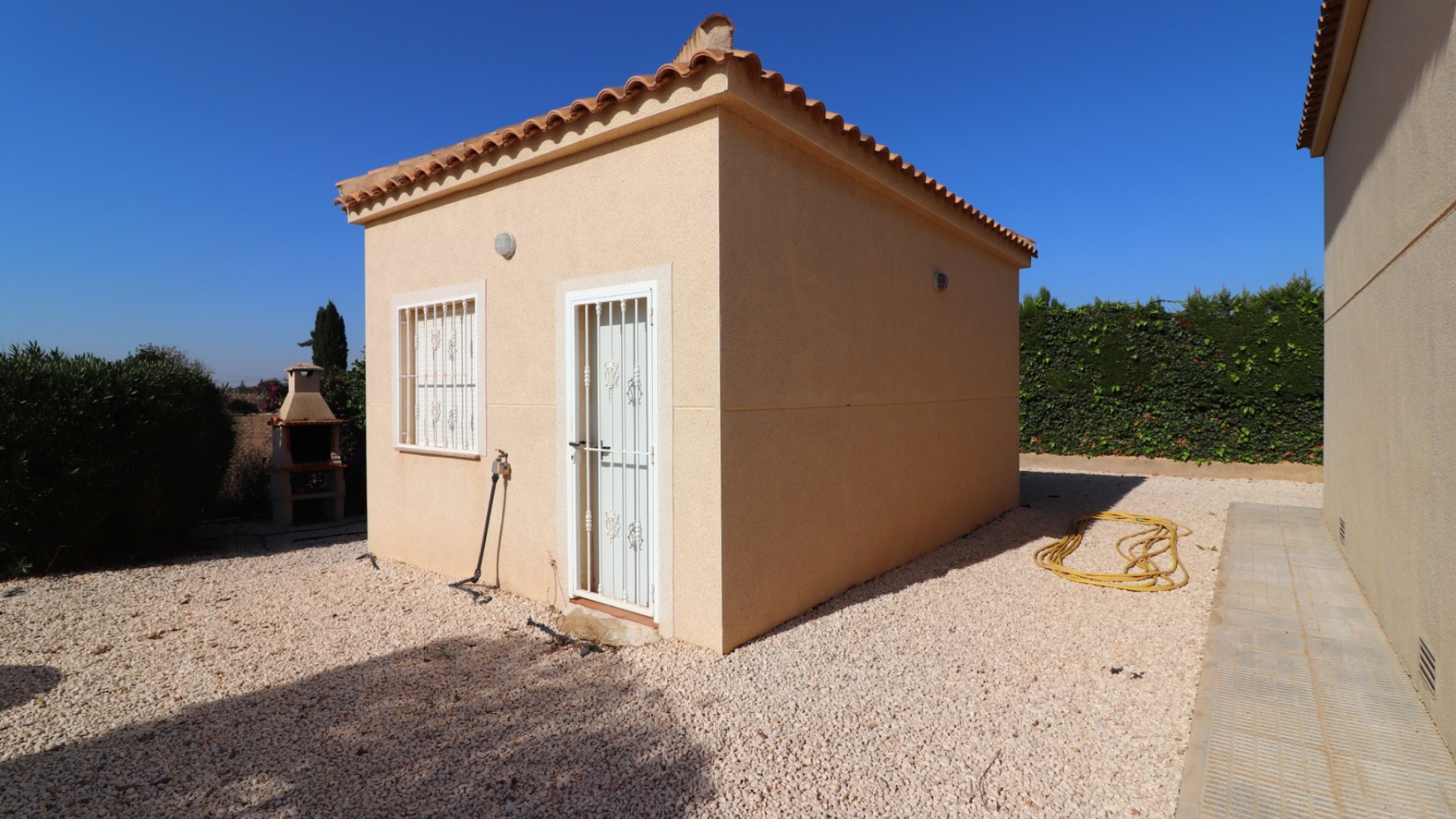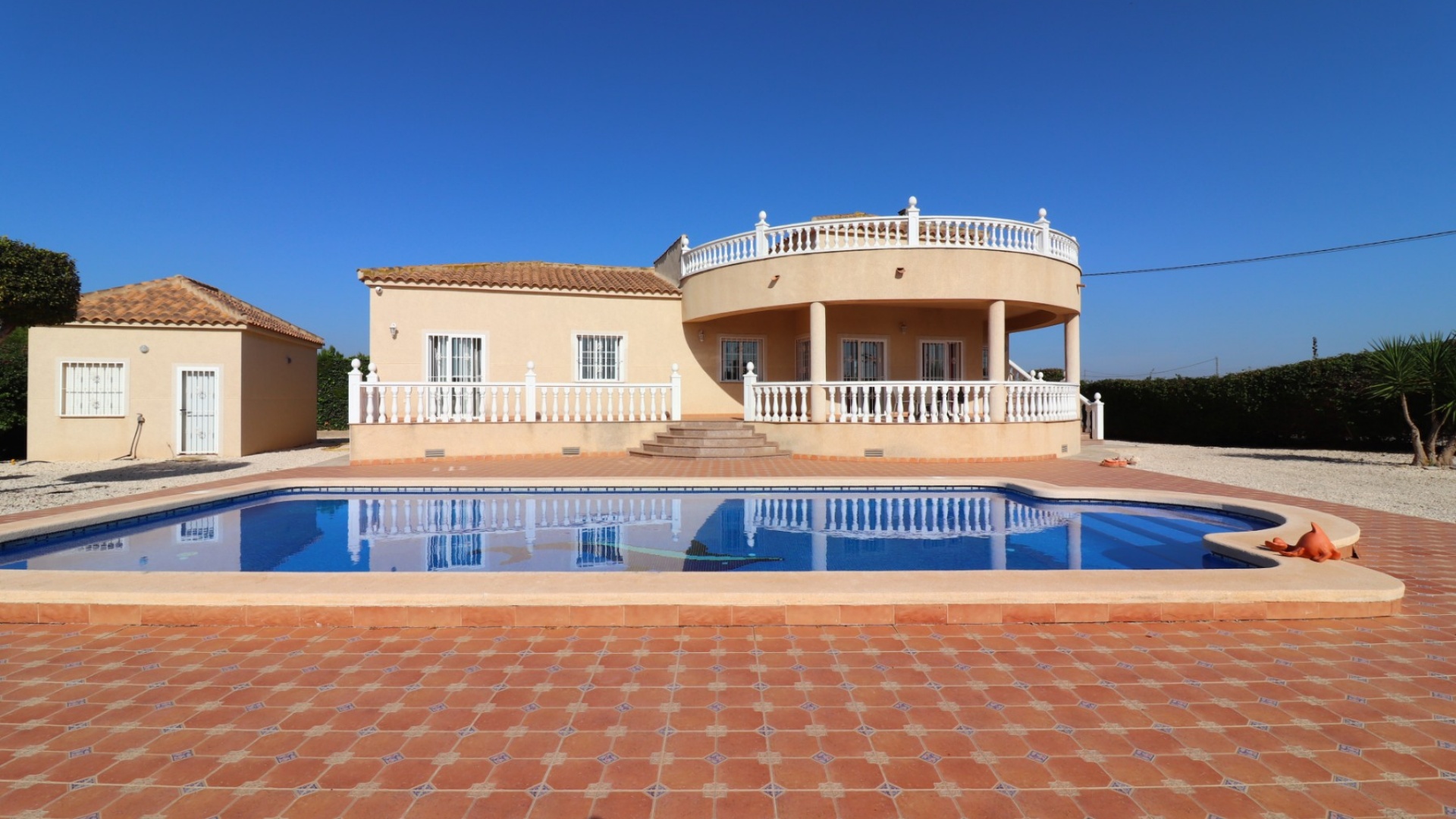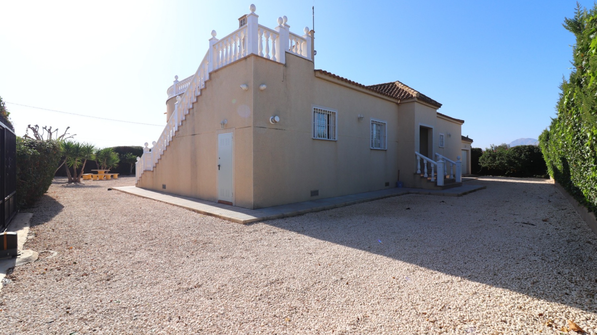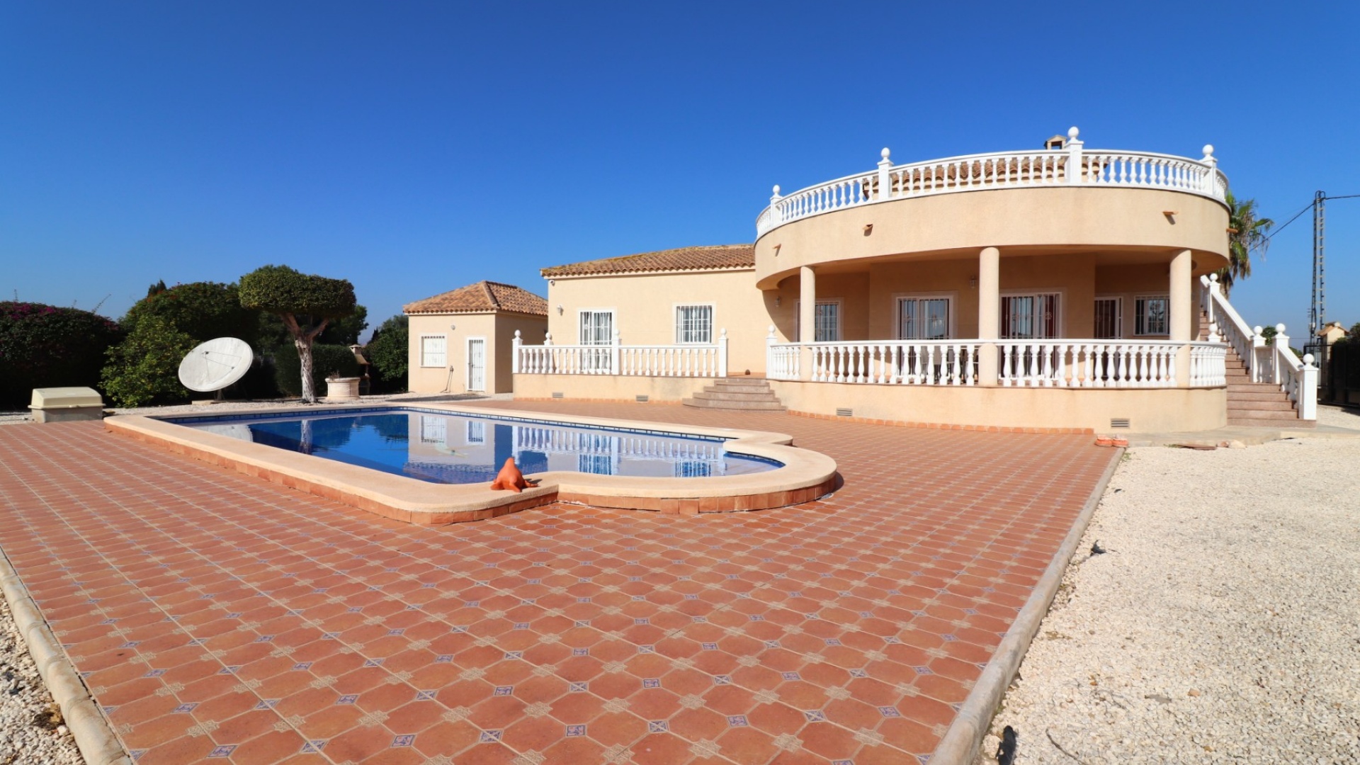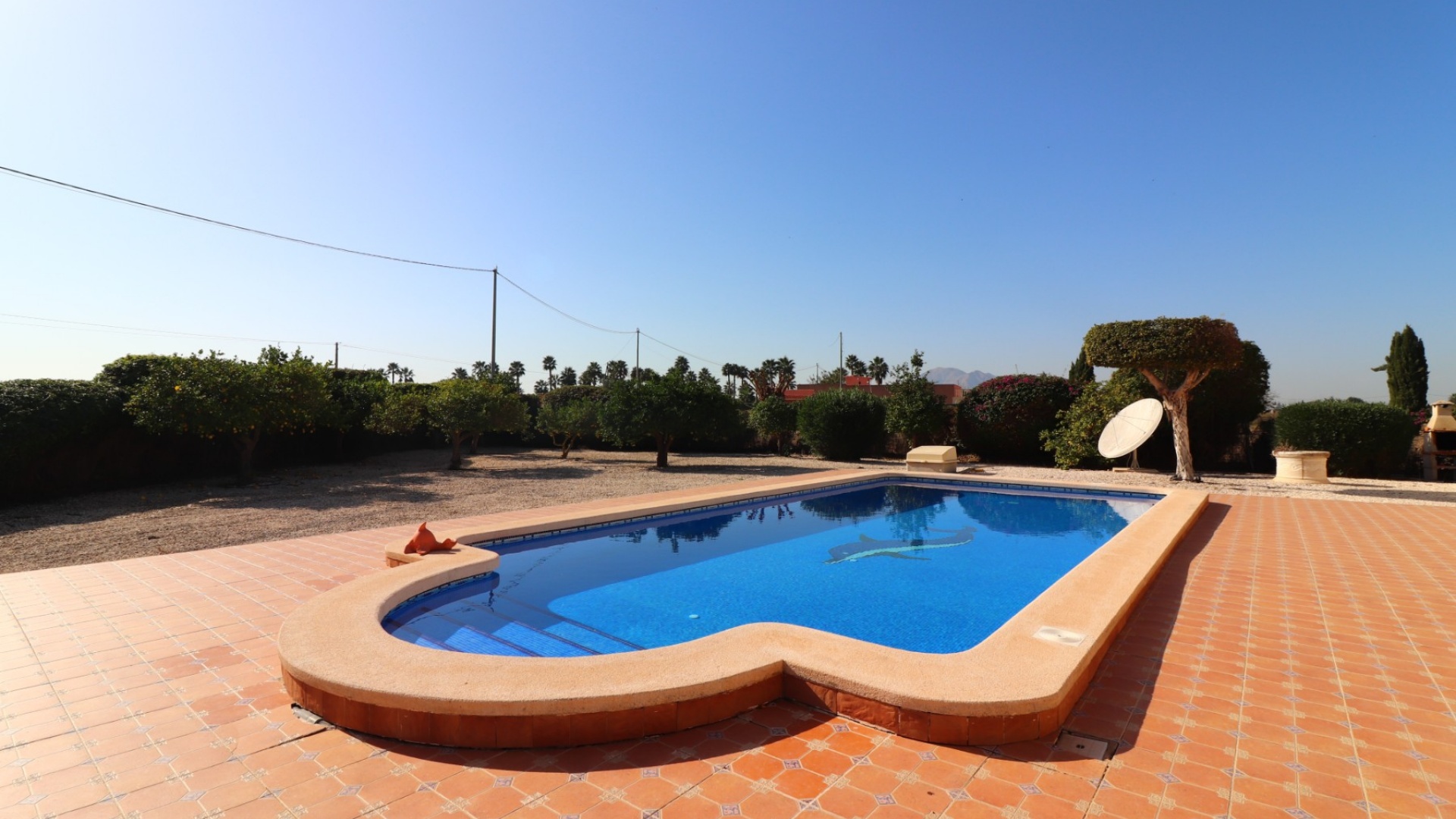 Cette villa de campagne indépendante de trois chambres, orientée plein sud, à Catral, est située dans un cadre tranquille entouré de campagne ouverte, mais à moins de 5 minutes en voiture du centre-ville, où vous trouverez une variété de cafés-bars, restaurants, magasins, école, supermarché... Le magnifique littoral sud de la Costa Blanca est à seulement 20 minutes, avec plusieurs terrains de golf à seulement 10-15 minutes en voiture. Située sur un généreux terrain de 1 666 m2, cette villa de 208 m2 est soigneusement aménagée sur un seul niveau. Le salon spacieux dispose d'un plafond voûté et d'une charmante cheminée à foyer ouvert, donnant sur un coin repas. La cuisine séparée équipée est de grande taille et est complétée par une buanderie. Il y a trois chambres doubles avec placards intégrés, dont une chambre principale avec une salle de bain attenante et un accès direct à la terrasse magnifiquement incurvée. Une salle de douche familiale complète l'intérieur, tandis que des escaliers extérieurs mènent à un solarium, où vous pourrez profiter de ces vues dégagées et paisibles. L'espace extérieur est parfait pour se divertir et se détendre, avec une piscine privée de 12 x 6 avec un pourtour carrelé, un jardin gravillonné avec barbecue, des arbres matures et des arbres fruitiers. Les caractéristiques supplémentaires comprennent la climatisation canalisée, un parking hors route et un garage séparé. Il s'agit d'une opportunité exceptionnelle de posséder un morceau de paradis de campagne sur la Costa Blanca Sud.