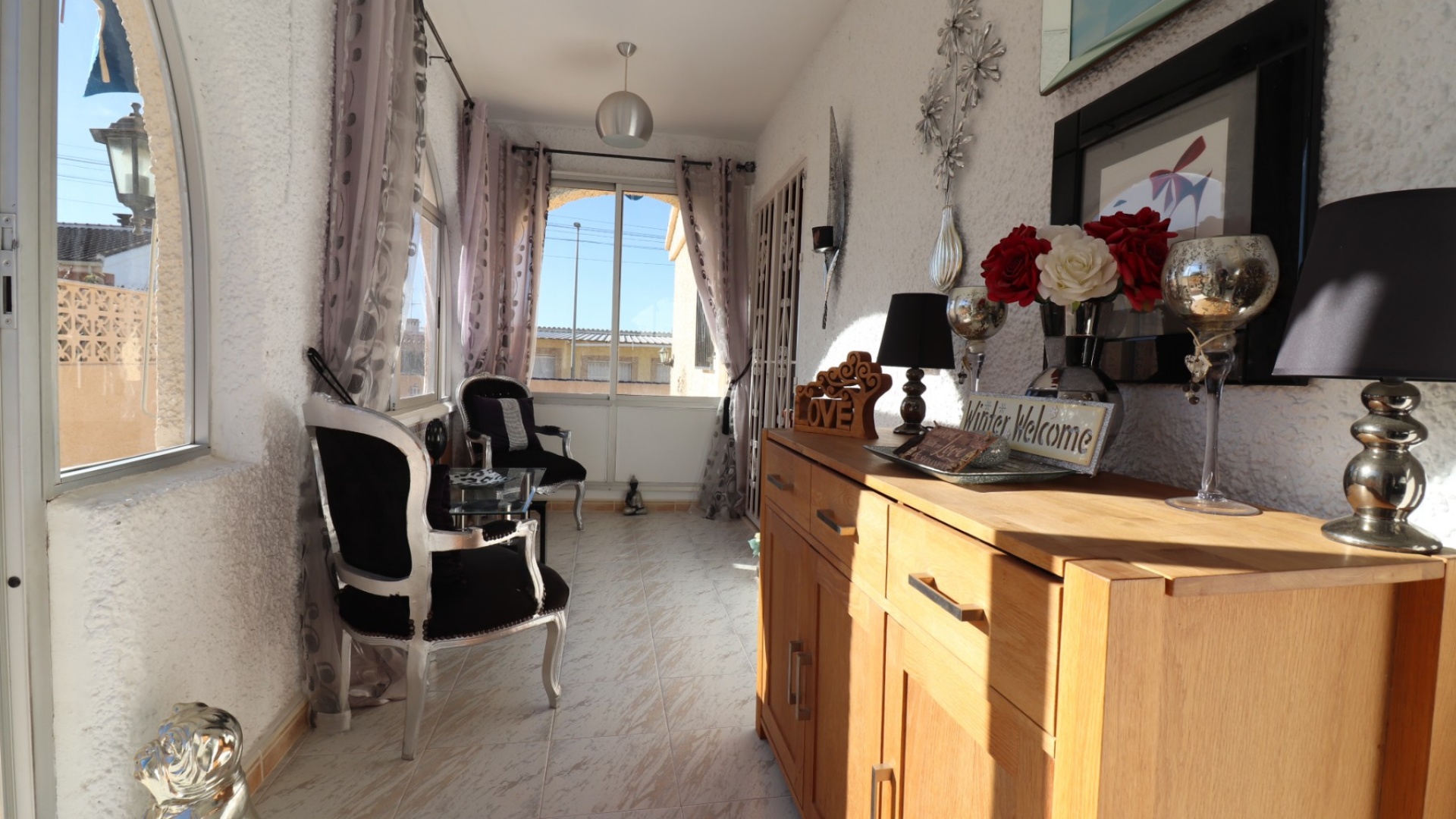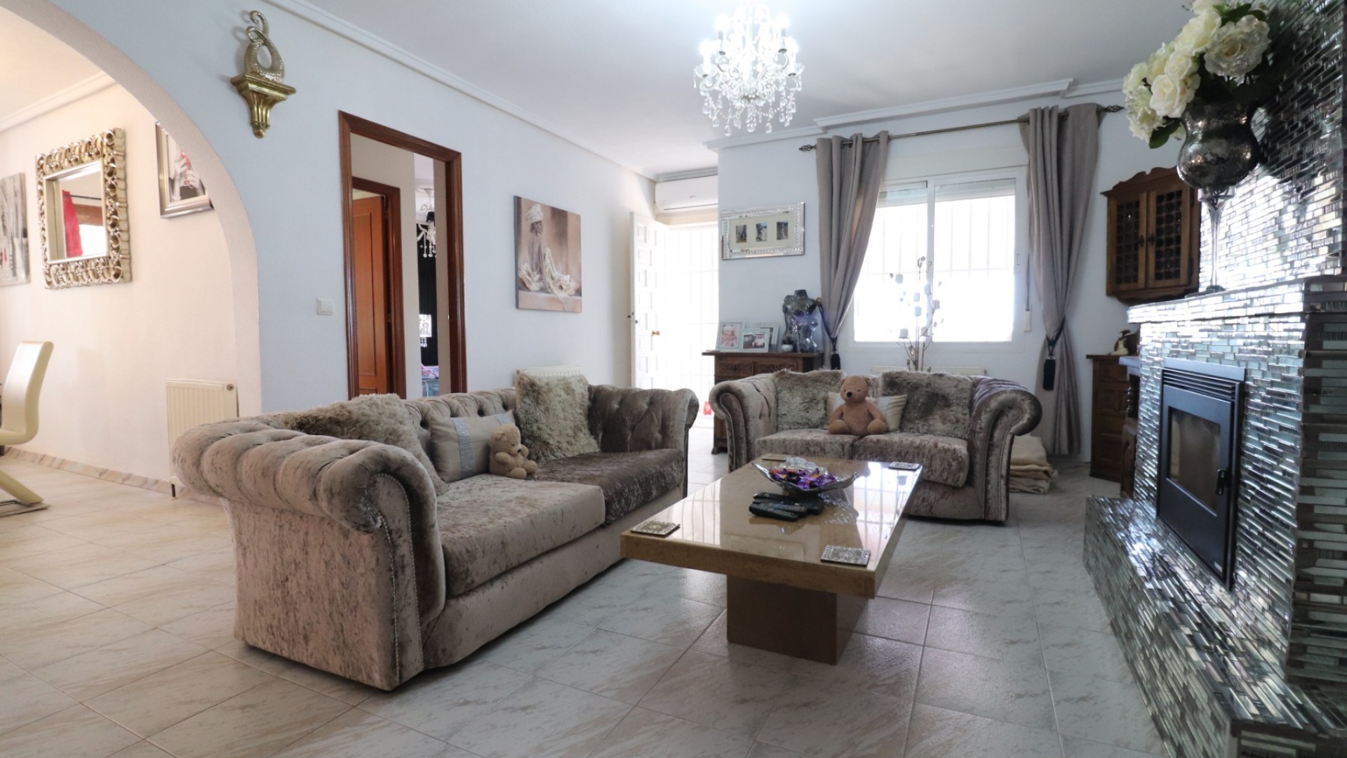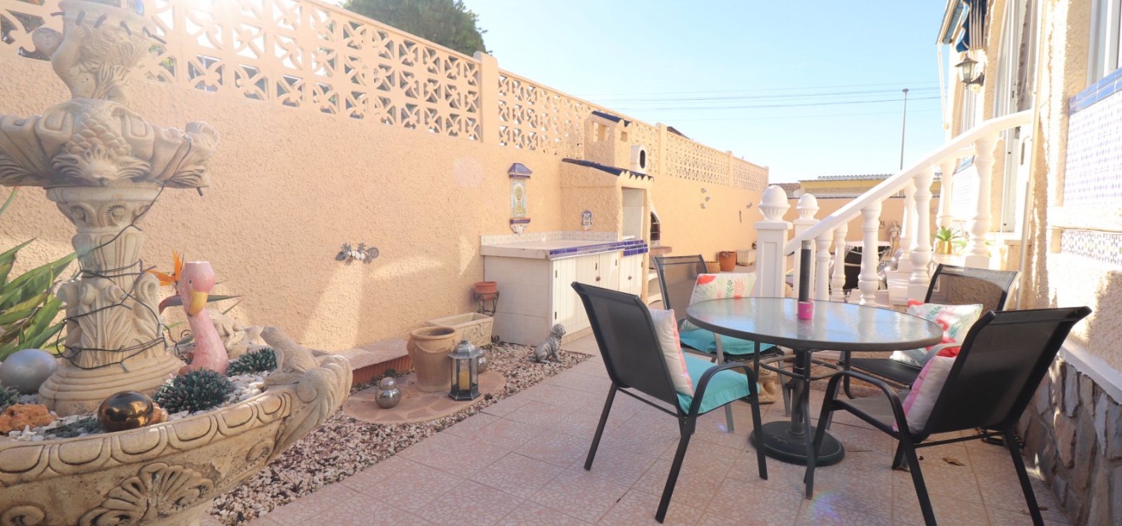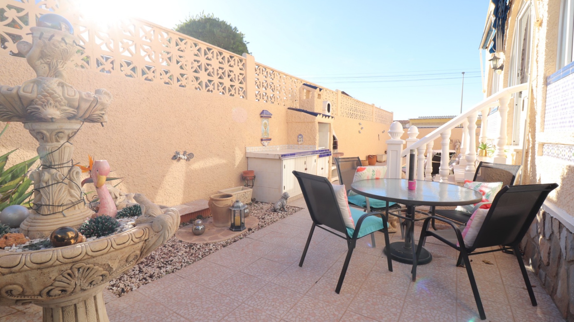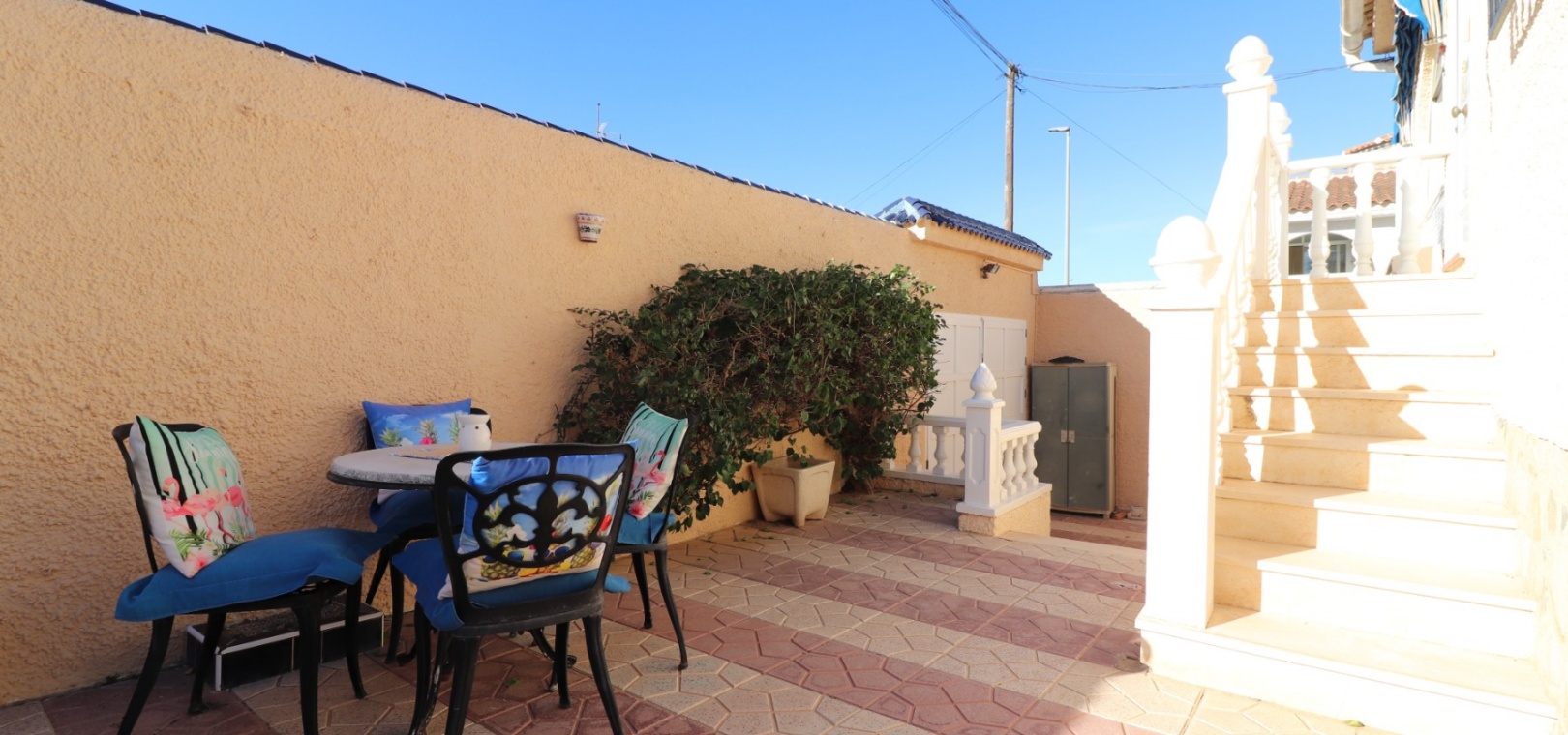 Cette villa individuelle de quatre chambres, exposée sud-ouest et avec sous-sol, est située à Benijofar dans un quartier recherché, à seulement cinq minutes à pied de nombreuses commodités, dont un terrain de sport, une école, un centre médical, une pharmacie et un centre commercial avec McDonald's, de nombreux restaurants et cafés. De plus, plusieurs grandes chaînes de supermarchés se trouvent à proximité. Le golf de La Marquesa est à seulement cinq minutes en voiture, et la magnifique côte sud de la Costa Blanca est à environ 12 minutes. Cette charmante villa dispose d'une terrasse couverte et vitrée donnant sur un salon chaleureux avec cheminée et climatisation. Une large arche relie le salon à la salle à manger, qui mène ensuite à une cuisine équipée. La propriété principale comprend deux chambres doubles avec placards intégrés, la chambre principale bénéficiant de la climatisation et d'une salle de bains privative. Une salle d'eau familiale est également disponible. Le sous-sol, accessible depuis l'extérieur, offre un espace supplémentaire avec deux chambres doubles (dont une avec salle de bain attenante), une autre salle d'eau familiale, une kitchenette, une buanderie et un espace de rangement, offrant une grande flexibilité pour les invités ou la famille élargie. L'extérieur comprend un jardin carrelé avec parking hors voirie, une piscine privée de 3 x 6, un barbecue, un espace de travail et des bordures plantées. C'est une opportunité fantastique pour une résidence principale ou une résidence secondaire sur la Costa Blanca Sud.