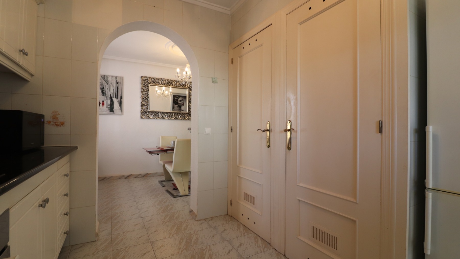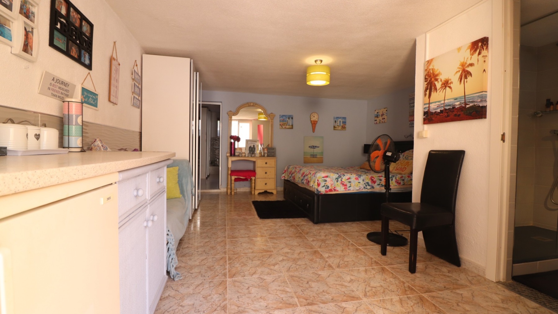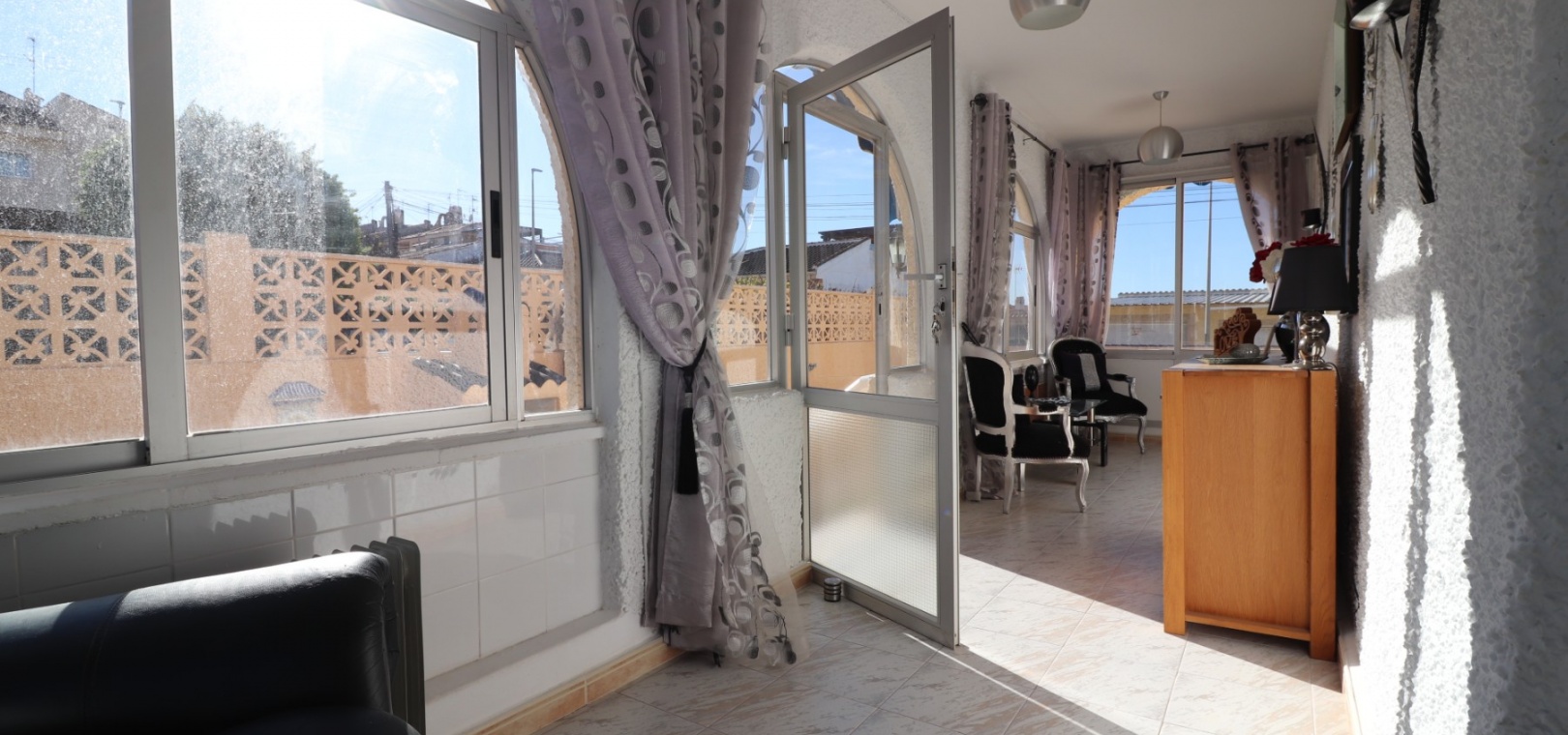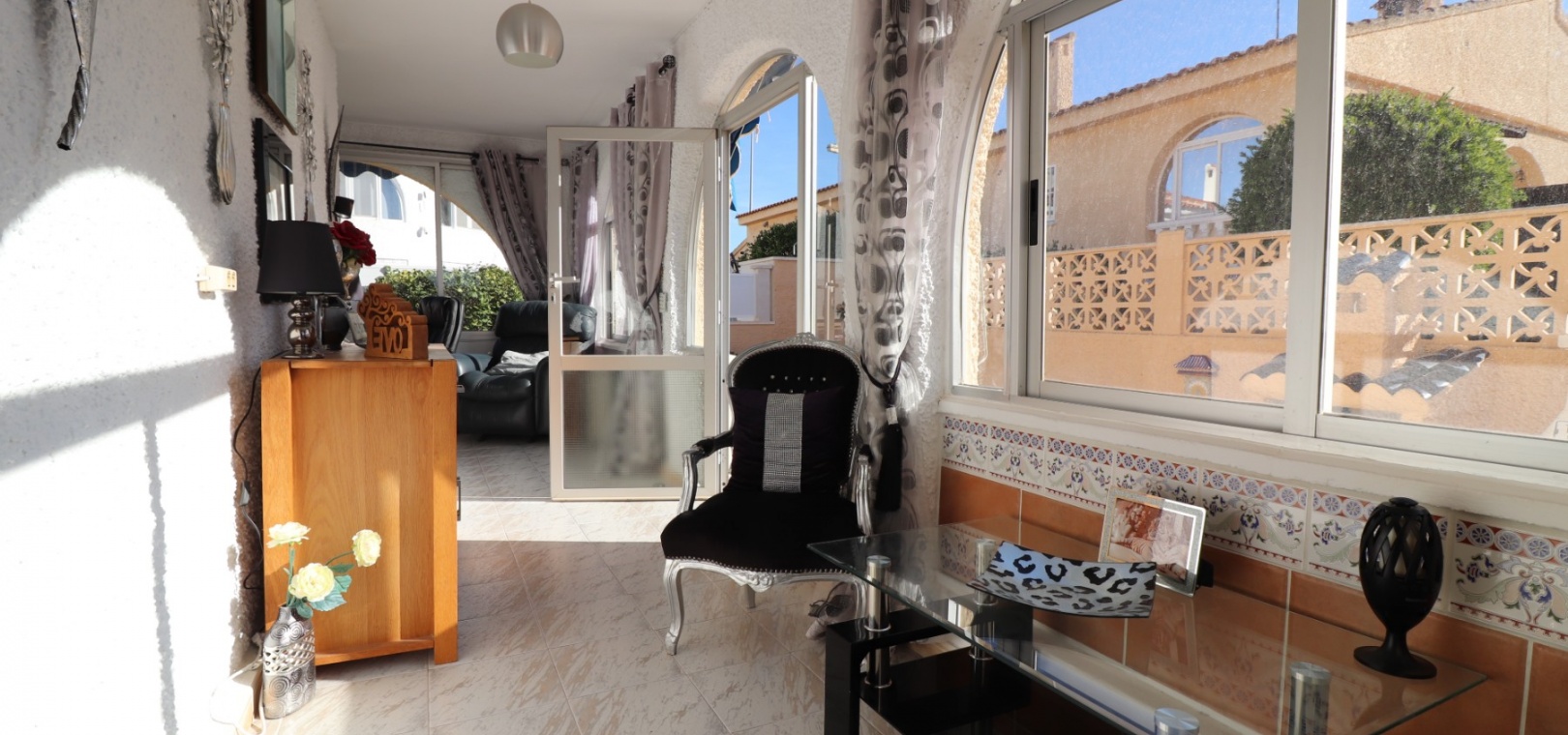 Cette villa individuelle de quatre chambres, exposée sud-ouest et avec sous-sol, est située à Benijofar dans un quartier recherché, à seulement cinq minutes à pied de nombreuses commodités, dont un terrain de sport, une école, un centre médical, une pharmacie et un centre commercial avec McDonald's, de nombreux restaurants et cafés. De plus, plusieurs grandes chaînes de supermarchés se trouvent à proximité. Le golf de La Marquesa est à seulement cinq minutes en voiture, et la magnifique côte sud de la Costa Blanca est à environ 12 minutes. Cette charmante villa dispose d'une terrasse couverte et vitrée donnant sur un salon chaleureux avec cheminée et climatisation. Une large arche relie le salon à la salle à manger, qui mène ensuite à une cuisine équipée. La propriété principale comprend deux chambres doubles avec placards intégrés, la chambre principale bénéficiant de la climatisation et d'une salle de bains privative. Une salle d'eau familiale est également disponible. Le sous-sol, accessible depuis l'extérieur, offre un espace supplémentaire avec deux chambres doubles (dont une avec salle de bain attenante), une autre salle d'eau familiale, une kitchenette, une buanderie et un espace de rangement, offrant une grande flexibilité pour les invités ou la famille élargie. L'extérieur comprend un jardin carrelé avec parking hors voirie, une piscine privée de 3 x 6, un barbecue, un espace de travail et des bordures plantées. C'est une opportunité fantastique pour une résidence principale ou une résidence secondaire sur la Costa Blanca Sud.