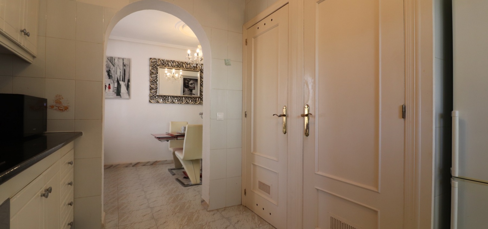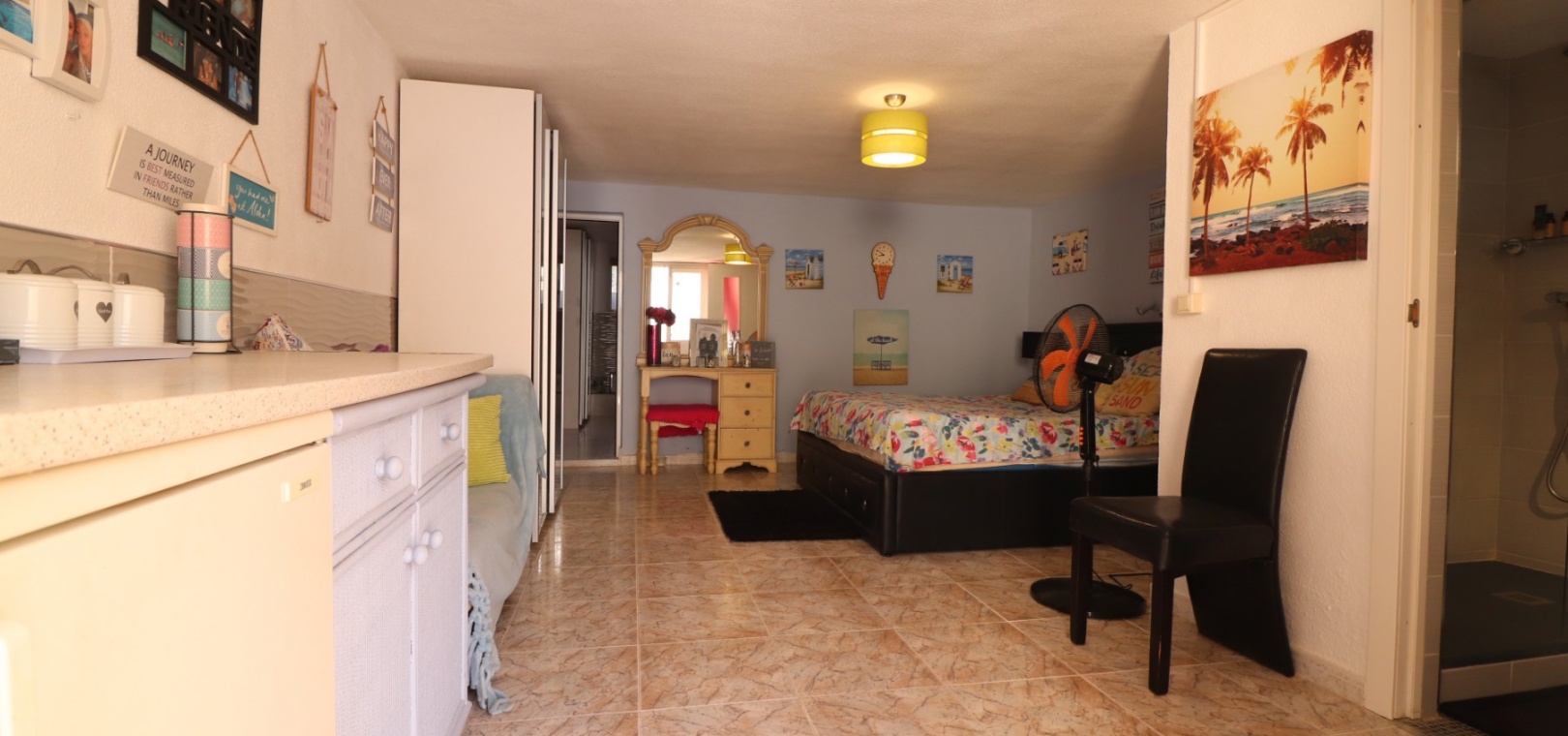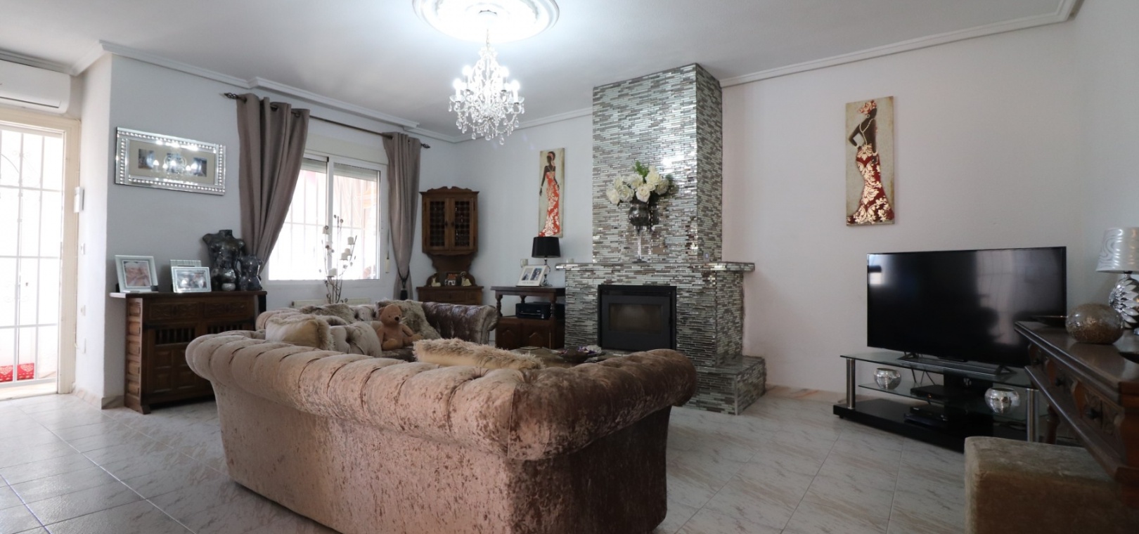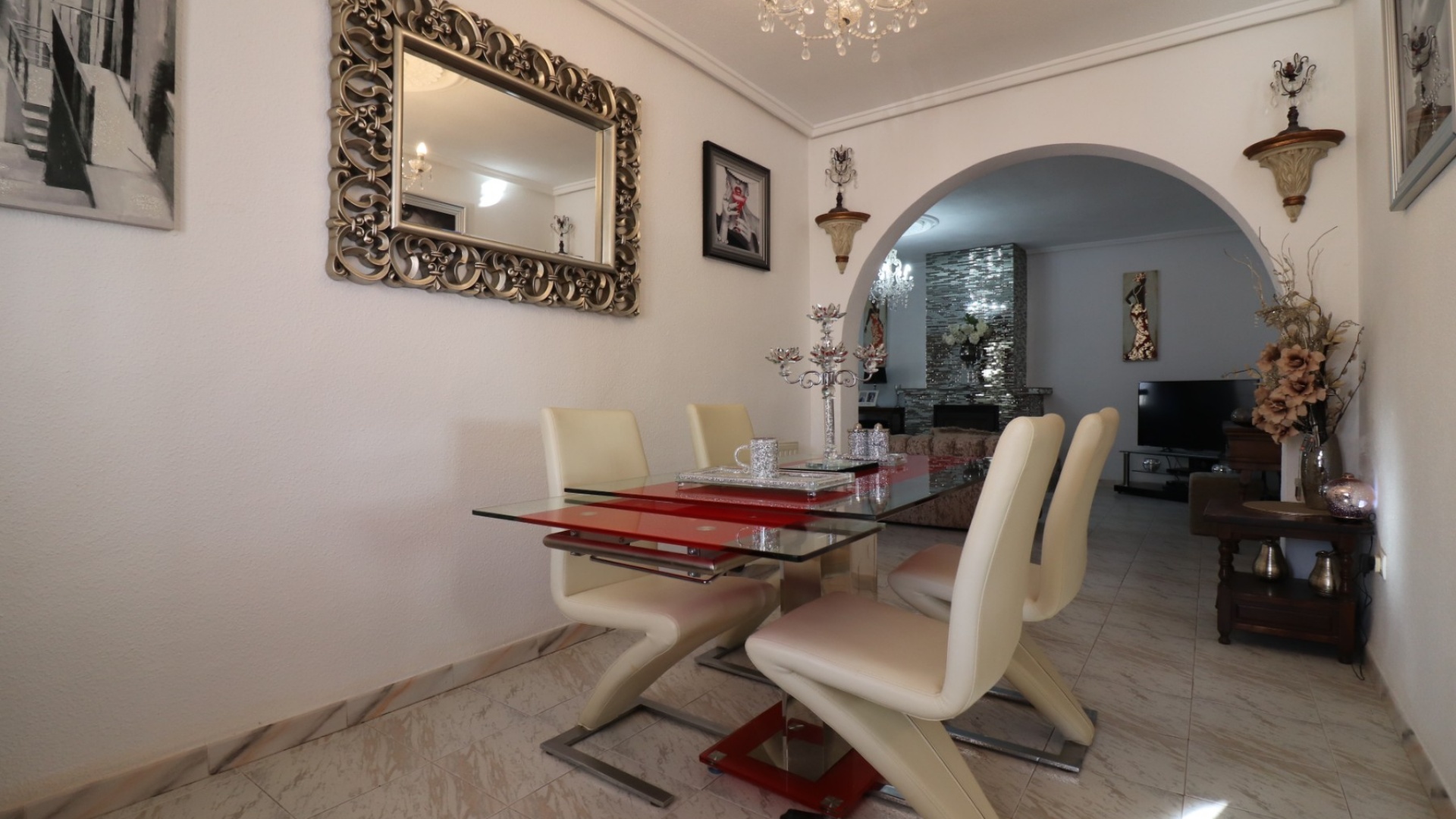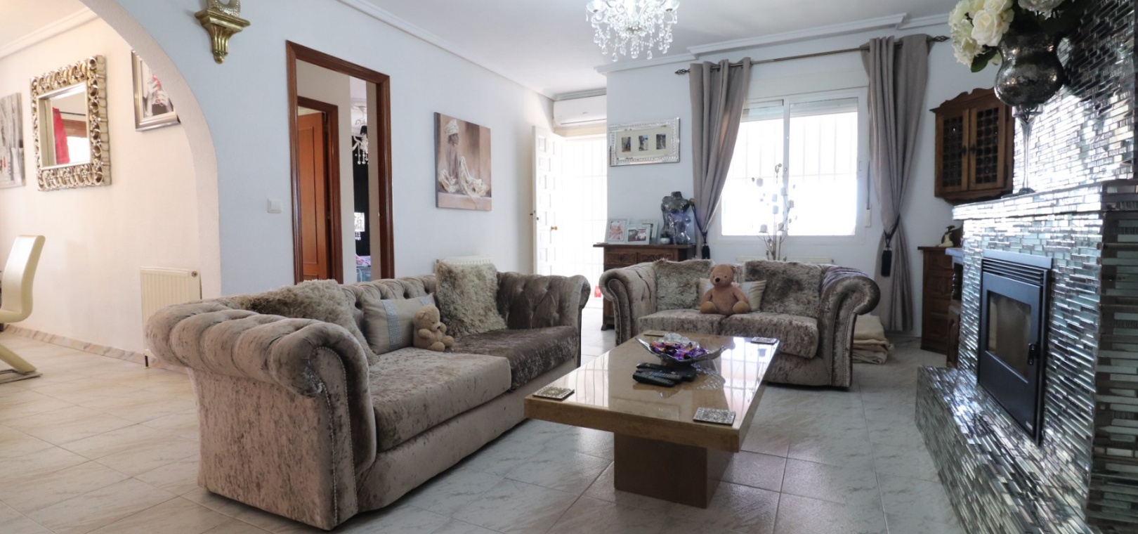 Cette villa individuelle de quatre chambres, exposée sud-ouest et avec sous-sol, est située à Benijofar dans un quartier recherché, à seulement cinq minutes à pied de nombreuses commodités, dont un terrain de sport, une école, un centre médical, une pharmacie et un centre commercial avec McDonald's, de nombreux restaurants et cafés. De plus, plusieurs grandes chaînes de supermarchés se trouvent à proximité. Le golf de La Marquesa est à seulement cinq minutes en voiture, et la magnifique côte sud de la Costa Blanca est à environ 12 minutes. Cette charmante villa dispose d'une terrasse couverte et vitrée donnant sur un salon chaleureux avec cheminée et climatisation. Une large arche relie le salon à la salle à manger, qui mène ensuite à une cuisine équipée. La propriété principale comprend deux chambres doubles avec placards intégrés, la chambre principale bénéficiant de la climatisation et d'une salle de bains privative. Une salle d'eau familiale est également disponible. Le sous-sol, accessible depuis l'extérieur, offre un espace supplémentaire avec deux chambres doubles (dont une avec salle de bain attenante), une autre salle d'eau familiale, une kitchenette, une buanderie et un espace de rangement, offrant une grande flexibilité pour les invités ou la famille élargie. L'extérieur comprend un jardin carrelé avec parking hors voirie, une piscine privée de 3 x 6, un barbecue, un espace de travail et des bordures plantées. C'est une opportunité fantastique pour une résidence principale ou une résidence secondaire sur la Costa Blanca Sud.