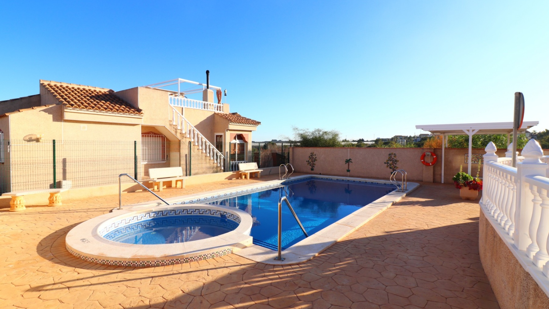 Cette villa individuelle de trois chambres orientée à l'ouest à Montemar est située à seulement quelques minutes en voiture du charmant village d'Algorfa et à quelques minutes en voiture ou à 10 minutes à pied des bars, restaurants et boutiques de La Finca Golf. Les belles plages le long de la côte sont à environ 20 minutes, tandis que les principales commodités se trouvent à Almoradí, à seulement 5 minutes en voiture, avec Quesada et Benijófar à 8 à 10 minutes. La villa dispose d'une terrasse d'entrée couverte, menant au salon avec une cheminée d'angle équipée d'un feu à gaz et d'un climatiseur. La cuisine séparée équipée donne accès à une buanderie pour plus de commodité. Il y a trois chambres doubles, toutes avec placards intégrés, la chambre principale avec climatisation et une salle de bain familiale qui comprend une cabine de douche séparée. Des escaliers extérieurs mènent à un solarium privé offrant une vue imprenable sur la campagne, parfait pour se détendre ou se divertir. Le jardin est un mélange de zones carrelées et gravillonnées, complétées par des arbustes et un arbre pour une touche de verdure. Le sous-sol, accessible de l'extérieur, offre un espace de stockage supplémentaire ou une utilisation potentielle. Les résidents bénéficient également d'un accès à une belle piscine commune, complétant cette fantastique opportunité de posséder une villa dans la très recherchée Costa Blanca Sud.