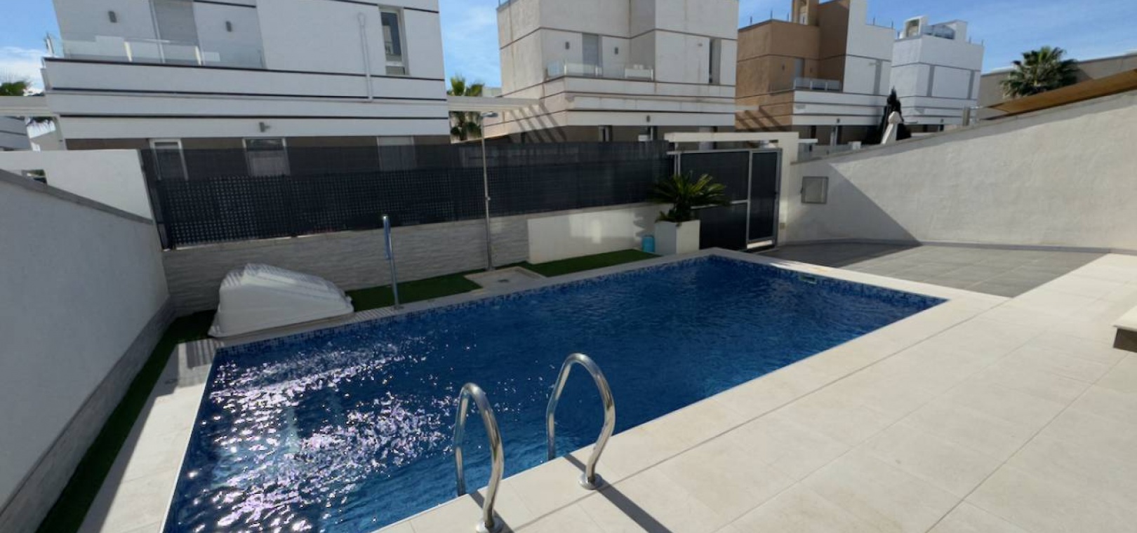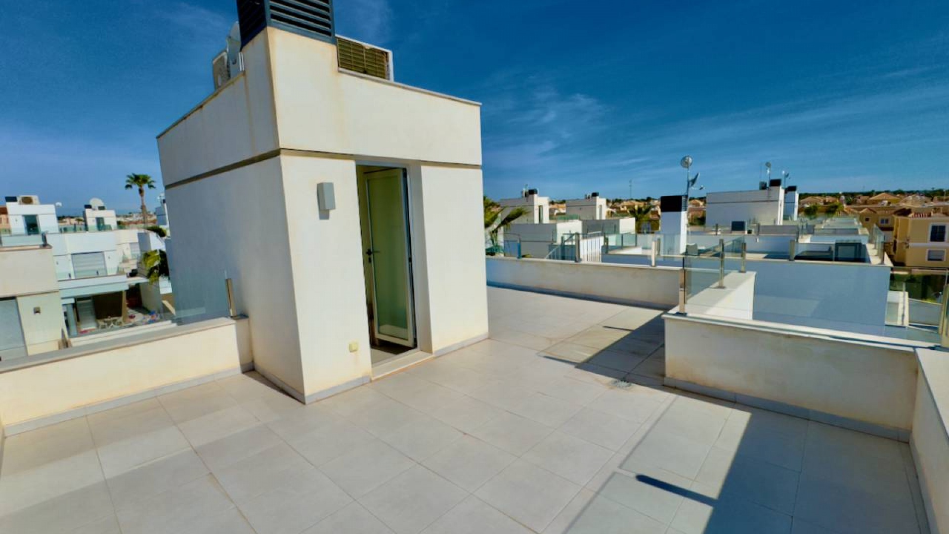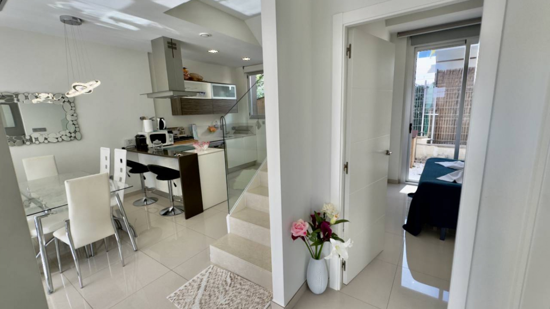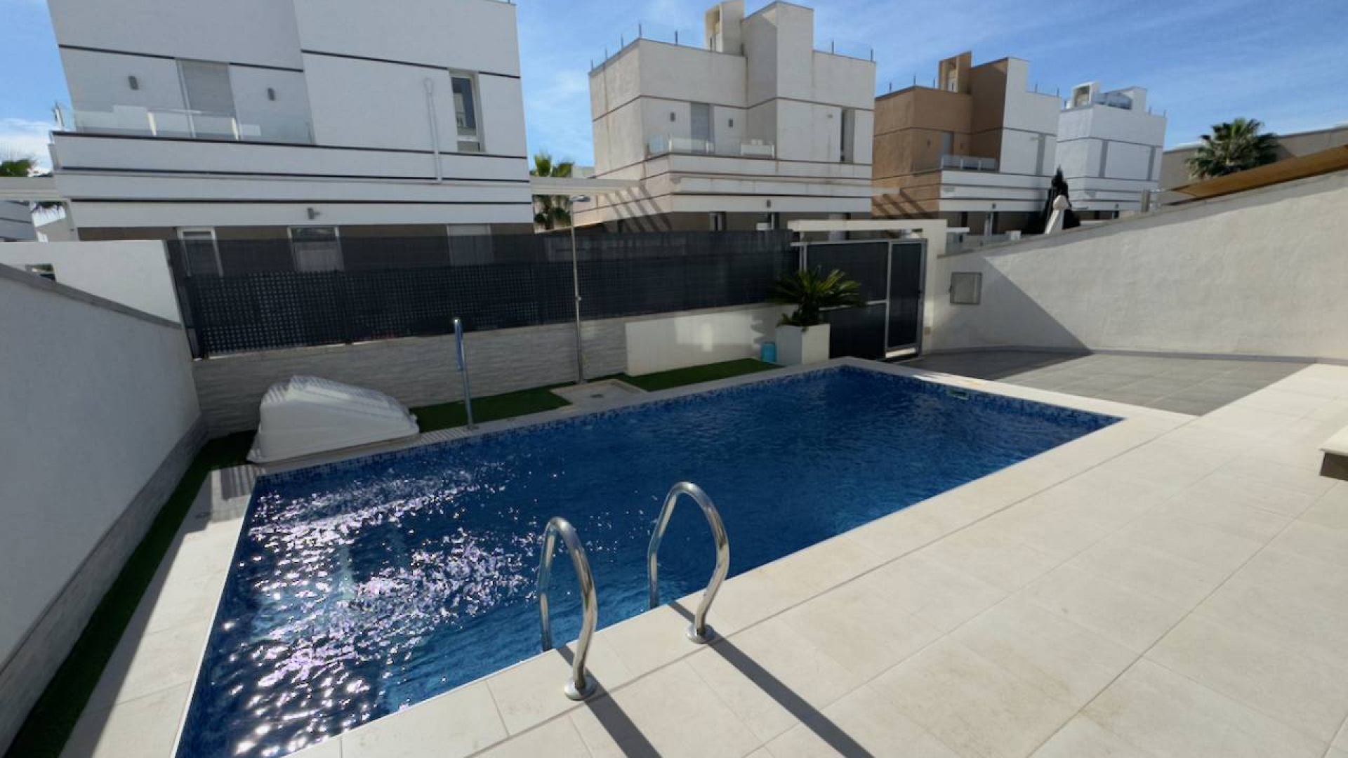 Cette superbe villa, construite en 2018, est un véritable joyau niché dans le charmant quartier de Doña Pepa, à deux pas du centre animé de Ciudad Quesada. Bénéficiant d'un design contemporain et d'une gamme de fonctionnalités luxueuses, cette propriété offre une expérience de vie inégalée. Répartie sur un terrain généreux de 200 m2, cette résidence comprend une superficie totale construite de 95 m2, méticuleusement planifiée pour optimiser l'espace et la fonctionnalité. Avec trois chambres spacieuses et trois salles de bains élégantes, dont des salles de bains privatives, le confort et la commodité sont parfaitement intégrés dans chaque recoin de cette maison. En entrant, vous êtes accueilli par un salon et une salle à manger ouverts et accueillants, parfaits pour recevoir des invités ou profiter de moments en famille agréables. La cuisine moderne, entièrement équipée d'appareils haut de gamme et dotée d'un aménagement de style américain, est un délice pour les amateurs de cuisine. L'orientation de la villa au sud assure une lumière naturelle abondante tout au long de la journée, créant une ambiance chaleureuse et accueillante. Les stores électriques offrent intimité et ombre sur simple pression d'un bouton, tandis que le chauffage au sol et la climatisation offrent un confort toute l'année quelle que soit la saison. En sortant, une piscine privée vous invite à vous prélasser au soleil méditerranéen ou à vous rafraîchir à votre guise. Le jardin paysager offre des vues sereines et une retraite tranquille loin de l'agitation de la vie quotidienne. Les équipements supplémentaires comprennent un parking hors route, avec de la place pour un véhicule, et un solarium, parfait pour profiter de la vue panoramique sur les environs. Avec la plage à seulement 10 minutes en voiture et les commodités essentielles à 5 minutes, la commodité est à portée de main. Les amateurs de golf apprécieront également la proximité de parcours de classe mondiale, à seulement 10 minutes en voiture de la propriété. Impeccablement entretenue et en excellent état, cette villa offre une solution clé en main pour les acheteurs exigeants à la recherche de la quintessence de la vie de luxe. Que ce soit comme résidence à temps plein ou comme lieu de vacances, cette propriété promet un style de vie d'un confort et d'une sophistication inégalés. La négociation des meubles, des électroménagers et un EPC en cours renforcent encore l'attrait de cette maison remarquable.