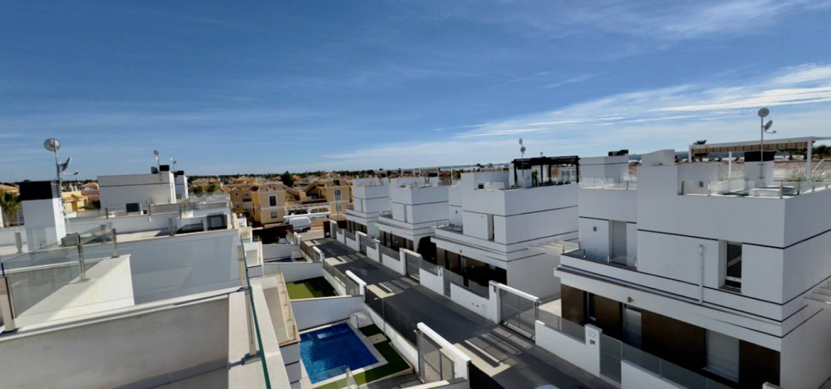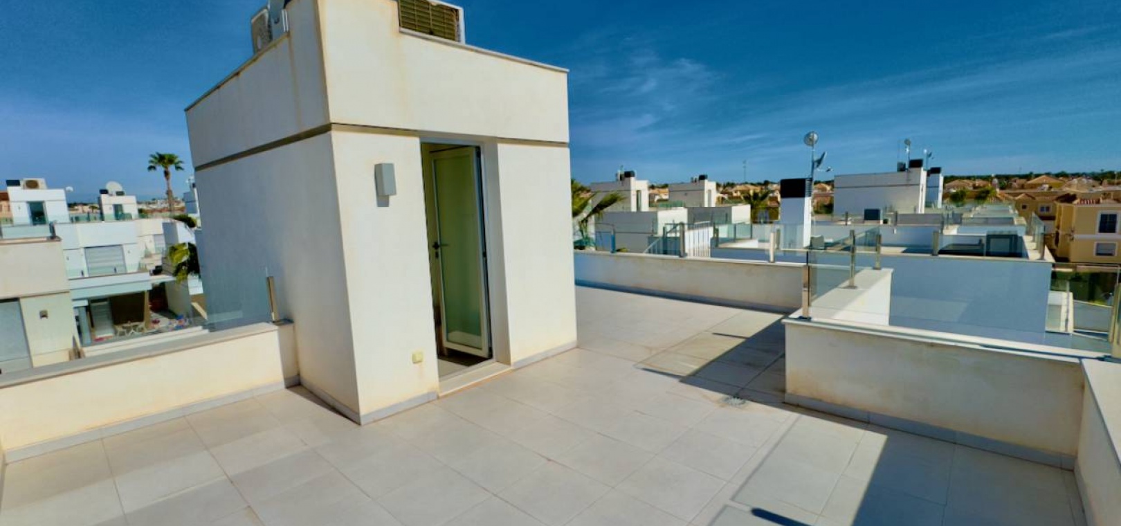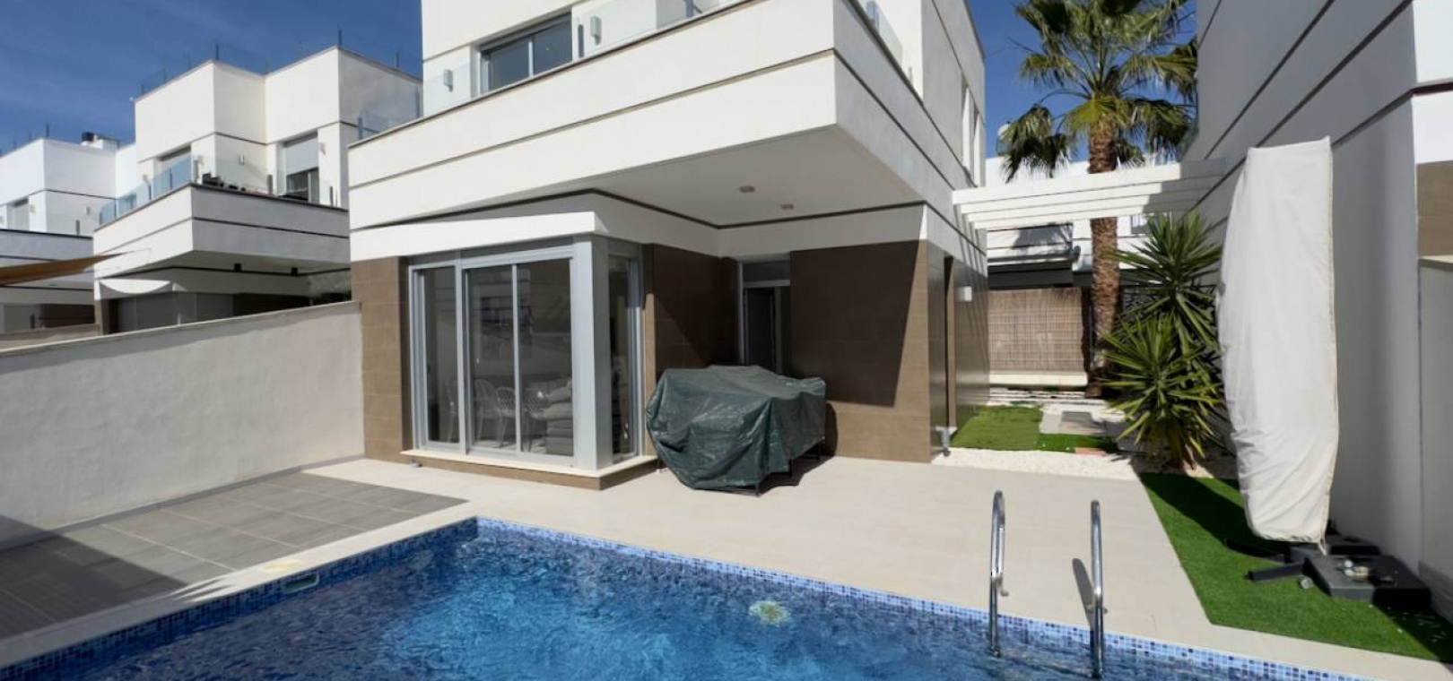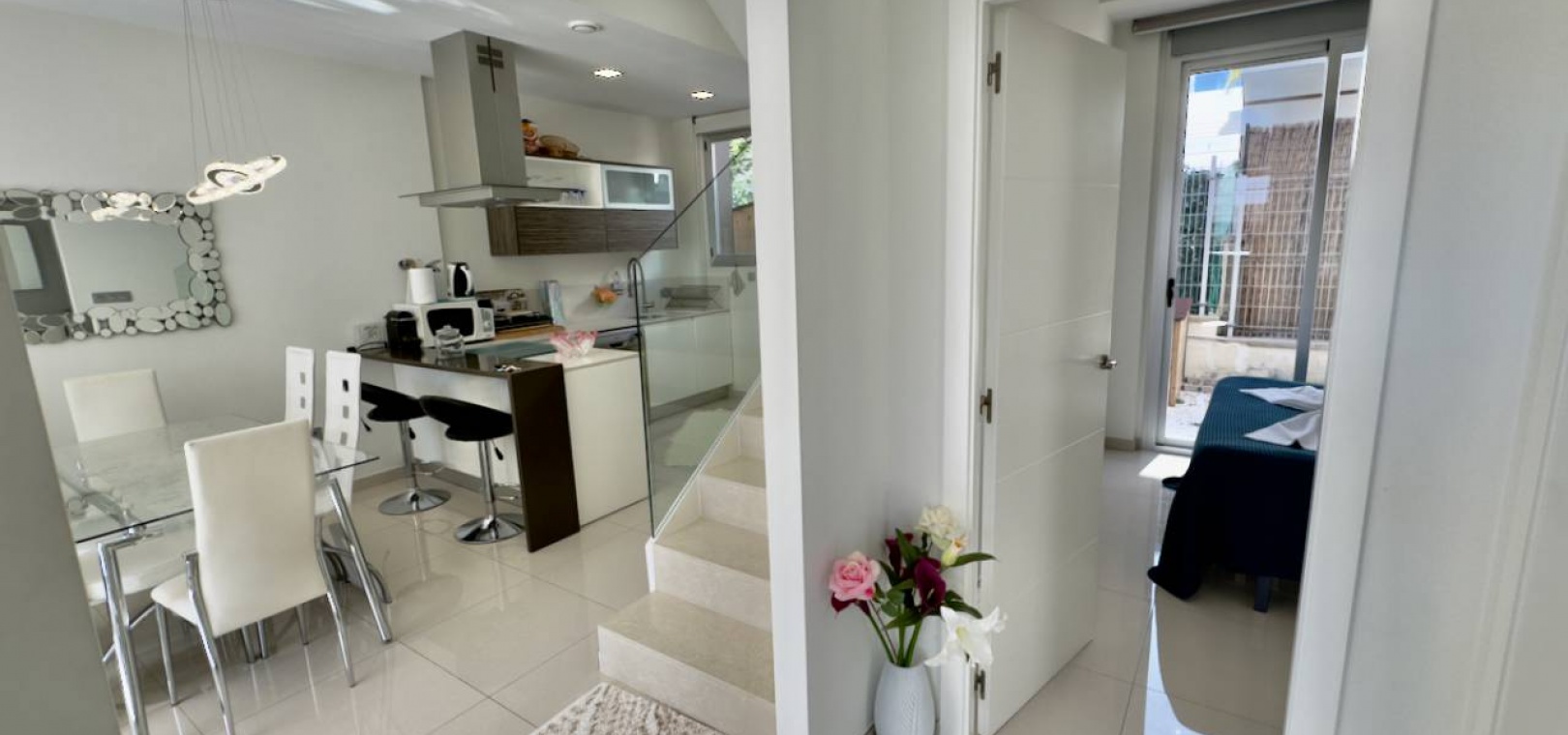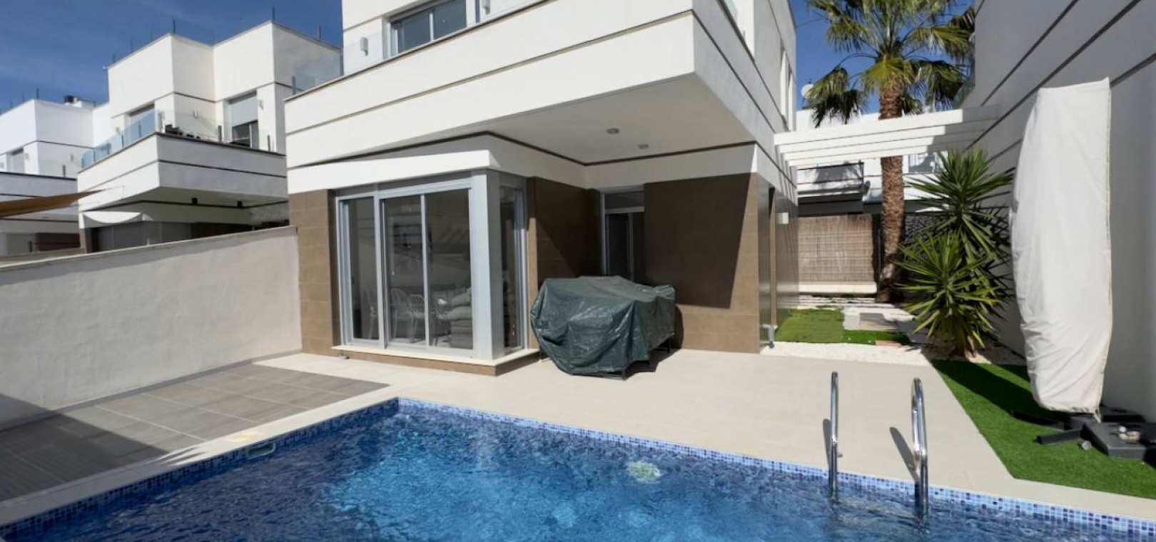 Cette superbe villa, construite en 2018, est un véritable joyau niché dans le charmant quartier de Doña Pepa, à deux pas du centre animé de Ciudad Quesada. Bénéficiant d'un design contemporain et d'une gamme de fonctionnalités luxueuses, cette propriété offre une expérience de vie inégalée. Répartie sur un terrain généreux de 200 m2, cette résidence comprend une superficie totale construite de 95 m2, méticuleusement planifiée pour optimiser l'espace et la fonctionnalité. Avec trois chambres spacieuses et trois salles de bains élégantes, dont des salles de bains privatives, le confort et la commodité sont parfaitement intégrés dans chaque recoin de cette maison. En entrant, vous êtes accueilli par un salon et une salle à manger ouverts et accueillants, parfaits pour recevoir des invités ou profiter de moments en famille agréables. La cuisine moderne, entièrement équipée d'appareils haut de gamme et dotée d'un aménagement de style américain, est un délice pour les amateurs de cuisine. L'orientation de la villa au sud assure une lumière naturelle abondante tout au long de la journée, créant une ambiance chaleureuse et accueillante. Les stores électriques offrent intimité et ombre sur simple pression d'un bouton, tandis que le chauffage au sol et la climatisation offrent un confort toute l'année quelle que soit la saison. En sortant, une piscine privée vous invite à vous prélasser au soleil méditerranéen ou à vous rafraîchir à votre guise. Le jardin paysager offre des vues sereines et une retraite tranquille loin de l'agitation de la vie quotidienne. Les équipements supplémentaires comprennent un parking hors route, avec de la place pour un véhicule, et un solarium, parfait pour profiter de la vue panoramique sur les environs. Avec la plage à seulement 10 minutes en voiture et les commodités essentielles à 5 minutes, la commodité est à portée de main. Les amateurs de golf apprécieront également la proximité de parcours de classe mondiale, à seulement 10 minutes en voiture de la propriété. Impeccablement entretenue et en excellent état, cette villa offre une solution clé en main pour les acheteurs exigeants à la recherche de la quintessence de la vie de luxe. Que ce soit comme résidence à temps plein ou comme lieu de vacances, cette propriété promet un style de vie d'un confort et d'une sophistication inégalés. La négociation des meubles, des électroménagers et un EPC en cours renforcent encore l'attrait de cette maison remarquable.