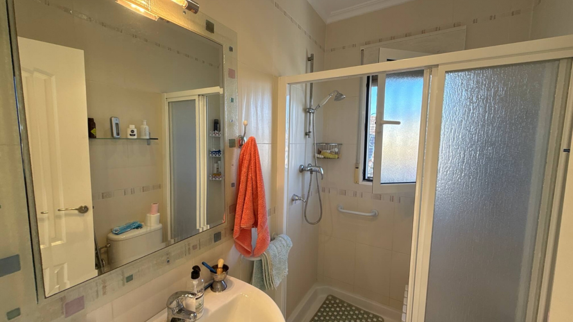 Au rez-de-chaussée il y a un grand salon/salle à manger avec climatisation chaude et froide, une cuisine séparée, une buanderie, 1 x chambre double avec placards et 1 x salle de douche.