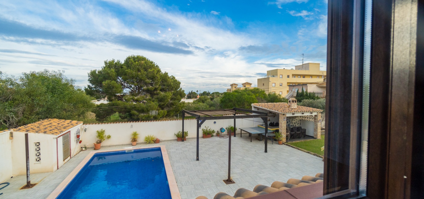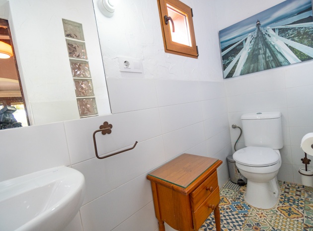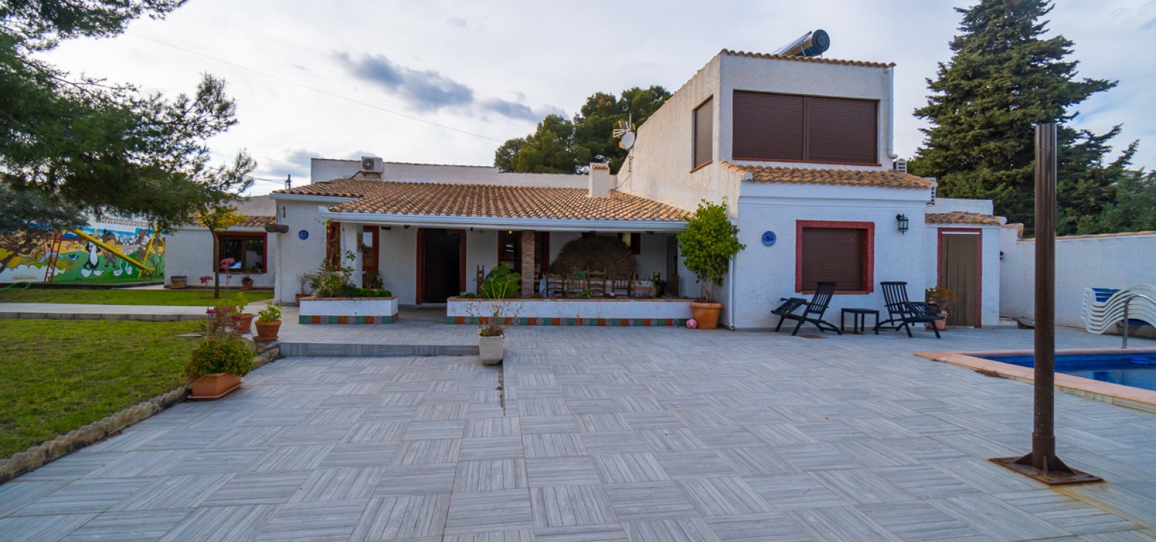 Villa individuelle exceptionnelle à vendre située dans l'un des quartiers les plus tranquilles et verdoyants de Lomas de Cabo Roig. La grande maison familiale offre 9 chambres exceptionnelles, une chambre avec un coin salon de style loft en mezzanine et toutes les chambres offrant toutes une taille et un espace exceptionnels, 7 salles de bains, un salon avec cheminée, une salle à manger spacieuse et une cuisine ouverte. Située sur un terrain privé d'un peu plus de 1000 m2 avec une piscine d'eau salée chauffée, une douche extérieure et des toilettes, un barbecue / espace pique-nique et une cuisine d'été, une aire de jeux pour enfants, un espace de rangement, un grand parking sur place pour plusieurs véhicules et des jardins et une terrasse à faible entretien. Vendue entièrement meublée avec de nombreux extras, dont la climatisation partout, des panneaux solaires pour l'eau chaude, plus 2 radiateurs électriques au cas où ils seraient nécessaires. La villa est construite dans un style rustique traditionnel en harmonie avec la région, avec des poutres d'origine, de hauts plafonds et une décoration unique. La villa offre un excellent potentiel pour une grande maison familiale ou comme investissement locatif en raison de sa licence touristique préexistante. Veuillez contacter Inmo Investments pour plus d'informations ou pour des visites.