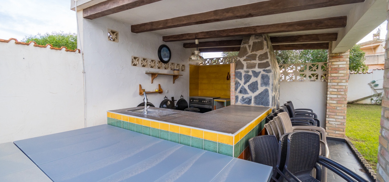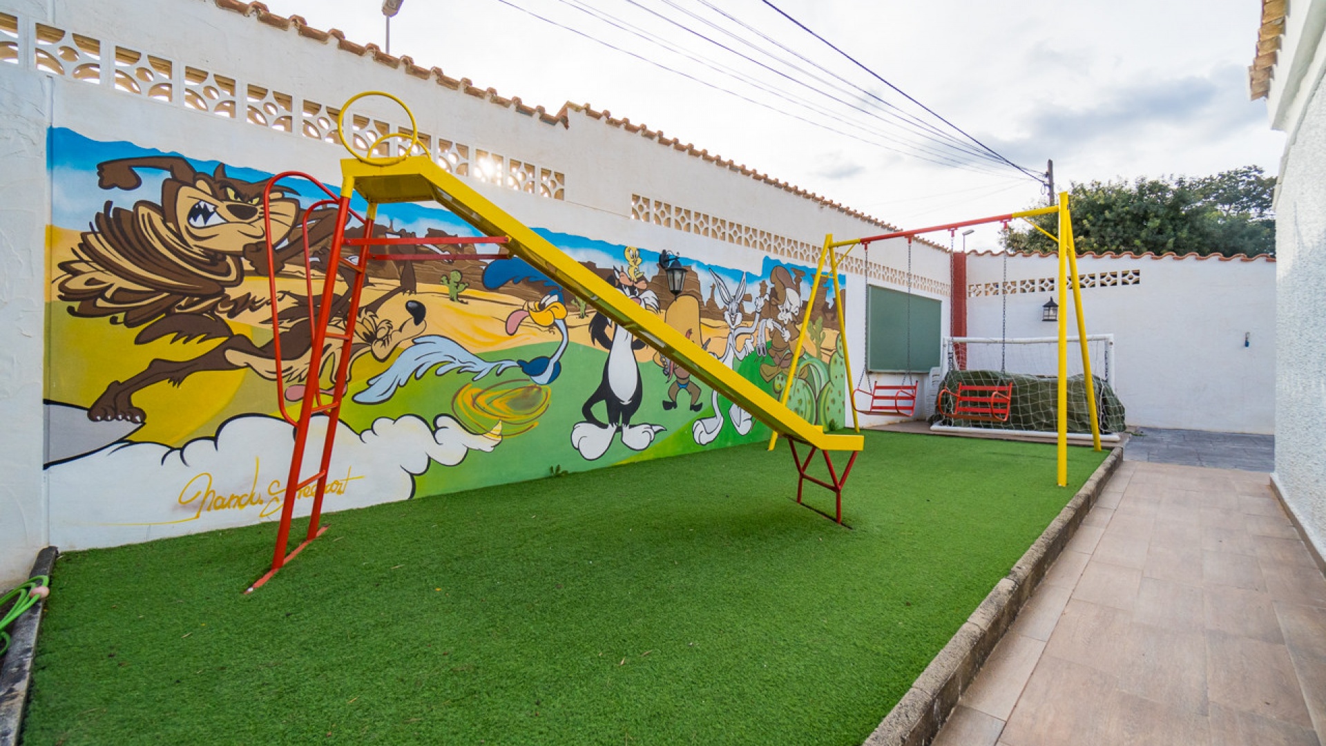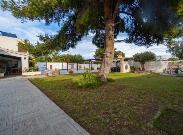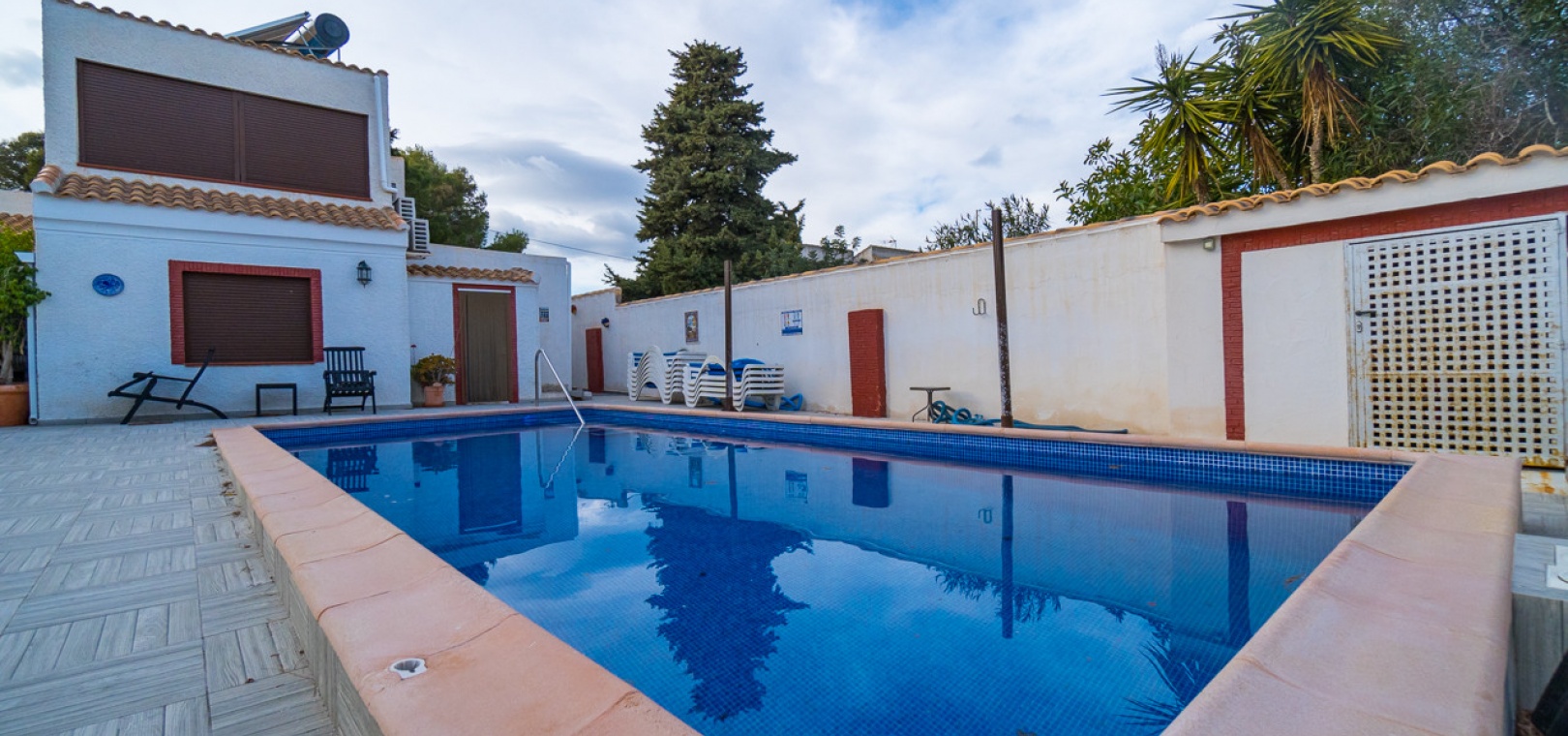 Villa individuelle exceptionnelle à vendre située dans l'un des quartiers les plus tranquilles et verdoyants de Lomas de Cabo Roig. La grande maison familiale offre 9 chambres exceptionnelles, une chambre avec un coin salon de style loft en mezzanine et toutes les chambres offrant toutes une taille et un espace exceptionnels, 7 salles de bains, un salon avec cheminée, une salle à manger spacieuse et une cuisine ouverte. Située sur un terrain privé d'un peu plus de 1000 m2 avec une piscine d'eau salée chauffée, une douche extérieure et des toilettes, un barbecue / espace pique-nique et une cuisine d'été, une aire de jeux pour enfants, un espace de rangement, un grand parking sur place pour plusieurs véhicules et des jardins et une terrasse à faible entretien. Vendue entièrement meublée avec de nombreux extras, dont la climatisation partout, des panneaux solaires pour l'eau chaude, plus 2 radiateurs électriques au cas où ils seraient nécessaires. La villa est construite dans un style rustique traditionnel en harmonie avec la région, avec des poutres d'origine, de hauts plafonds et une décoration unique. La villa offre un excellent potentiel pour une grande maison familiale ou comme investissement locatif en raison de sa licence touristique préexistante. Veuillez contacter Inmo Investments pour plus d'informations ou pour des visites.