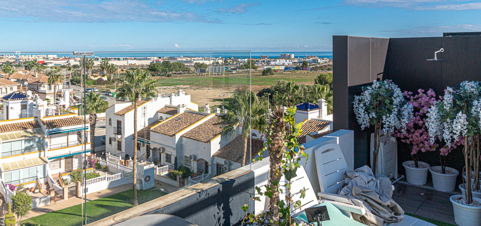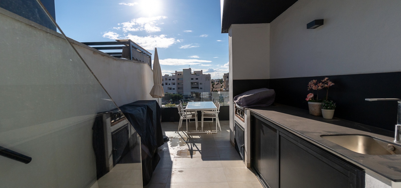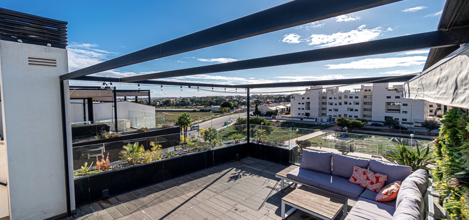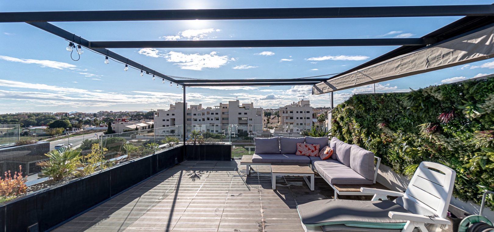 Bienvenue dans cet extraordinaire appartement en duplex penthouse, situé au cœur du prestigieux Muna Spa & Resort à Los Dolses. Conçue pour un style de vie inégalé, cette maison dispose de cinq terrasses et balcons orientés à la fois vers le soleil et l'ombre, ce qui en fait un véritable refuge. Avec une vue imprenable sur la mer depuis chaque pièce et un mélange harmonieux de design moderne et d'équipements haut de gamme, cette propriété est parfaite pour ceux qui recherchent quelque chose de vraiment spécial. Cette maison soigneusement conçue, construite par l'un des constructeurs les plus renommés de la Costa, comprend un espace de vie ouvert qui relie un salon lumineux et accueillant à une cuisine moderne entièrement équipée. La cuisine présente des finitions élégantes, des solutions de rangement astucieuses et des volets en bois élégants, tandis qu'une buanderie adjacente offre une fonctionnalité supplémentaire avec un espace pour une machine à laver et un chauffe-eau. L'appartement dispose de trois chambres aux dimensions généreuses, toutes avec placards intégrés. La chambre principale et une autre chambre s'ouvrent directement sur des terrasses ou des balcons privés, parfaits pour se détendre en toute tranquillité. Deux salles de bains élégantes, dont une en suite, sont magnifiquement conçues avec des tons terreux contemporains, ajoutant une touche de sophistication. Sortez du salon sur une terrasse spacieuse avec un auvent, offrant une évasion fraîche lors des journées chaudes. Le niveau supérieur offre une autre terrasse avec une cuisine extérieure, un barbecue et un coin repas - idéal pour organiser des repas tout en profitant de la vue imprenable. La caractéristique remarquable de ce superbe penthouse est la vaste terrasse sur le toit. Ici, vous pouvez vous détendre dans le jacuzzi, vous prélasser dans le coin salon ou bronzer en toute intimité tout en profitant d'une vue panoramique sur la mer. Cet espace est parfait pour les soirées d'été, les repas en plein air et les réceptions. Situé dans le magnifique Muna Spa & Resort, construit à un niveau exceptionnellement élevé par l'un des constructeurs les plus renommés de la Costa avec de superbes espaces communs comprenant une impressionnante piscine commune, une piscine intérieure chauffée, un sauna, une salle de sport et des jardins paysagers immaculés Situé à distance de marche des restaurants, des magasins et des supermarchés, l'appartement offre une commodité inégalée. À quelques minutes à pied des commodités locales de la zone commerciale de Los Dolses, ainsi que du célèbre centre commercial La Zenia Boulevard, avec sa vaste gamme de magasins et d'options de divertissement, tandis que de superbes plages et des terrains de golf de premier ordre sont à quelques minutes en voiture de votre porte. Contactez-nous dès aujourd'hui pour votre visite