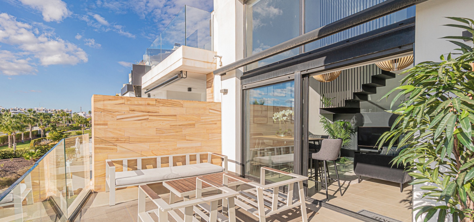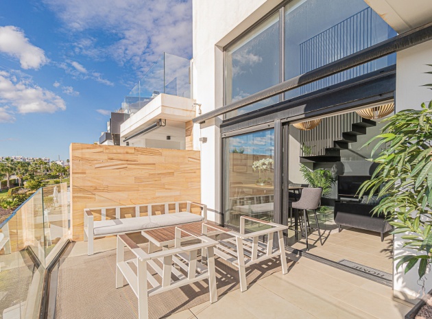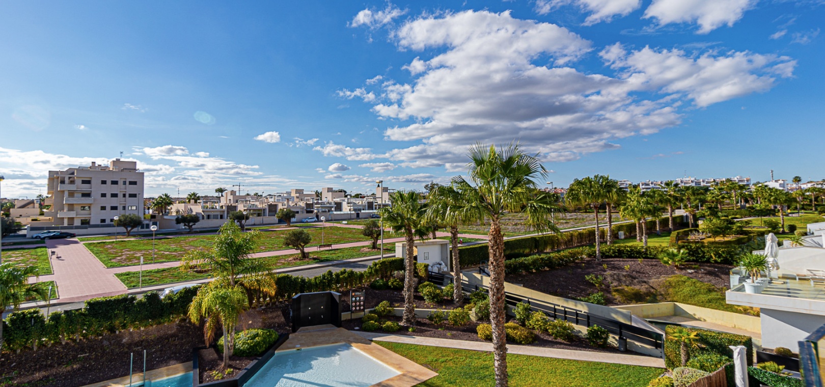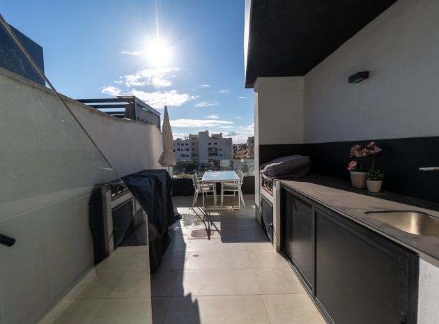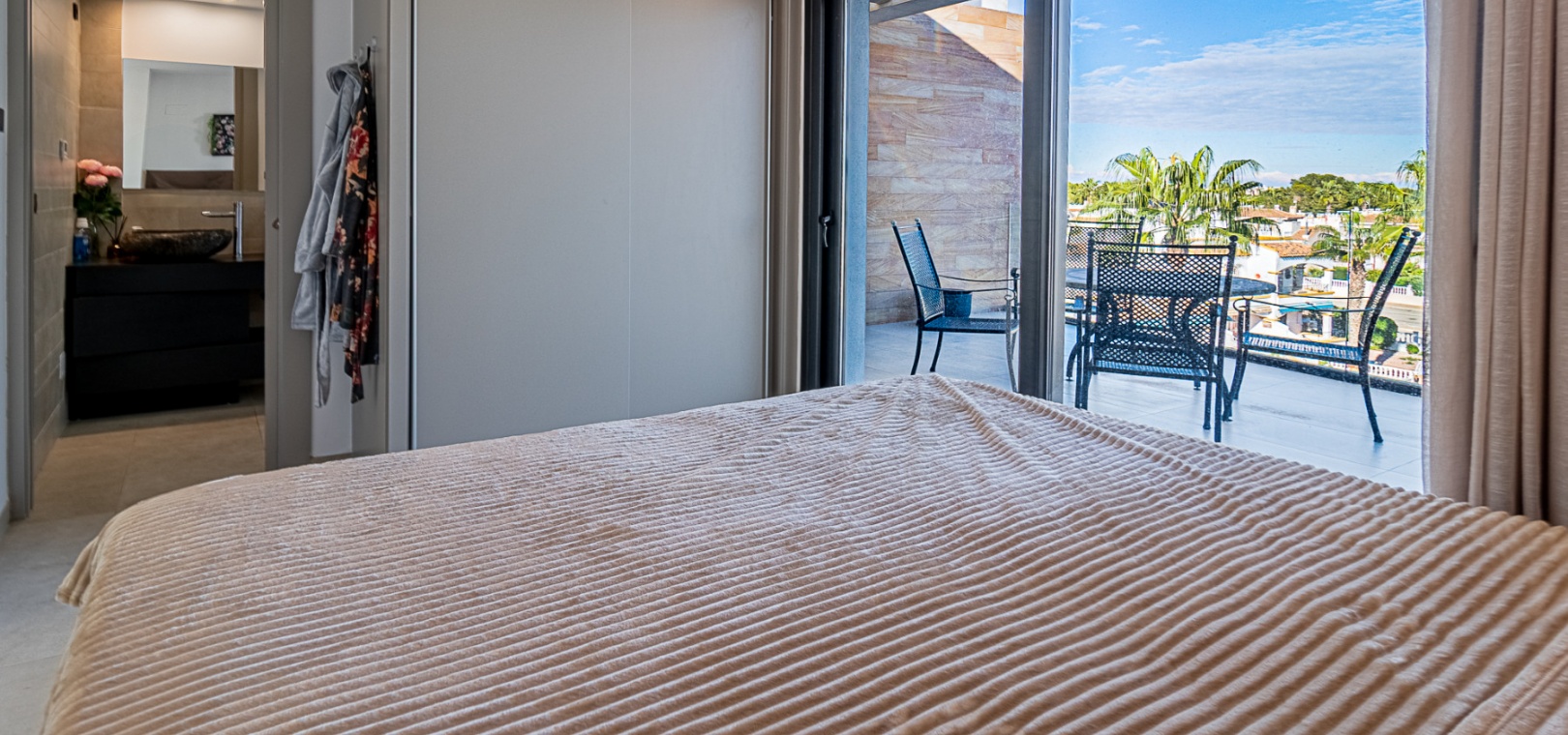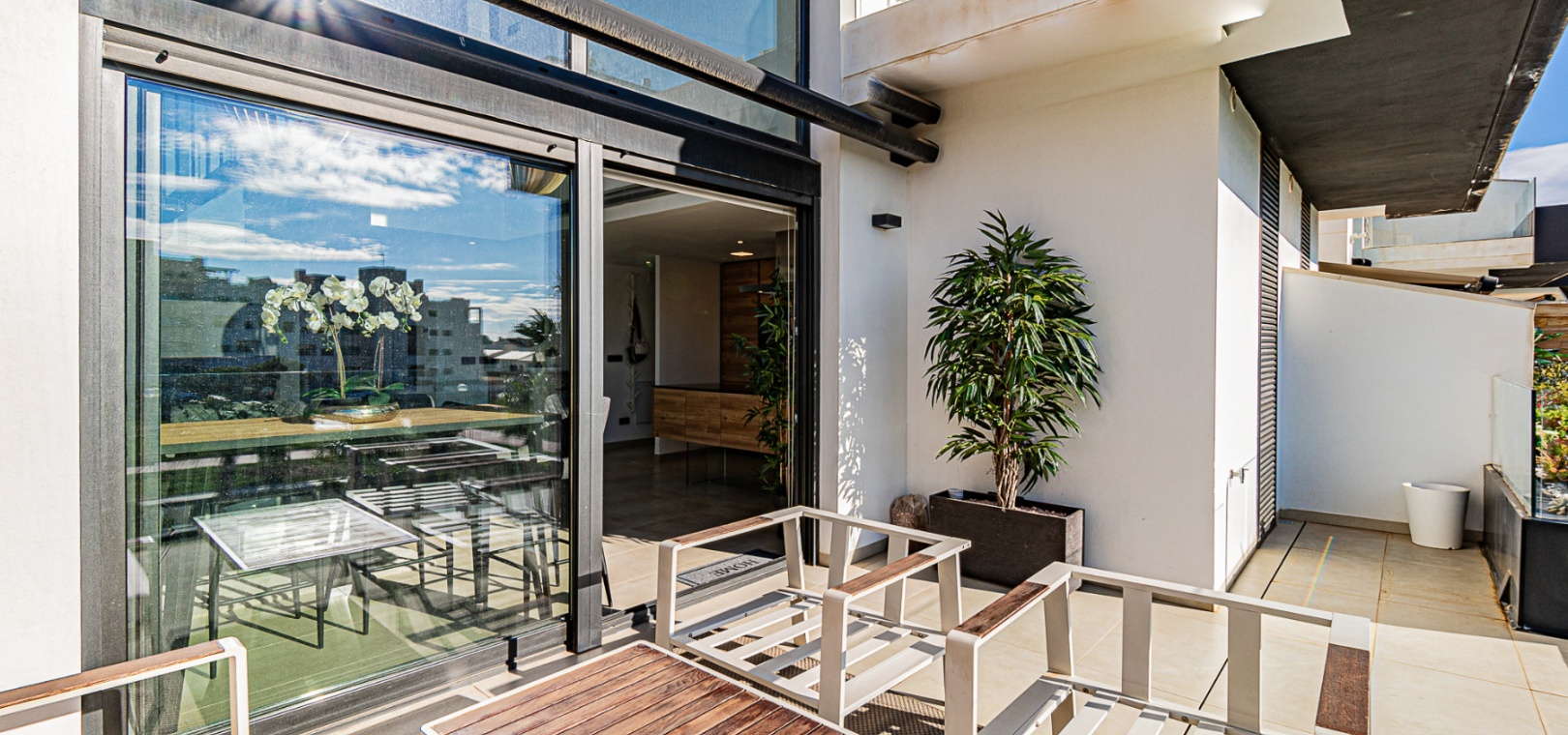Bienvenue dans cet extraordinaire appartement en duplex penthouse, situé au cœur du prestigieux Muna Spa & Resort à Los Dolses. Conçue pour un style de vie inégalé, cette maison dispose de cinq terrasses et balcons orientés à la fois vers le soleil et l'ombre, ce qui en fait un véritable refuge. Avec une vue imprenable sur la mer depuis chaque pièce et un mélange harmonieux de design moderne et d'équipements haut de gamme, cette propriété est parfaite pour ceux qui recherchent quelque chose de vraiment spécial. Cette maison soigneusement conçue, construite par l'un des constructeurs les plus renommés de la Costa, comprend un espace de vie ouvert qui relie un salon lumineux et accueillant à une cuisine moderne entièrement équipée. La cuisine présente des finitions élégantes, des solutions de rangement astucieuses et des volets en bois élégants, tandis qu'une buanderie adjacente offre une fonctionnalité supplémentaire avec un espace pour une machine à laver et un chauffe-eau. L'appartement dispose de trois chambres aux dimensions généreuses, toutes avec placards intégrés. La chambre principale et une autre chambre s'ouvrent directement sur des terrasses ou des balcons privés, parfaits pour se détendre en toute tranquillité. Deux salles de bains élégantes, dont une en suite, sont magnifiquement conçues avec des tons terreux contemporains, ajoutant une touche de sophistication. Sortez du salon sur une terrasse spacieuse avec un auvent, offrant une évasion fraîche lors des journées chaudes. Le niveau supérieur offre une autre terrasse avec une cuisine extérieure, un barbecue et un coin repas - idéal pour organiser des repas tout en profitant de la vue imprenable. La caractéristique remarquable de ce superbe penthouse est la vaste terrasse sur le toit. Ici, vous pouvez vous détendre dans le jacuzzi, vous prélasser dans le coin salon ou bronzer en toute intimité tout en profitant d'une vue panoramique sur la mer. Cet espace est parfait pour les soirées d'été, les repas en plein air et les réceptions. Situé dans le magnifique Muna Spa & Resort, construit à un niveau exceptionnellement élevé par l'un des constructeurs les plus renommés de la Costa avec de superbes espaces communs comprenant une impressionnante piscine commune, une piscine intérieure chauffée, un sauna, une salle de sport et des jardins paysagers immaculés Situé à distance de marche des restaurants, des magasins et des supermarchés, l'appartement offre une commodité inégalée. À quelques minutes à pied des commodités locales de la zone commerciale de Los Dolses, ainsi que du célèbre centre commercial La Zenia Boulevard, avec sa vaste gamme de magasins et d'options de divertissement, tandis que de superbes plages et des terrains de golf de premier ordre sont à quelques minutes en voiture de votre porte. Contactez-nous dès aujourd'hui pour votre visite
