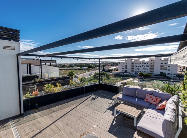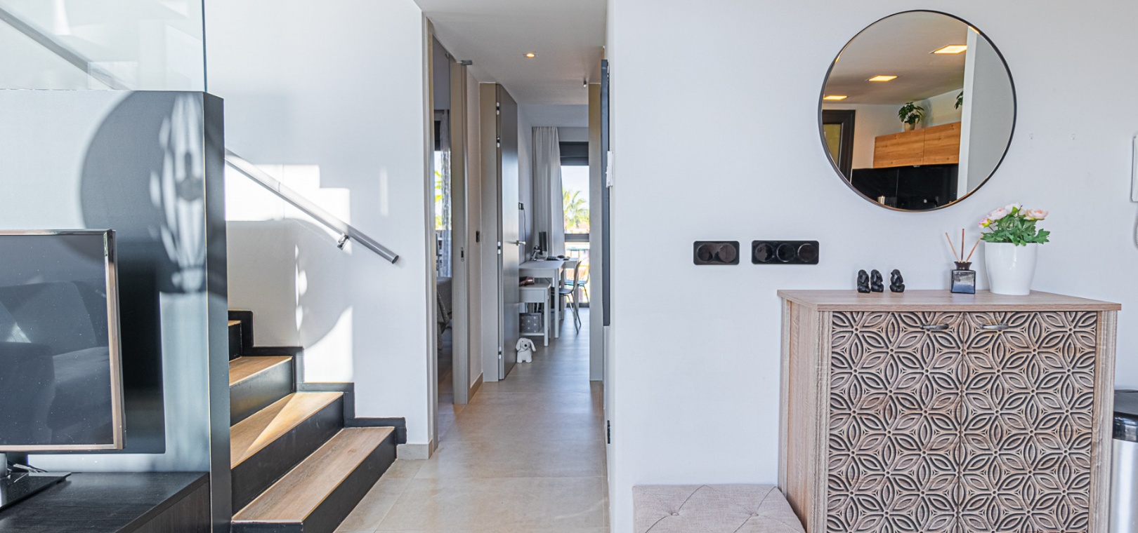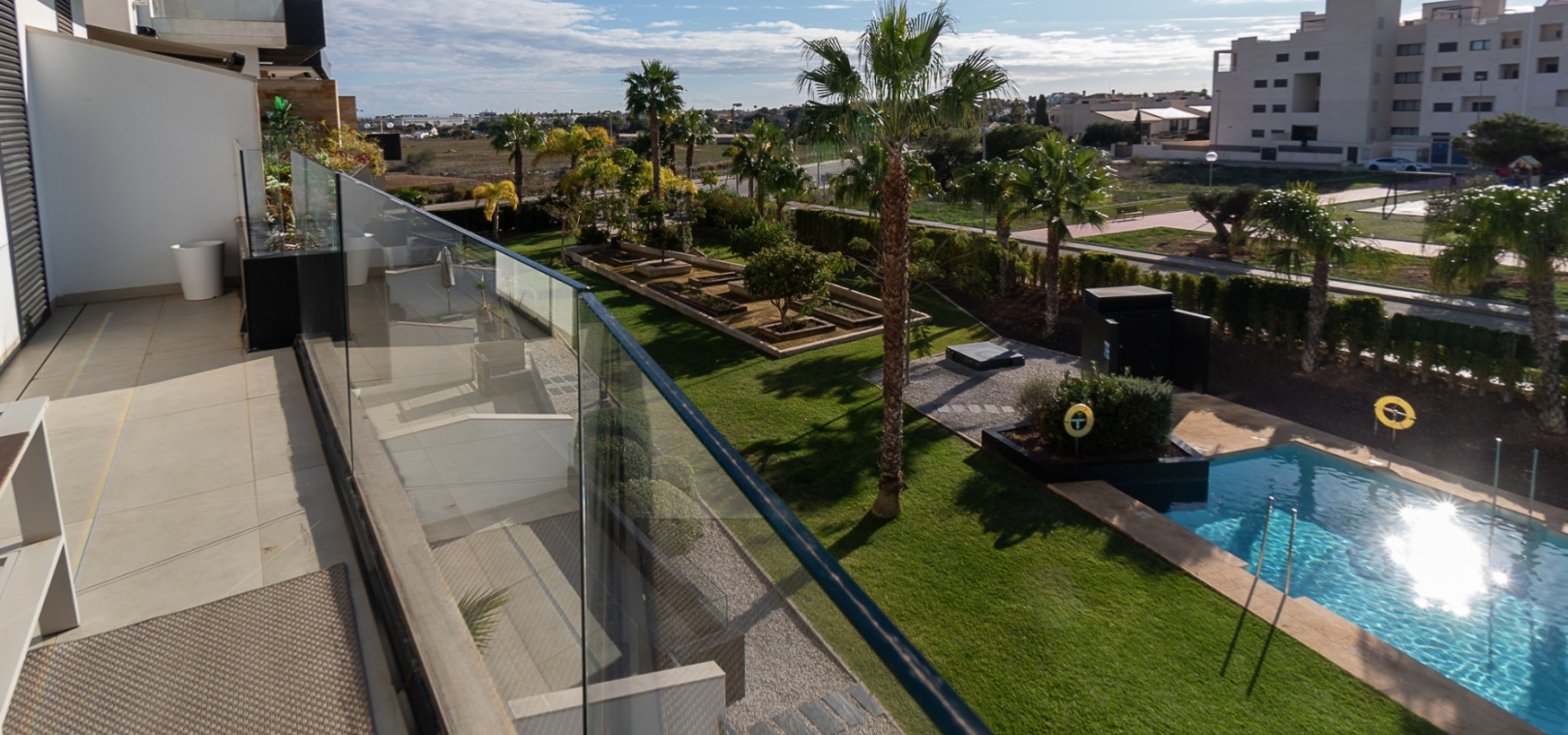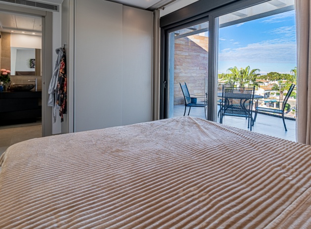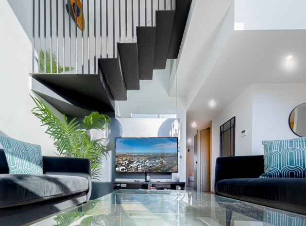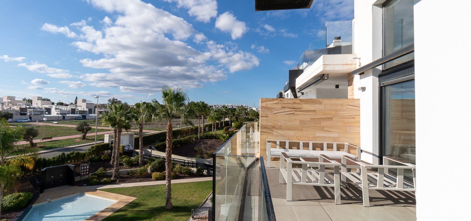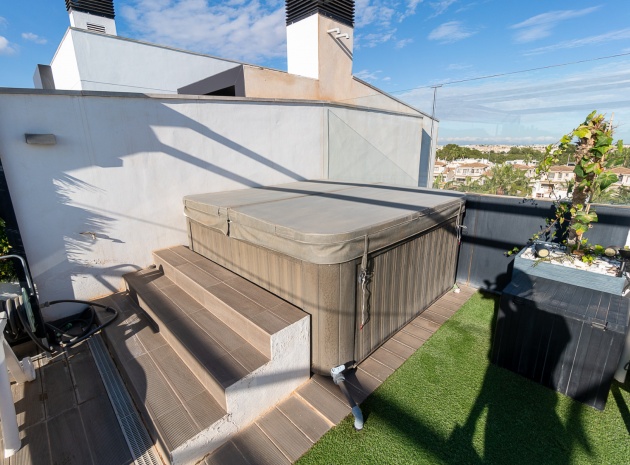 Bienvenue dans cet extraordinaire appartement en duplex penthouse, situé au cœur du prestigieux Muna Spa & Resort à Los Dolses. Conçue pour un style de vie inégalé, cette maison dispose de cinq terrasses et balcons orientés à la fois vers le soleil et l'ombre, ce qui en fait un véritable refuge. Avec une vue imprenable sur la mer depuis chaque pièce et un mélange harmonieux de design moderne et d'équipements haut de gamme, cette propriété est parfaite pour ceux qui recherchent quelque chose de vraiment spécial. Cette maison soigneusement conçue, construite par l'un des constructeurs les plus renommés de la Costa, comprend un espace de vie ouvert qui relie un salon lumineux et accueillant à une cuisine moderne entièrement équipée. La cuisine présente des finitions élégantes, des solutions de rangement astucieuses et des volets en bois élégants, tandis qu'une buanderie adjacente offre une fonctionnalité supplémentaire avec un espace pour une machine à laver et un chauffe-eau. L'appartement dispose de trois chambres aux dimensions généreuses, toutes avec placards intégrés. La chambre principale et une autre chambre s'ouvrent directement sur des terrasses ou des balcons privés, parfaits pour se détendre en toute tranquillité. Deux salles de bains élégantes, dont une en suite, sont magnifiquement conçues avec des tons terreux contemporains, ajoutant une touche de sophistication. Sortez du salon sur une terrasse spacieuse avec un auvent, offrant une évasion fraîche lors des journées chaudes. Le niveau supérieur offre une autre terrasse avec une cuisine extérieure, un barbecue et un coin repas - idéal pour organiser des repas tout en profitant de la vue imprenable. La caractéristique remarquable de ce superbe penthouse est la vaste terrasse sur le toit. Ici, vous pouvez vous détendre dans le jacuzzi, vous prélasser dans le coin salon ou bronzer en toute intimité tout en profitant d'une vue panoramique sur la mer. Cet espace est parfait pour les soirées d'été, les repas en plein air et les réceptions. Situé dans le magnifique Muna Spa & Resort, construit à un niveau exceptionnellement élevé par l'un des constructeurs les plus renommés de la Costa avec de superbes espaces communs comprenant une impressionnante piscine commune, une piscine intérieure chauffée, un sauna, une salle de sport et des jardins paysagers immaculés Situé à distance de marche des restaurants, des magasins et des supermarchés, l'appartement offre une commodité inégalée. À quelques minutes à pied des commodités locales de la zone commerciale de Los Dolses, ainsi que du célèbre centre commercial La Zenia Boulevard, avec sa vaste gamme de magasins et d'options de divertissement, tandis que de superbes plages et des terrains de golf de premier ordre sont à quelques minutes en voiture de votre porte. Contactez-nous dès aujourd'hui pour votre visite