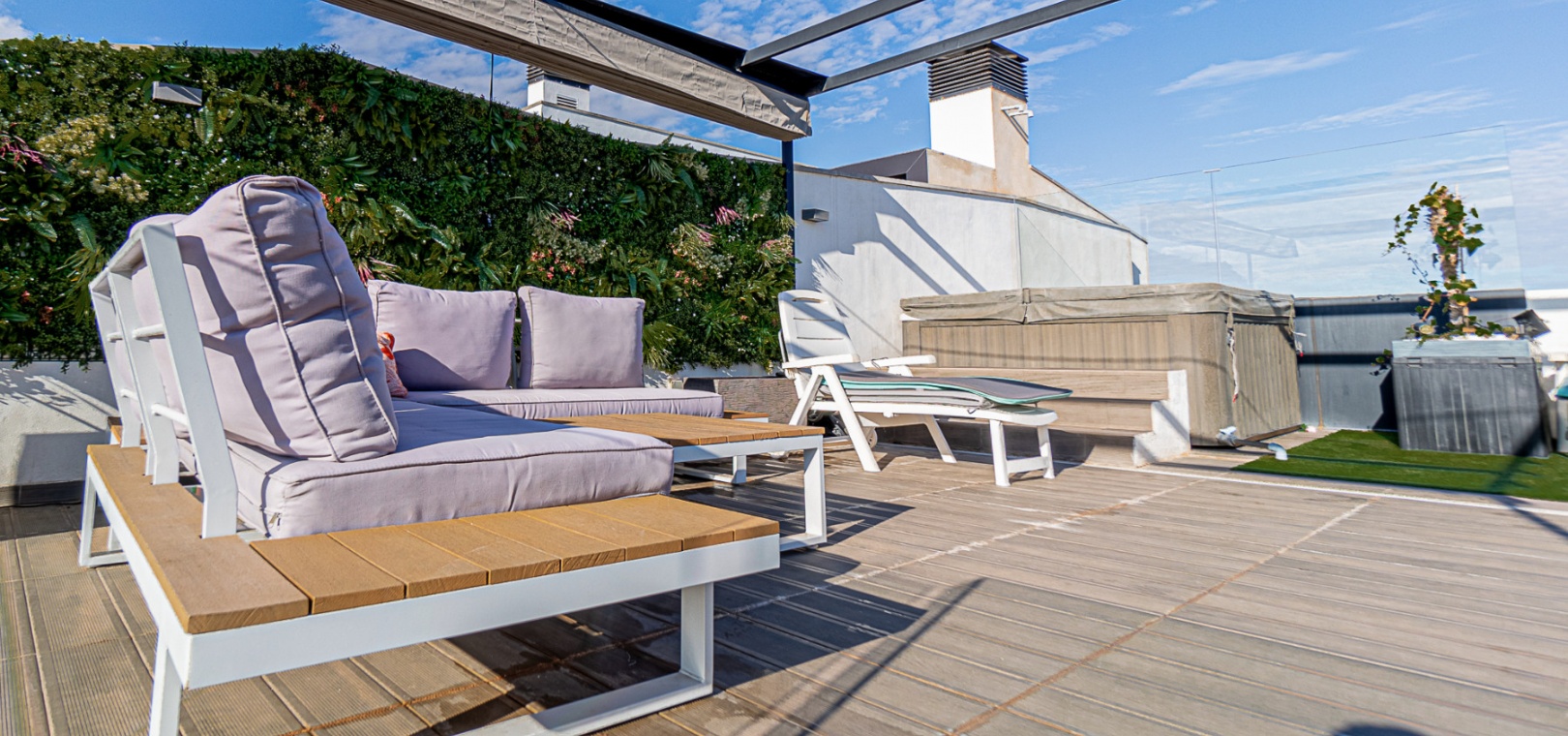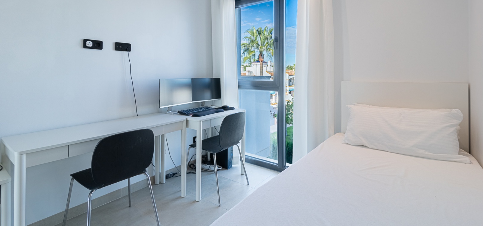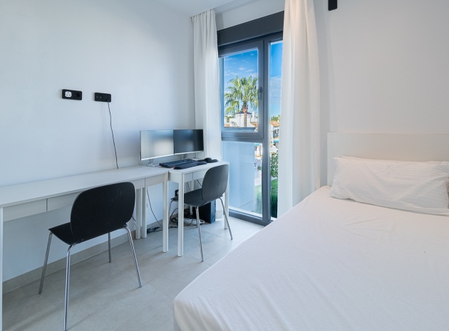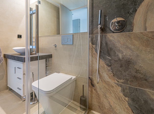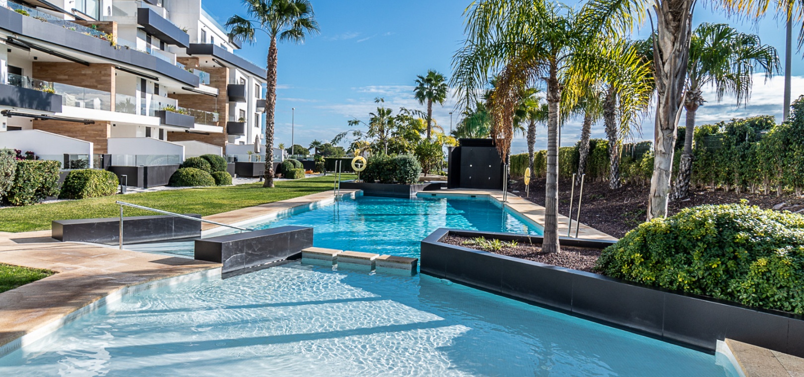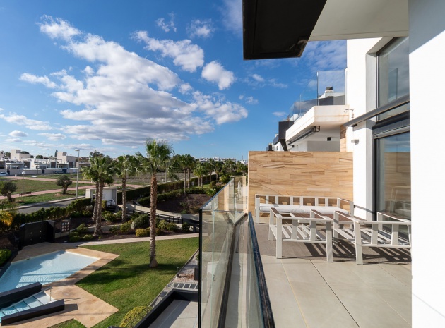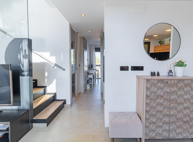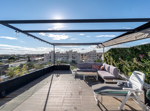 Bienvenue dans cet extraordinaire appartement en duplex penthouse, situé au cœur du prestigieux Muna Spa & Resort à Los Dolses. Conçue pour un style de vie inégalé, cette maison dispose de cinq terrasses et balcons orientés à la fois vers le soleil et l'ombre, ce qui en fait un véritable refuge. Avec une vue imprenable sur la mer depuis chaque pièce et un mélange harmonieux de design moderne et d'équipements haut de gamme, cette propriété est parfaite pour ceux qui recherchent quelque chose de vraiment spécial. Cette maison soigneusement conçue, construite par l'un des constructeurs les plus renommés de la Costa, comprend un espace de vie ouvert qui relie un salon lumineux et accueillant à une cuisine moderne entièrement équipée. La cuisine présente des finitions élégantes, des solutions de rangement astucieuses et des volets en bois élégants, tandis qu'une buanderie adjacente offre une fonctionnalité supplémentaire avec un espace pour une machine à laver et un chauffe-eau. L'appartement dispose de trois chambres aux dimensions généreuses, toutes avec placards intégrés. La chambre principale et une autre chambre s'ouvrent directement sur des terrasses ou des balcons privés, parfaits pour se détendre en toute tranquillité. Deux salles de bains élégantes, dont une en suite, sont magnifiquement conçues avec des tons terreux contemporains, ajoutant une touche de sophistication. Sortez du salon sur une terrasse spacieuse avec un auvent, offrant une évasion fraîche lors des journées chaudes. Le niveau supérieur offre une autre terrasse avec une cuisine extérieure, un barbecue et un coin repas - idéal pour organiser des repas tout en profitant de la vue imprenable. La caractéristique remarquable de ce superbe penthouse est la vaste terrasse sur le toit. Ici, vous pouvez vous détendre dans le jacuzzi, vous prélasser dans le coin salon ou bronzer en toute intimité tout en profitant d'une vue panoramique sur la mer. Cet espace est parfait pour les soirées d'été, les repas en plein air et les réceptions. Situé dans le magnifique Muna Spa & Resort, construit à un niveau exceptionnellement élevé par l'un des constructeurs les plus renommés de la Costa avec de superbes espaces communs comprenant une impressionnante piscine commune, une piscine intérieure chauffée, un sauna, une salle de sport et des jardins paysagers immaculés Situé à distance de marche des restaurants, des magasins et des supermarchés, l'appartement offre une commodité inégalée. À quelques minutes à pied des commodités locales de la zone commerciale de Los Dolses, ainsi que du célèbre centre commercial La Zenia Boulevard, avec sa vaste gamme de magasins et d'options de divertissement, tandis que de superbes plages et des terrains de golf de premier ordre sont à quelques minutes en voiture de votre porte. Contactez-nous dès aujourd'hui pour votre visite