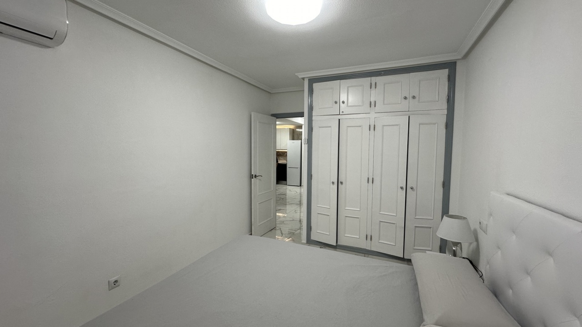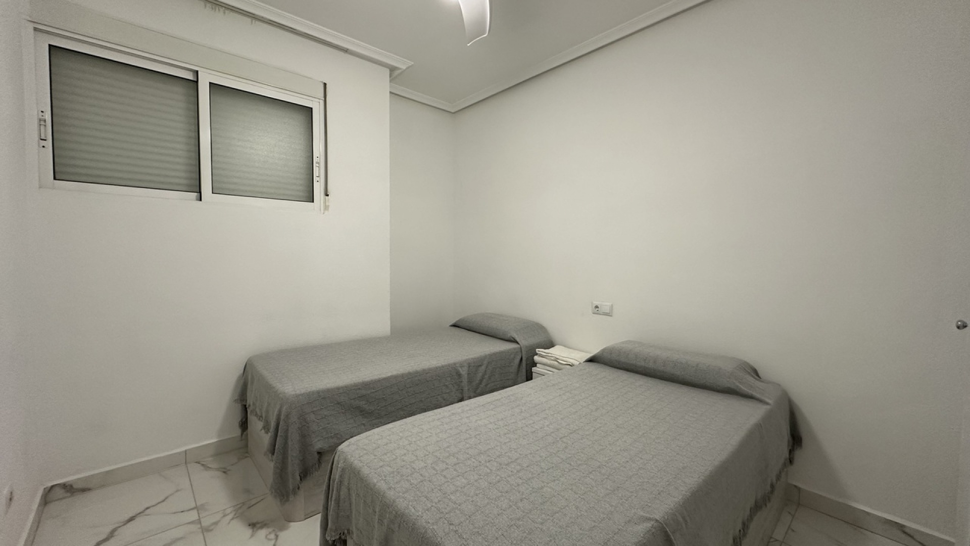 EMPLACEMENT PRIVILÉGIÉ À 50 m de Playa del Cura, la plage de Torrevieja, se trouve cet appartement surélevé au rez-de-chaussée. Ce fabuleux appartement de 2 chambres et 2 salles de bains a été entièrement rénové avec une toute nouvelle cuisine entièrement équipée ainsi que 2 salles de bains élégantes. L'appartement dispose d'un immense salon et salle à manger avec accès à une terrasse vitrée privée avec vue sur le front de mer. La propriété dispose de deux grandes chambres, toutes deux avec placards intégrés. La propriété a été rénovée avec goût avec du carrelage moderne et est vendue entièrement meublée et équipée de la climatisation. La propriété fait partie d'un complexe privé très bien entretenu où les propriétaires ont accès aux douches et vestiaires communs pour faciliter le lavage du sable de la plage.