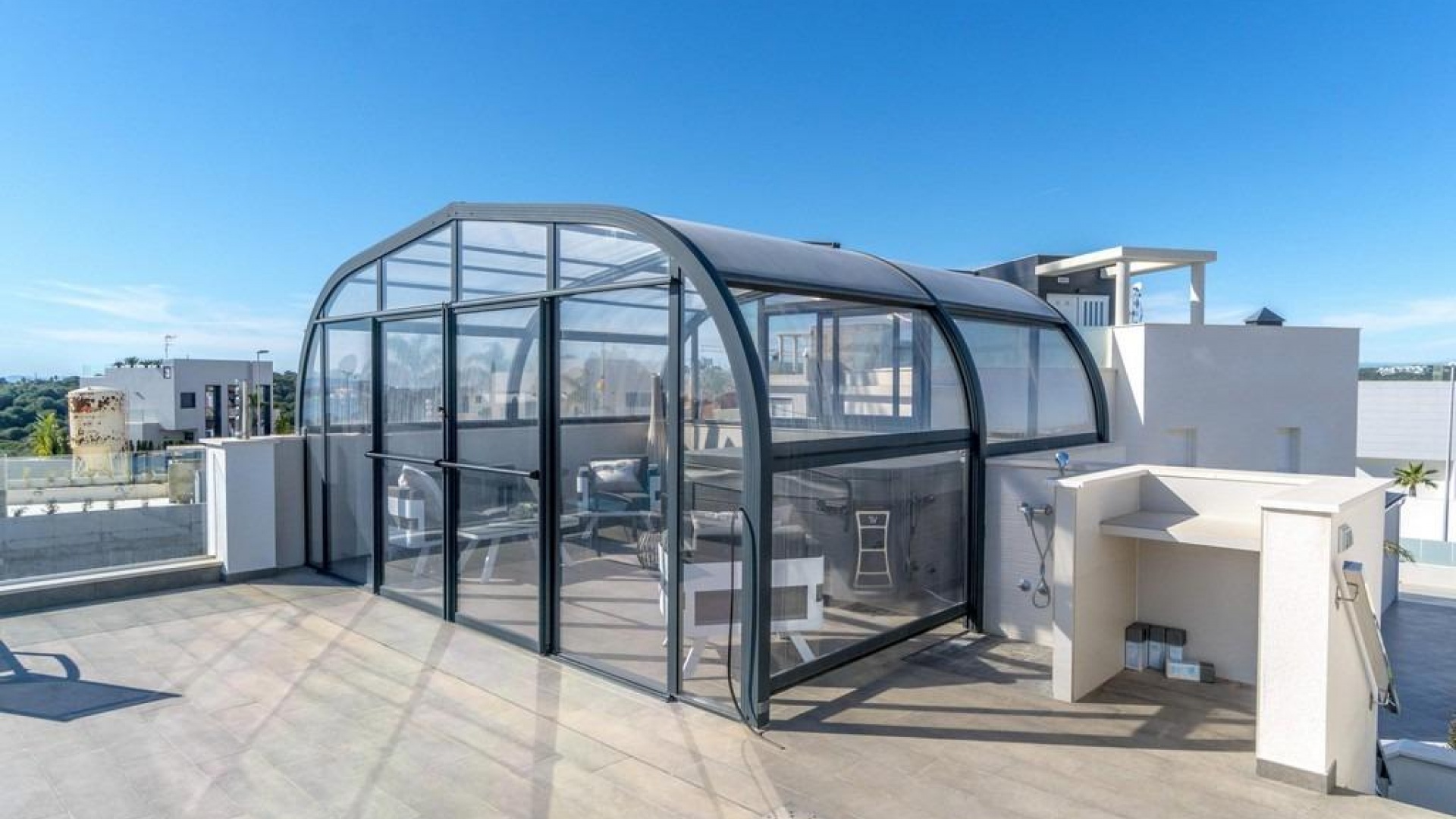 Magnifique villa de luxe située à Dehesa de Campoamor à seulement 300 m de la plage. Construite sur un terrain de 500 m2, elle a une superficie construite de 200 m2. Répartie sur deux étages : au rez-de-chaussée, nous trouvons le grand salon-salle à manger, la cuisine ouverte, 2 chambres, 2 salles de bains, un porche. Au premier étage, il y a une autre pièce, une salle de bain, un solarium semi-couvert avec jacuzzi et espace détente. Vues sur la mer et les environs depuis le solarium. Equipé de chauffage au sol, climatisation centrale installée, parking sur le terrain. Piscine privée d'eau salée chauffée. Orientation sud-est. Vendu meublé et équipé. Il bénéficie d'un emplacement idéal : à 50 m d'un supermarché, d'une pharmacie, à 200 m d'une grande variété de bars et restaurants, de la promenade et des plages de Campoamor à 300 m.