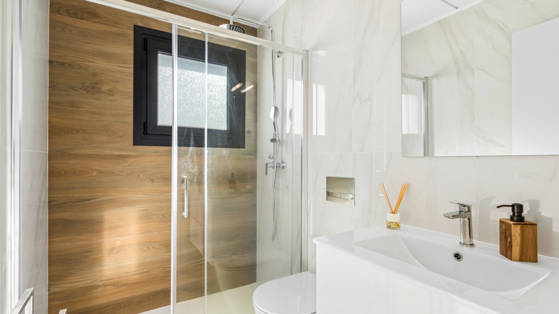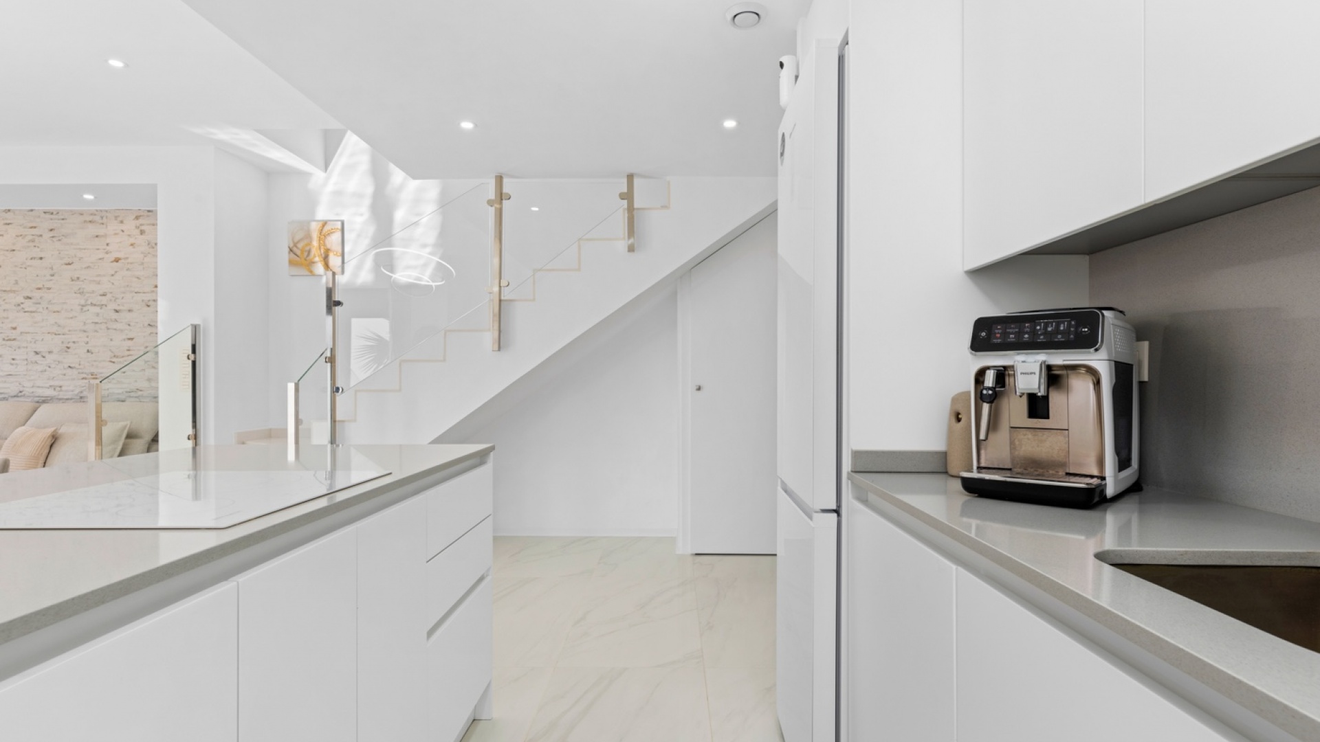 La propriété a été achevée en 2024 et dispose d'un niveau élevé et de grands espaces extérieurs avec terrasses privées, jardin et une piscine privée chauffée.
