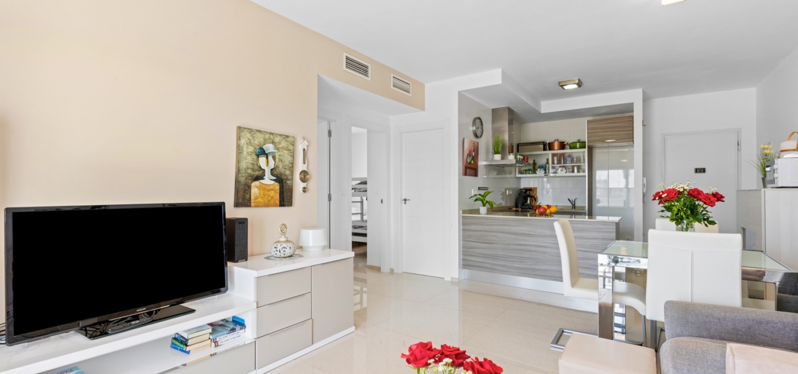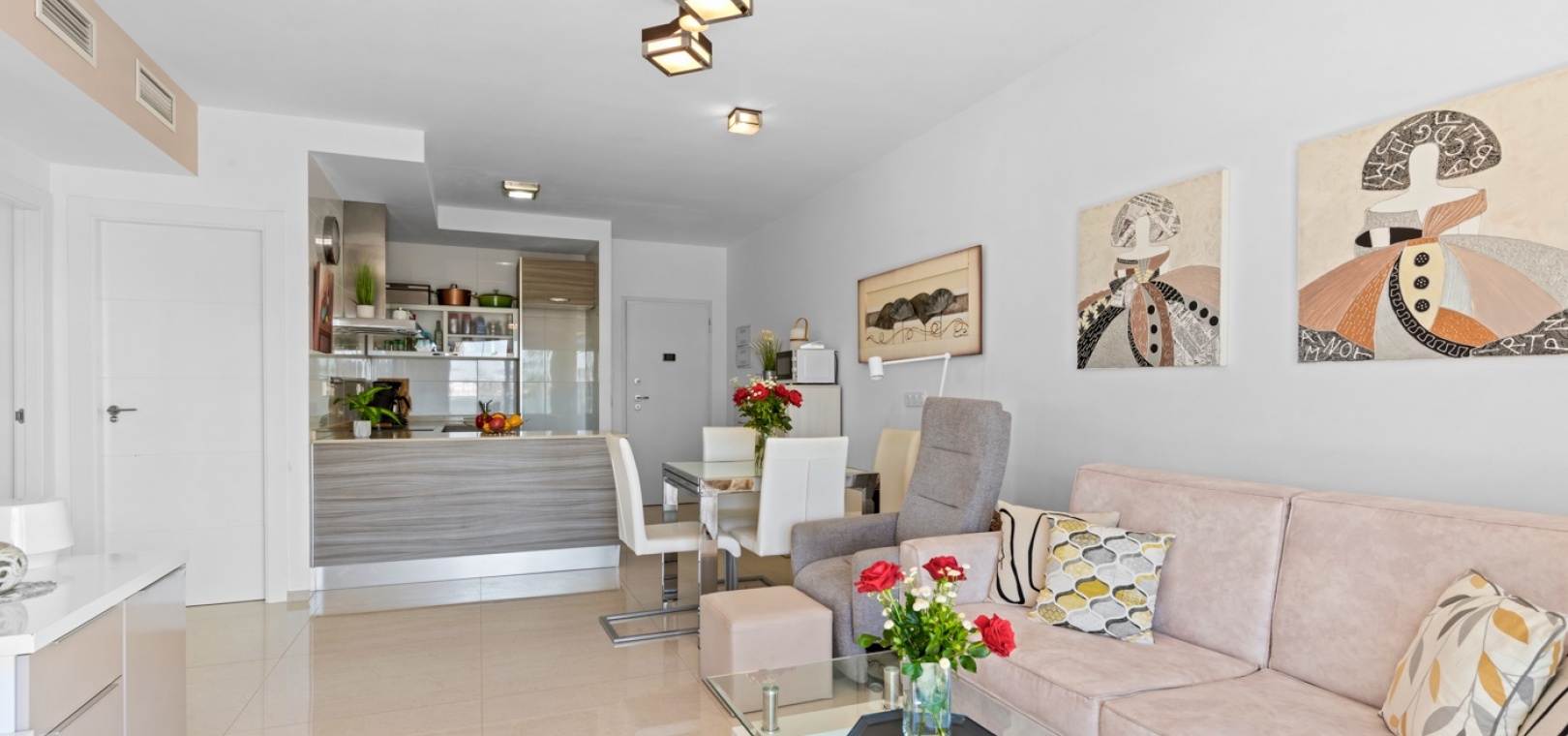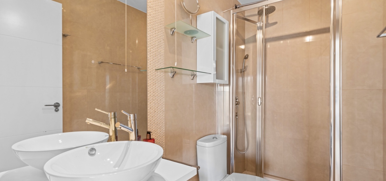 L'appartement est situé au 2ème étage de l'immeuble avec accès par ascenseur ou escalier. L'appartement a une surface habitable de 82 m2 et se compose de 2 chambres doubles et de 2 salles de bains, dont une en suite avec la chambre principale. L'appartement offre également une belle cuisine ouverte, une salle à manger et un salon. Depuis le salon, vous avez un accès direct à une terrasse vitrée, qui vous donne à nouveau accès à la grande terrasse sur le toit.