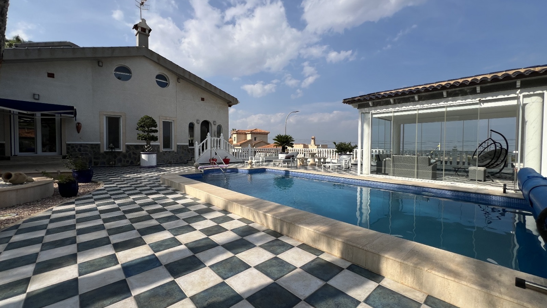 Nous sommes ravis de vous présenter cette grande villa familiale de 4 chambres et 2 salles de bains, offrant un mélange parfait d’intimité, de confort et de vues à couper le souffle. Nichée sur un grand terrain sans voisins derrière, cette propriété offre un sentiment exceptionnel d’isolement tout en offrant une vue imprenable sur le lac salé et au-delà. La villa dispose d’un parking hors rue et d’un garage. Le jardin et la piscine ont une exposition ensoleillée au sud-ouest et disposent d’une pergola vitrée au bord de la piscine, idéale pour se détendre toute l’année tout en profitant de la vue dégagée. La cuisine extérieure et la salle à manger sont idéales pour se détendre et se divertir, tandis que les agrumes et les jardins paysagers font de cet espace une oasis personnelle.