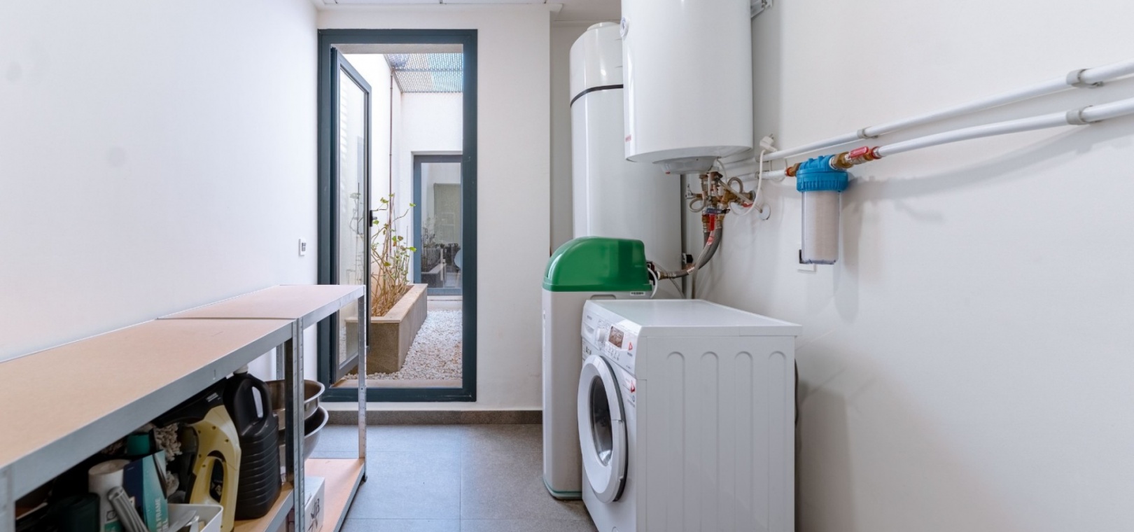 En entrant, vous serez accueilli par un intérieur spacieux et contemporain réparti sur deux étages. Le rez-de-chaussée est doté de planchers chauffants, garantissant chaleur et confort partout. Les vastes espaces de vie se marient parfaitement avec la cuisine élégante, créant un espace idéal pour recevoir des amis et la famille.