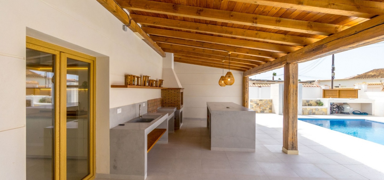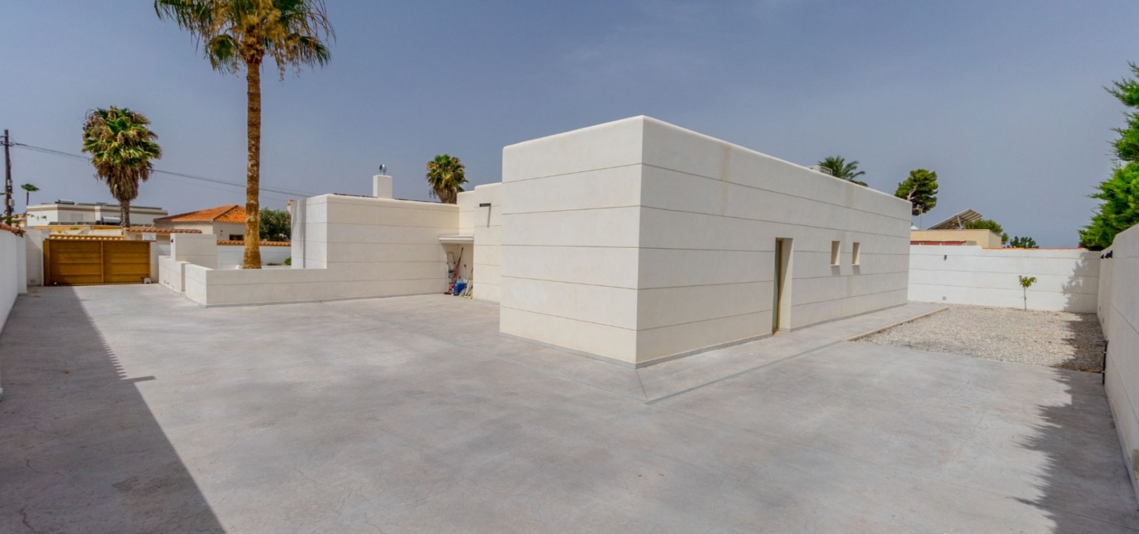 Bienvenue dans la maison de vos rêves ! Cette superbe villa individuelle entièrement rénovée dans le prestigieux quartier de Torreta Florida à Torrevieja incarne le luxe et l'élégance. Conçue dans le style chic et sophistiqué d'Ibiza, cette propriété exquise bénéficie de matériaux et de finitions de qualité supérieure.